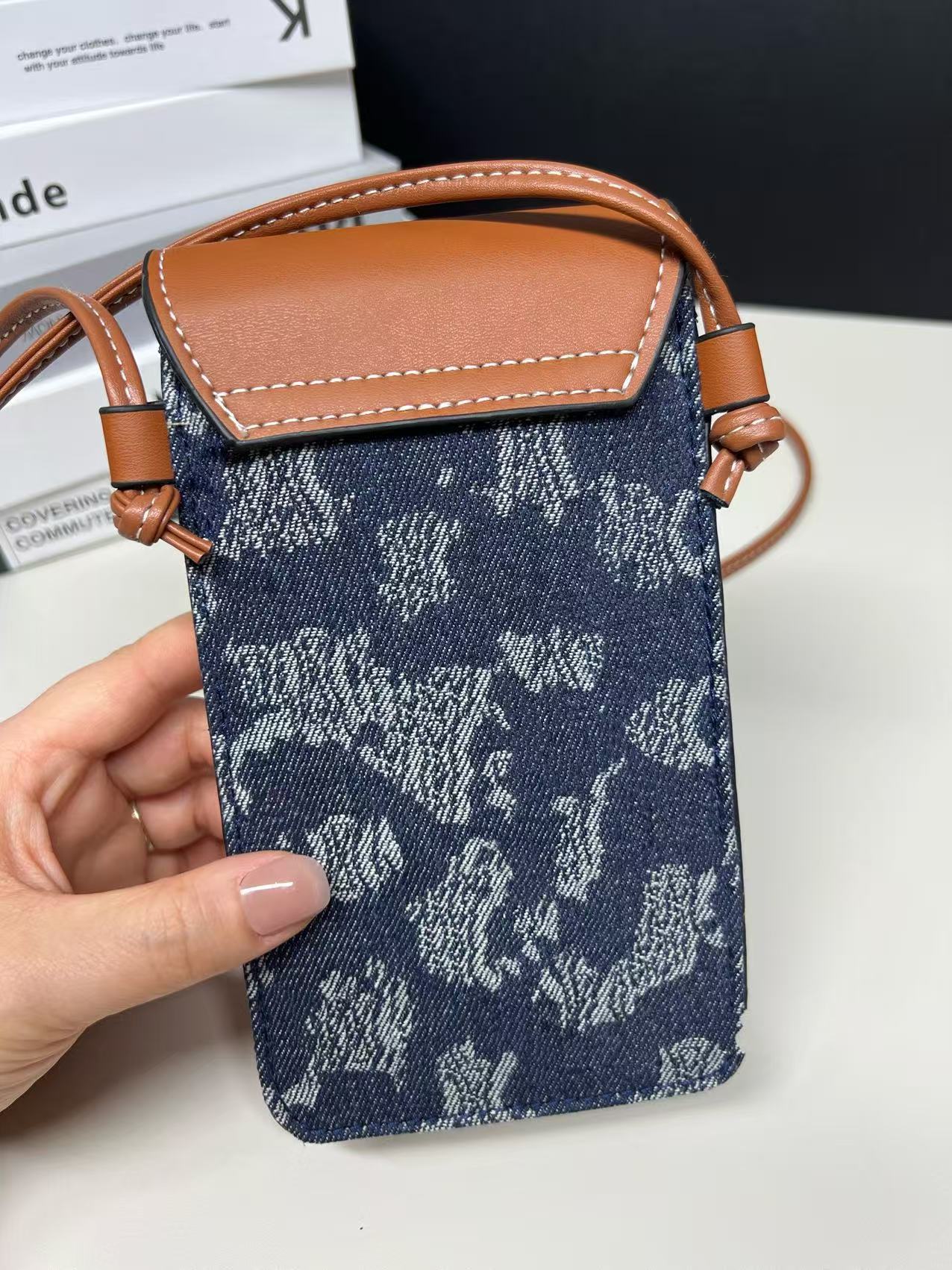 재고 도매, 멋진 디자인의 휴대폰 가방, 트렌디한 스타일의 크로스백, 끈이 달린 풀커버 레트로 프린트 동전 지갑, 열쇠 가방