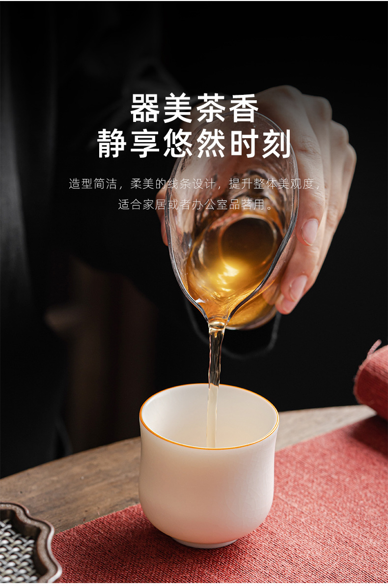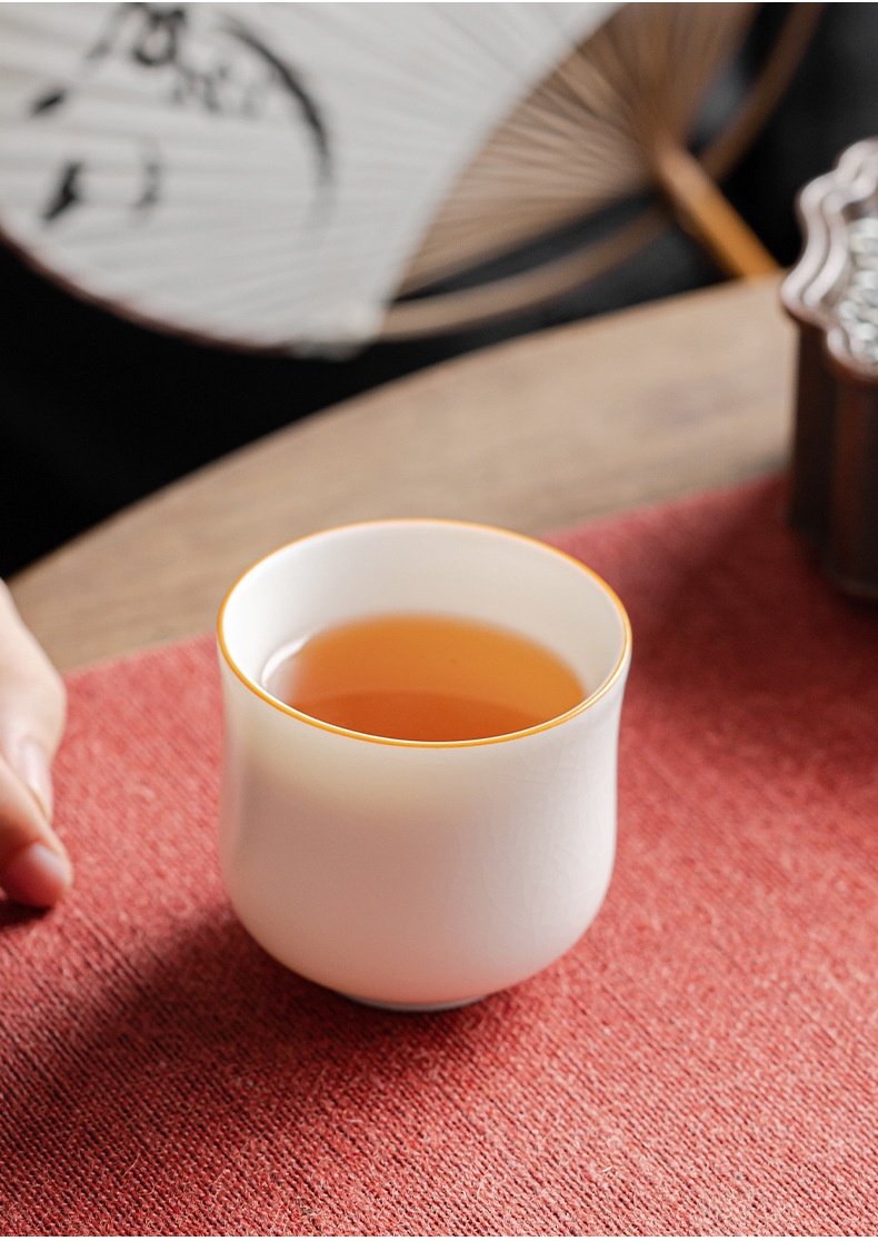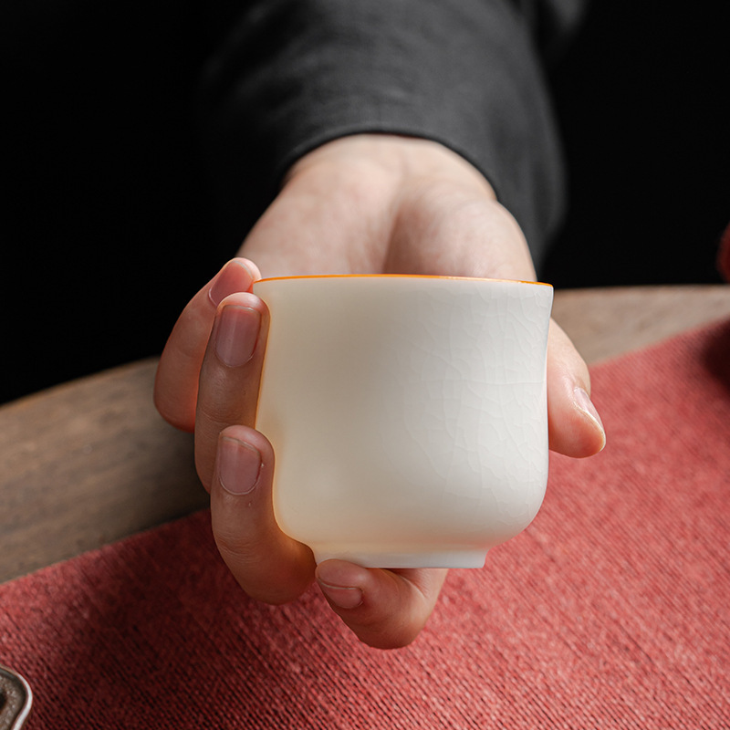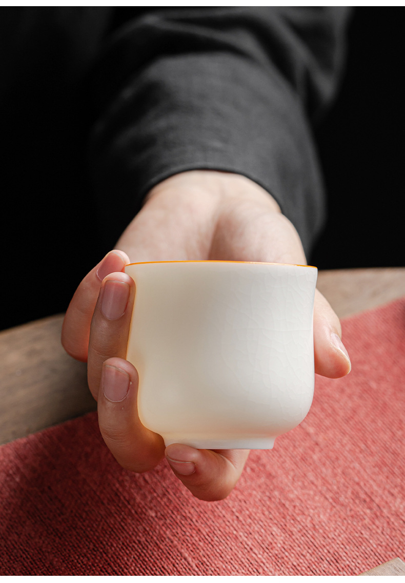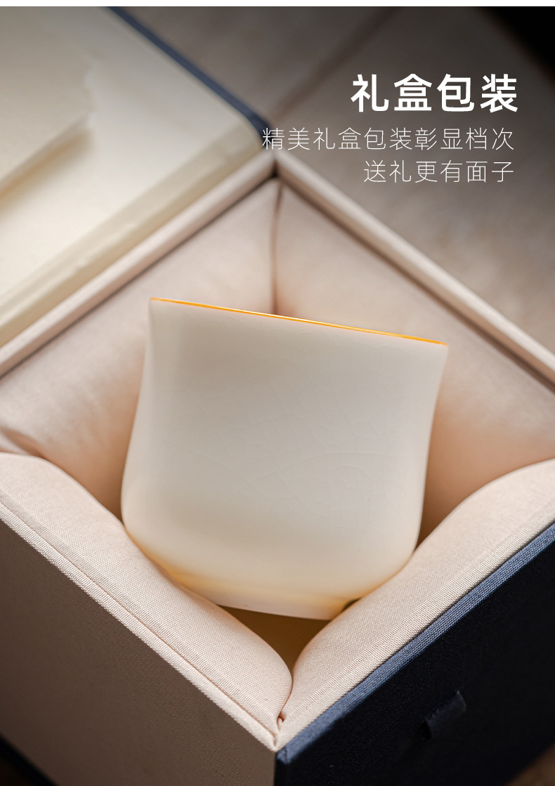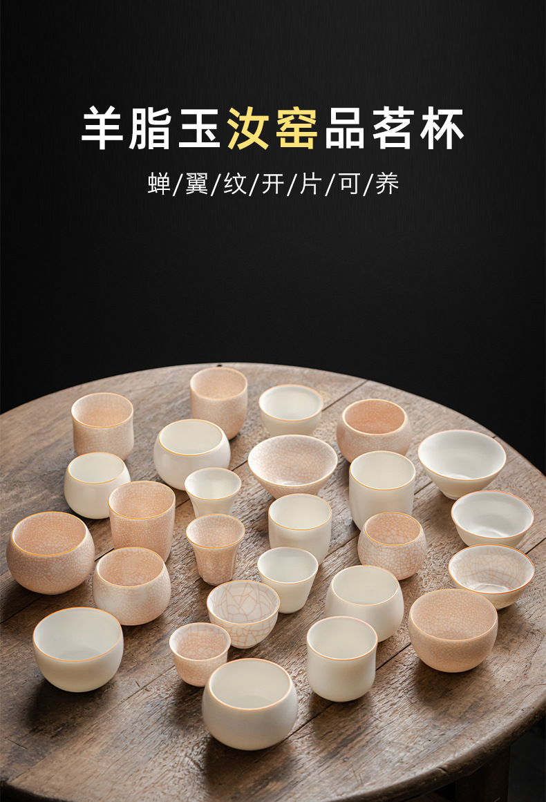 양 뚱뚱한 옥 마스터 컵 화이트 도자기 Ru 가마 핀밍 컵 티 컵 싱글 컵 아이스 크랙 세라믹 차 세트 창조적 인 차 컵 차 그릇