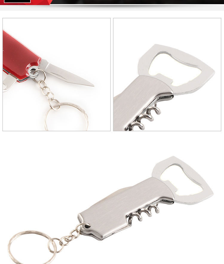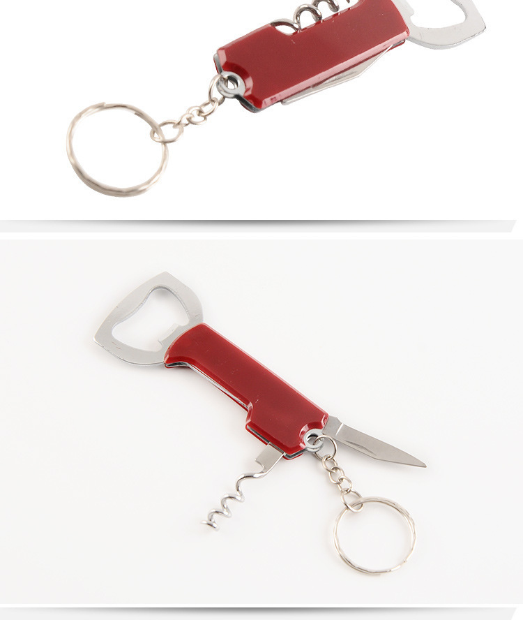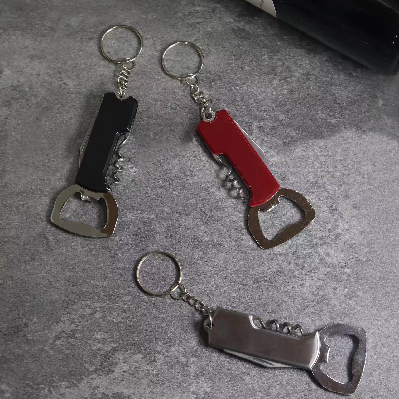 야외 다기능 칼 휴대용 키 체인 칼 스테인레스 스틸 와인 맥주 병따개 캠핑 도구