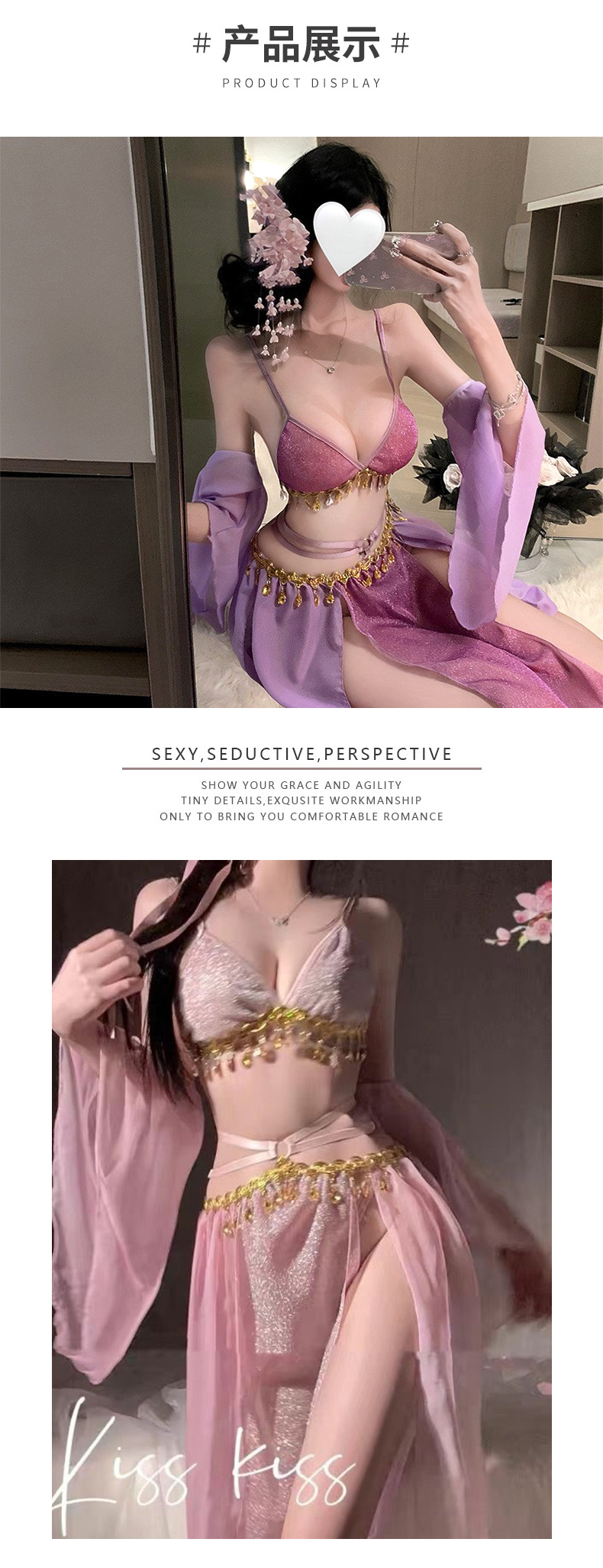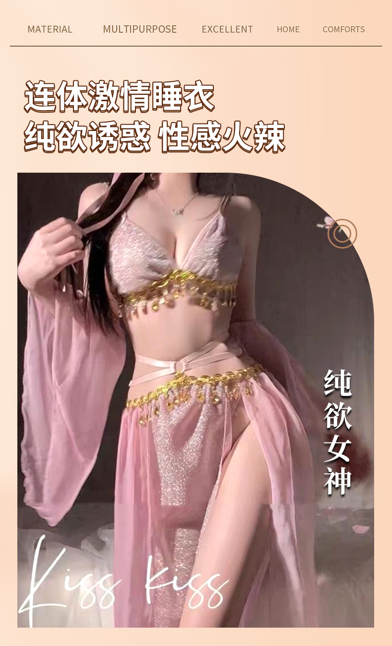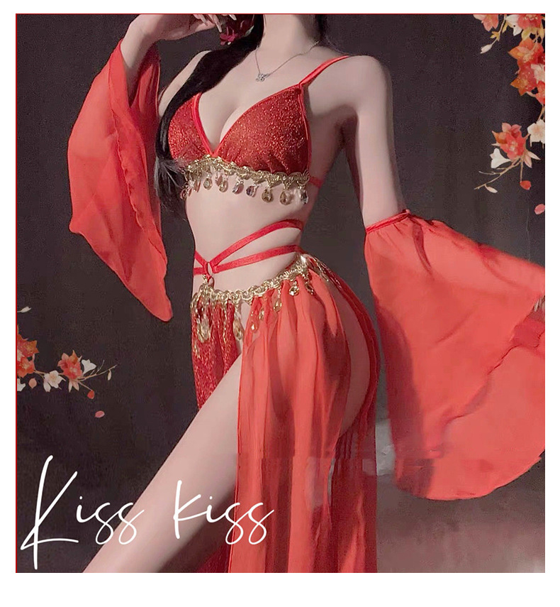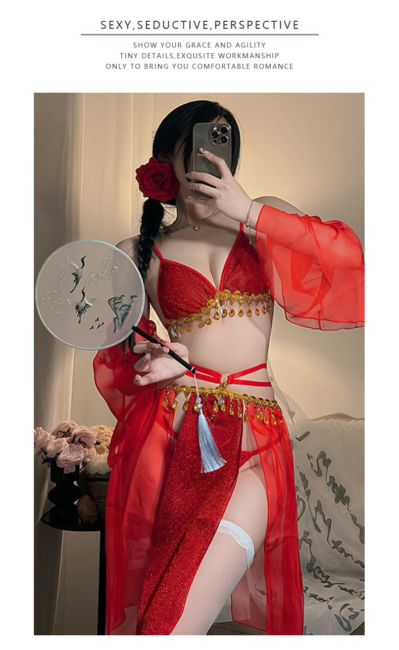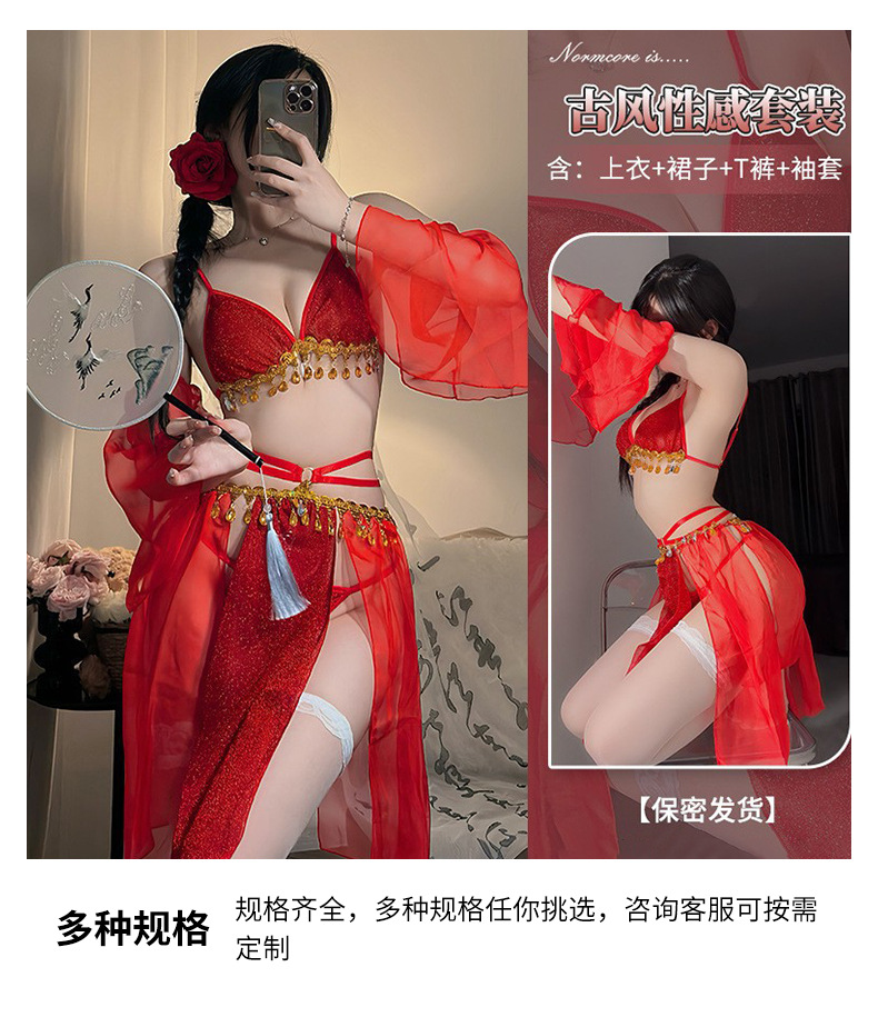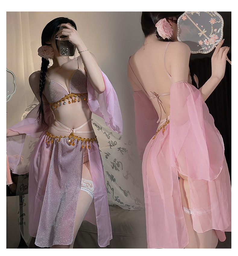 샹이 섹시 란제리 끈 장식 반짝이 쉬폰 한복 스타일 브라 재미있는 고대풍 초미녀 유혹 드레스 8583