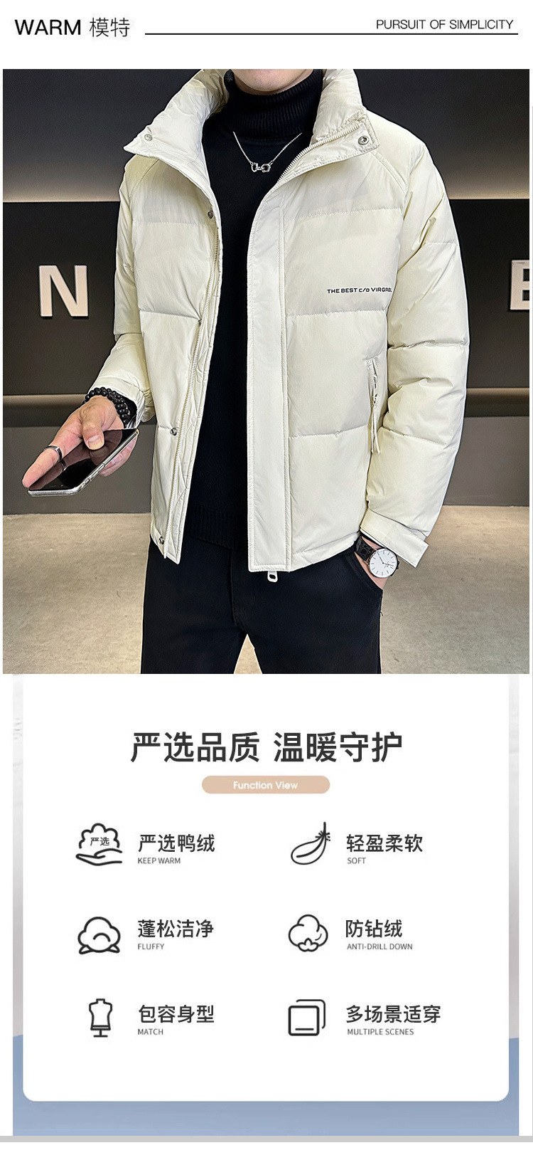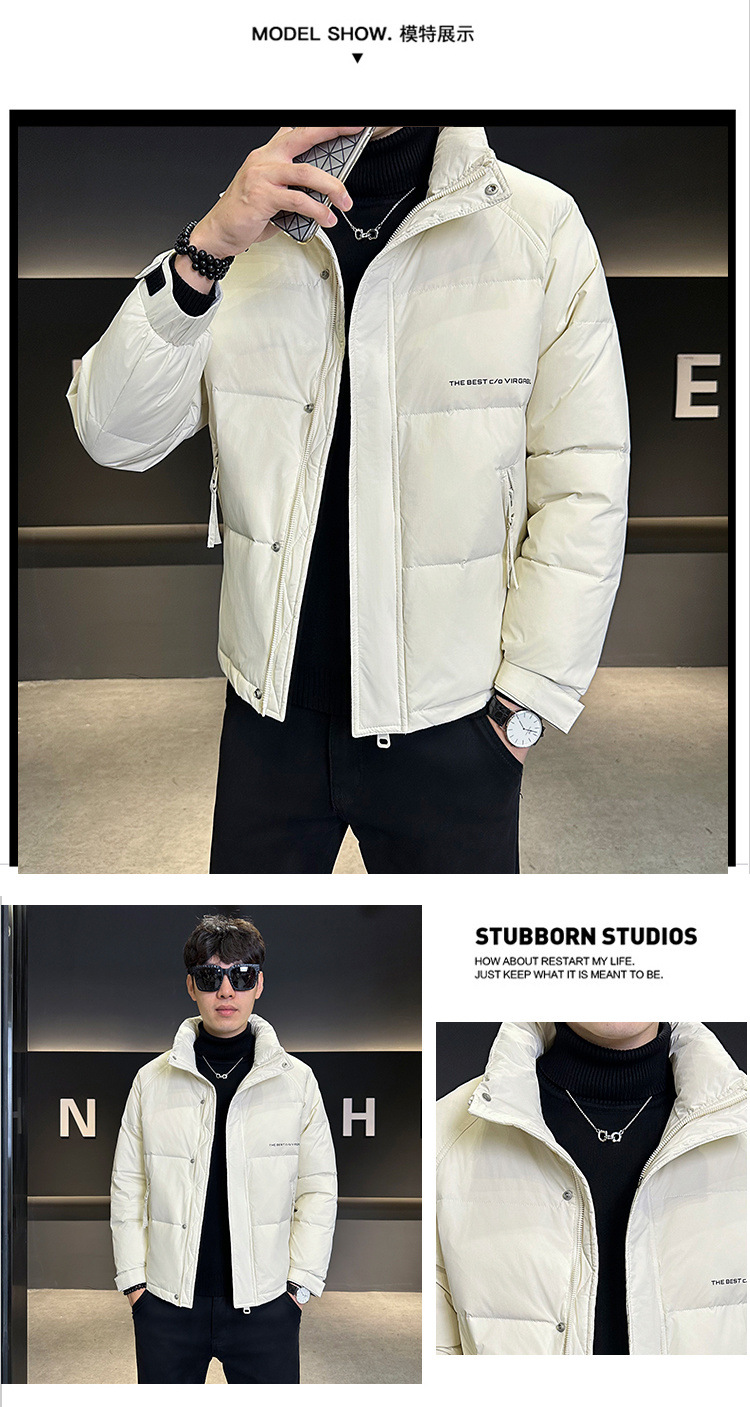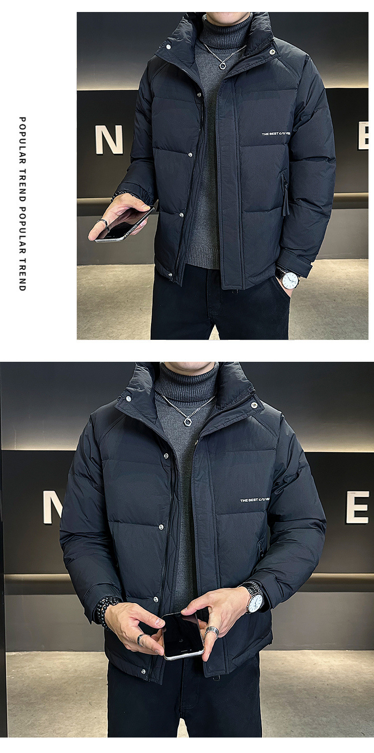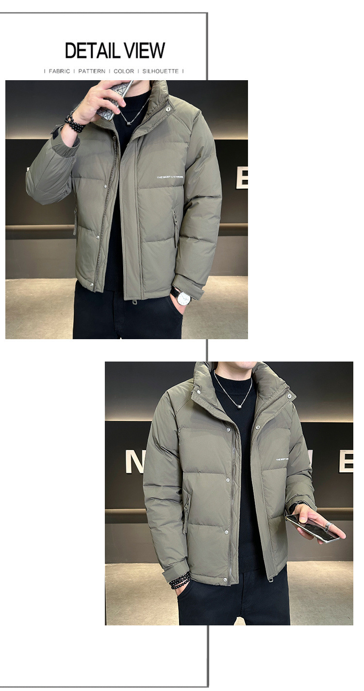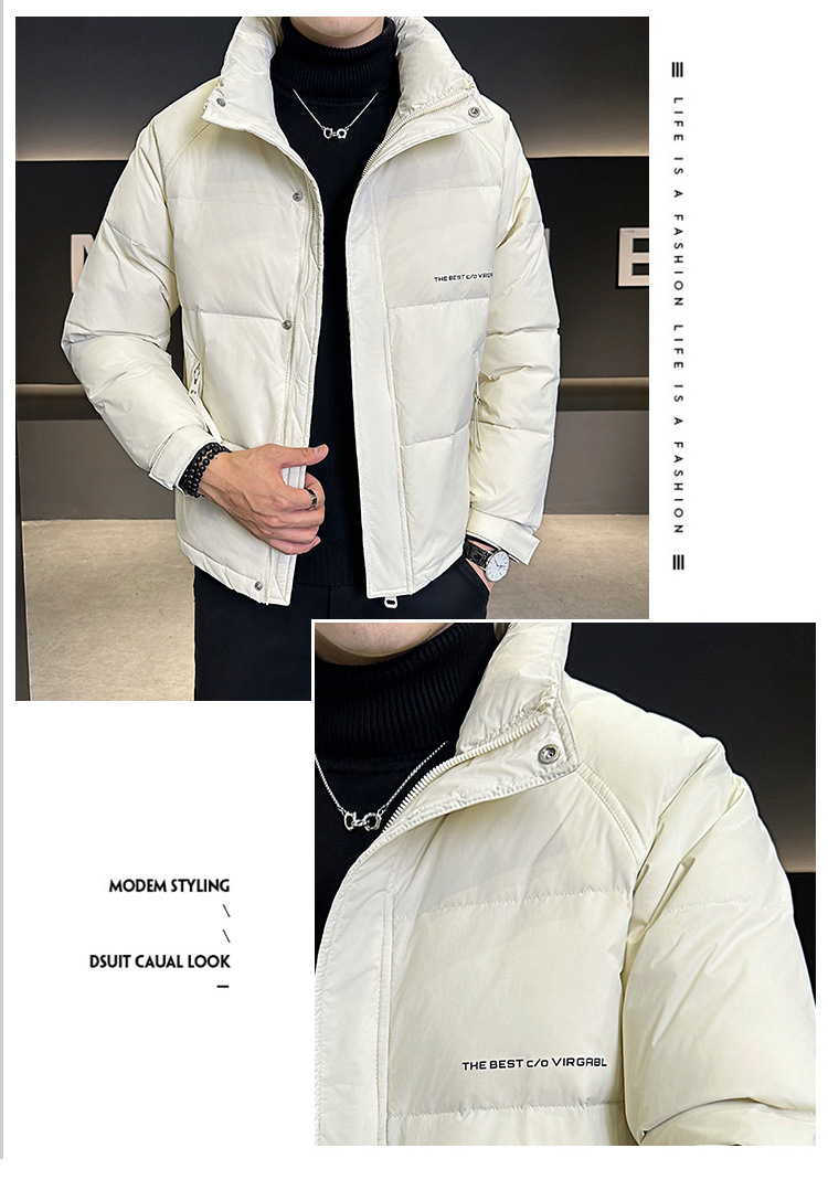 고급 센스 다운 재킷 남자 2024 가을 겨울 새로운 두꺼운 따뜻한 칼라 모자없는 겨울 자켓 남성 트렌디