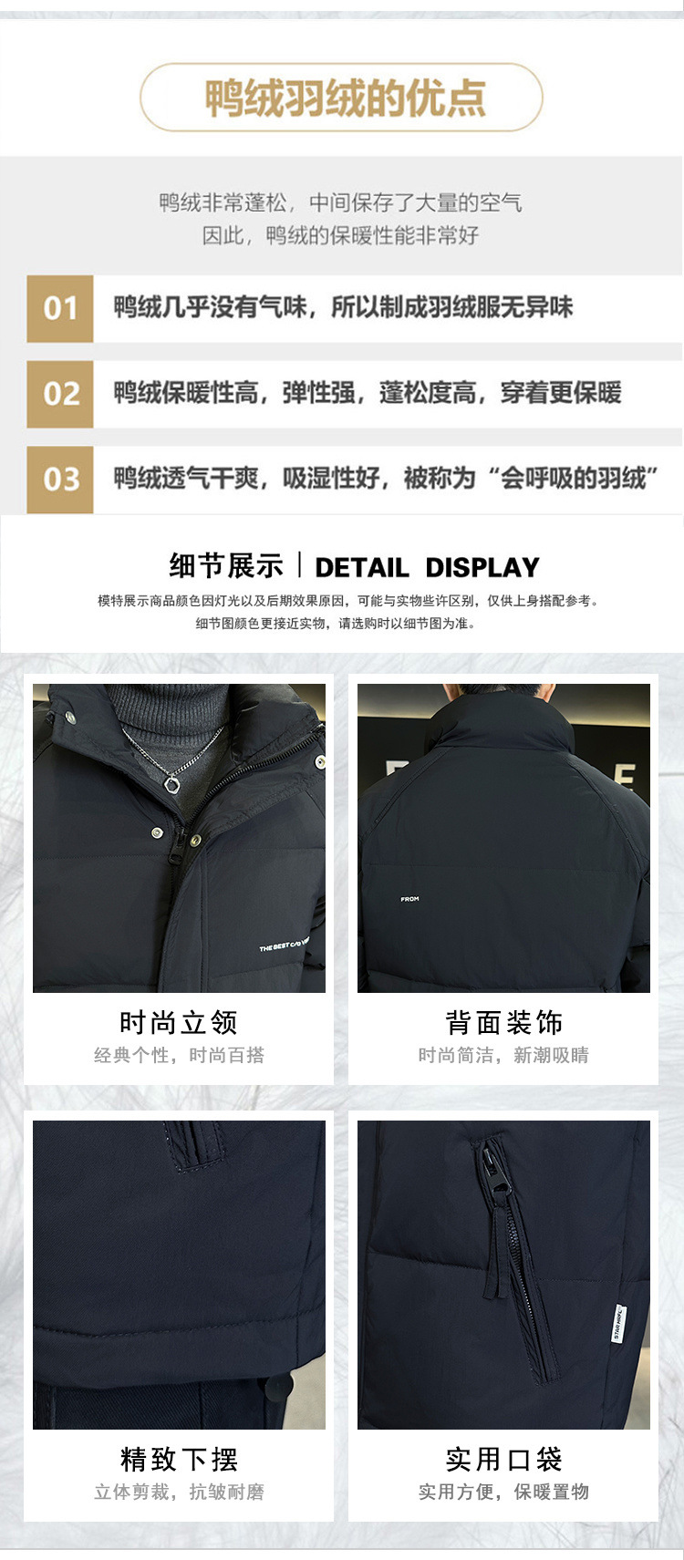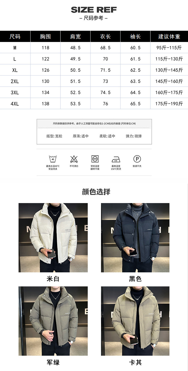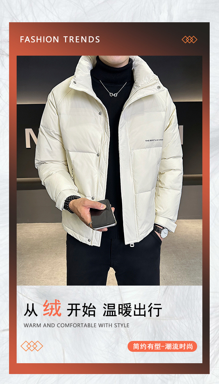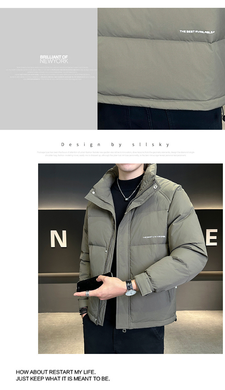고급 센스 다운 재킷 남자 2024 가을 겨울 새로운 두꺼운 따뜻한 칼라 모자없는 겨울 자켓 남성 트렌디