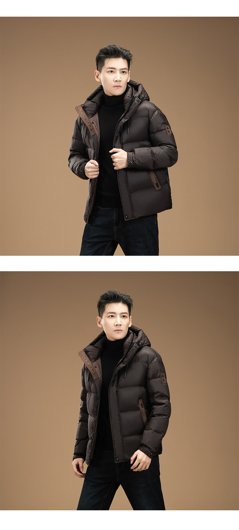 새로운 흰 오리 다운 짧은 재킷 남자의 겨울 하이 엔드 두꺼운 따뜻한 빵 의류 캐주얼 후드 재킷