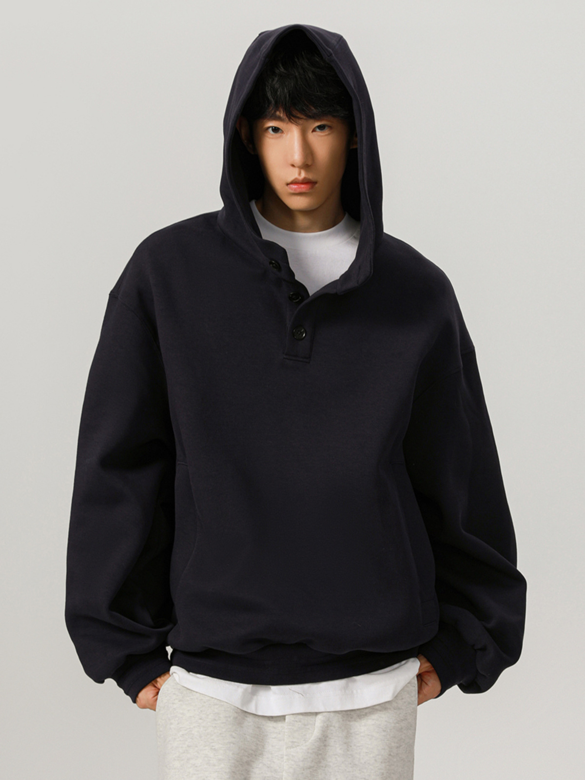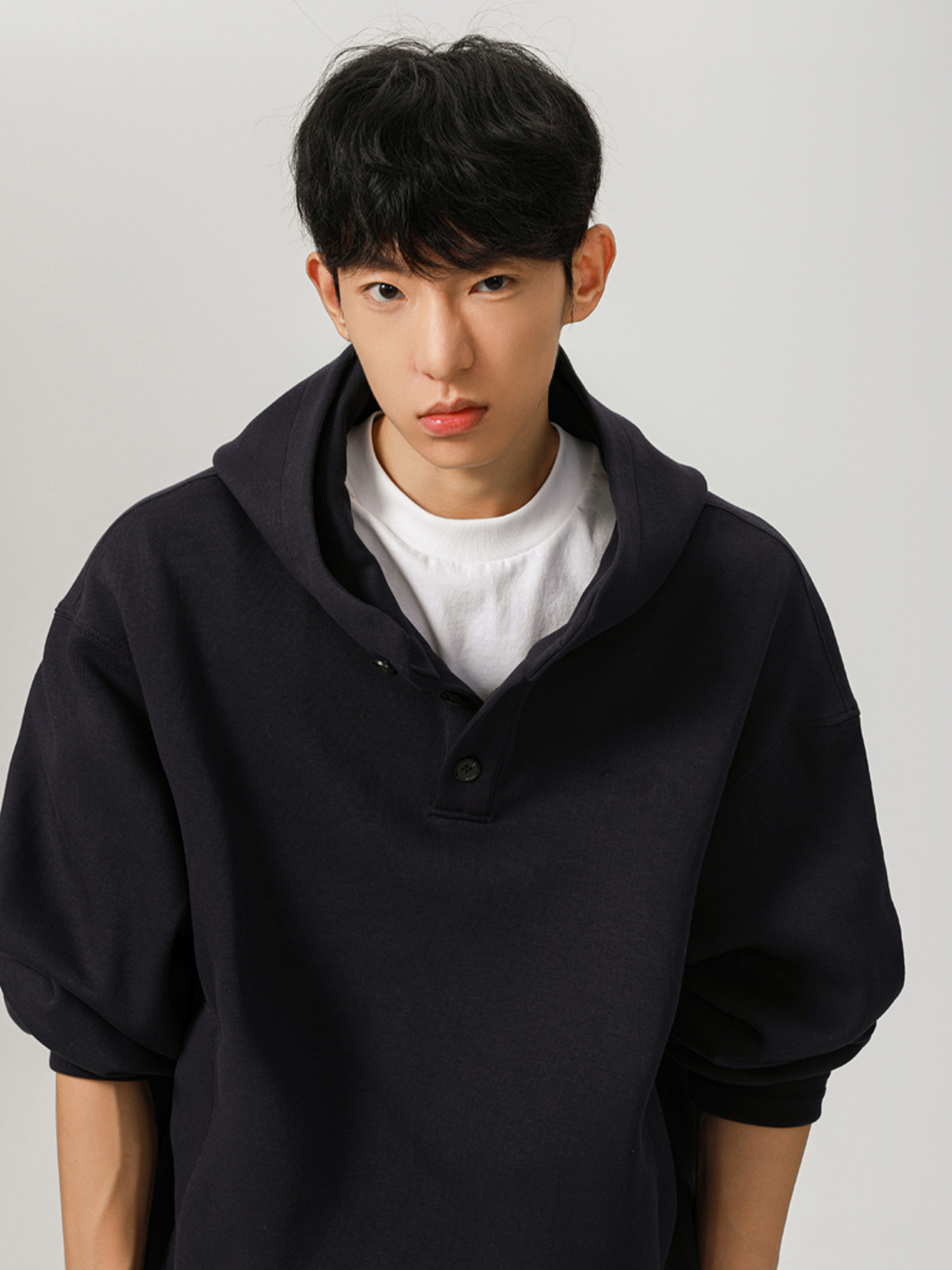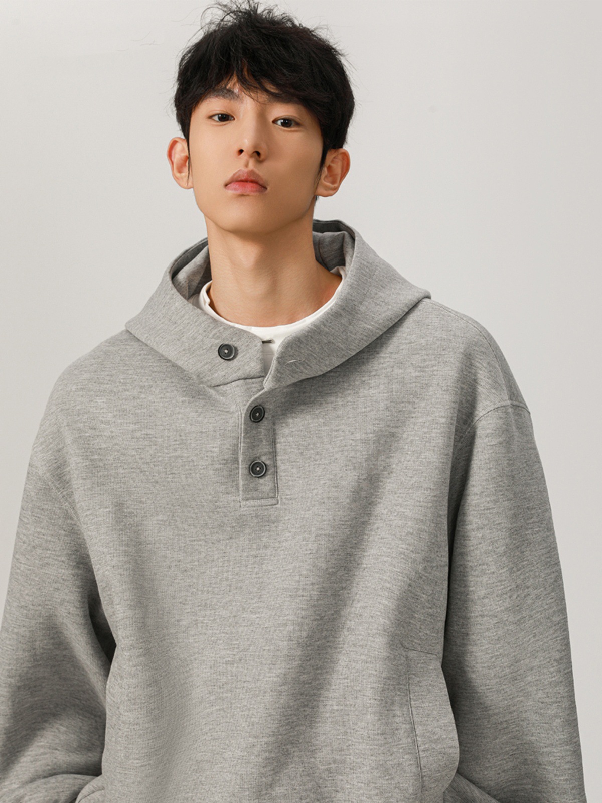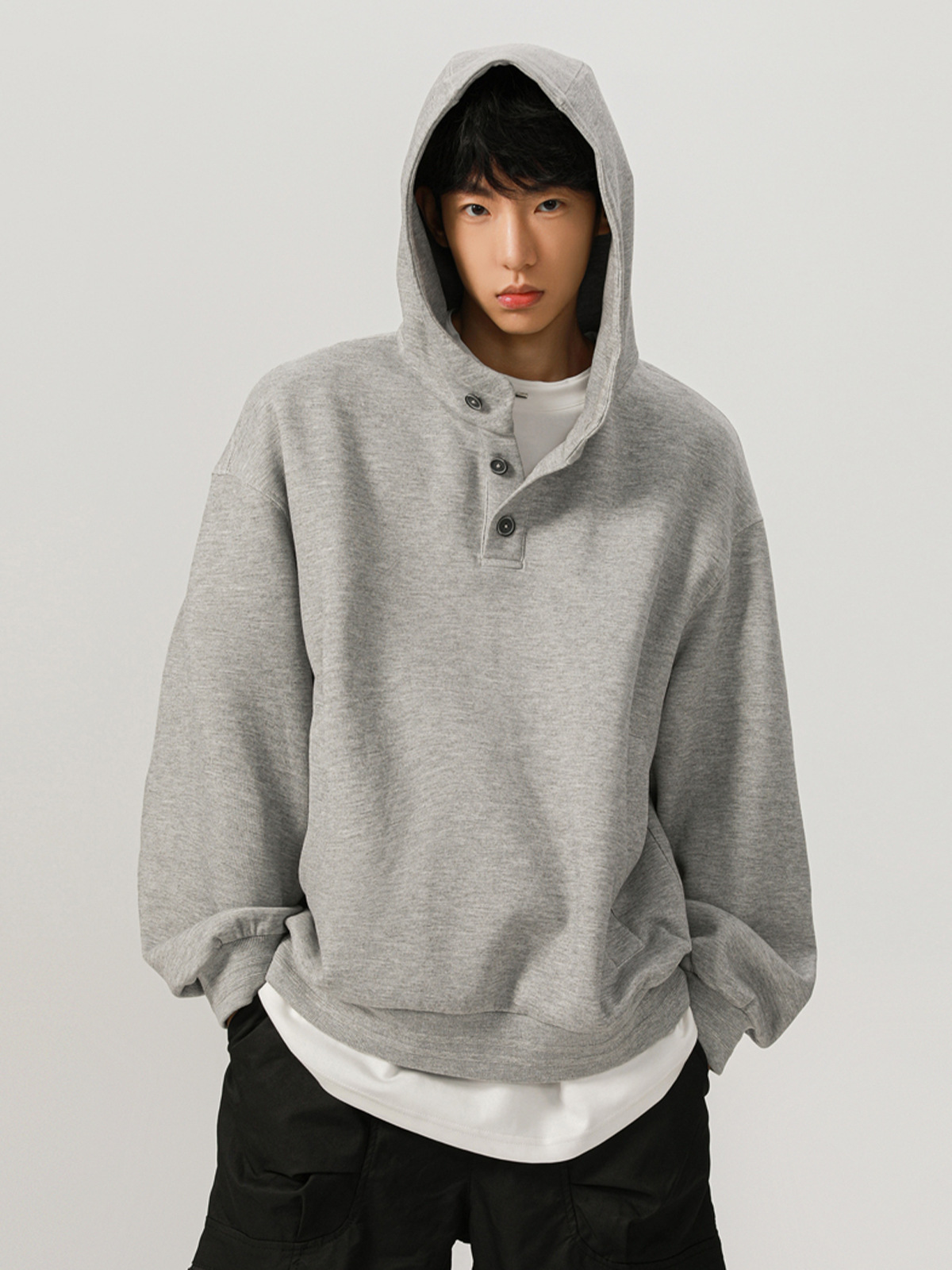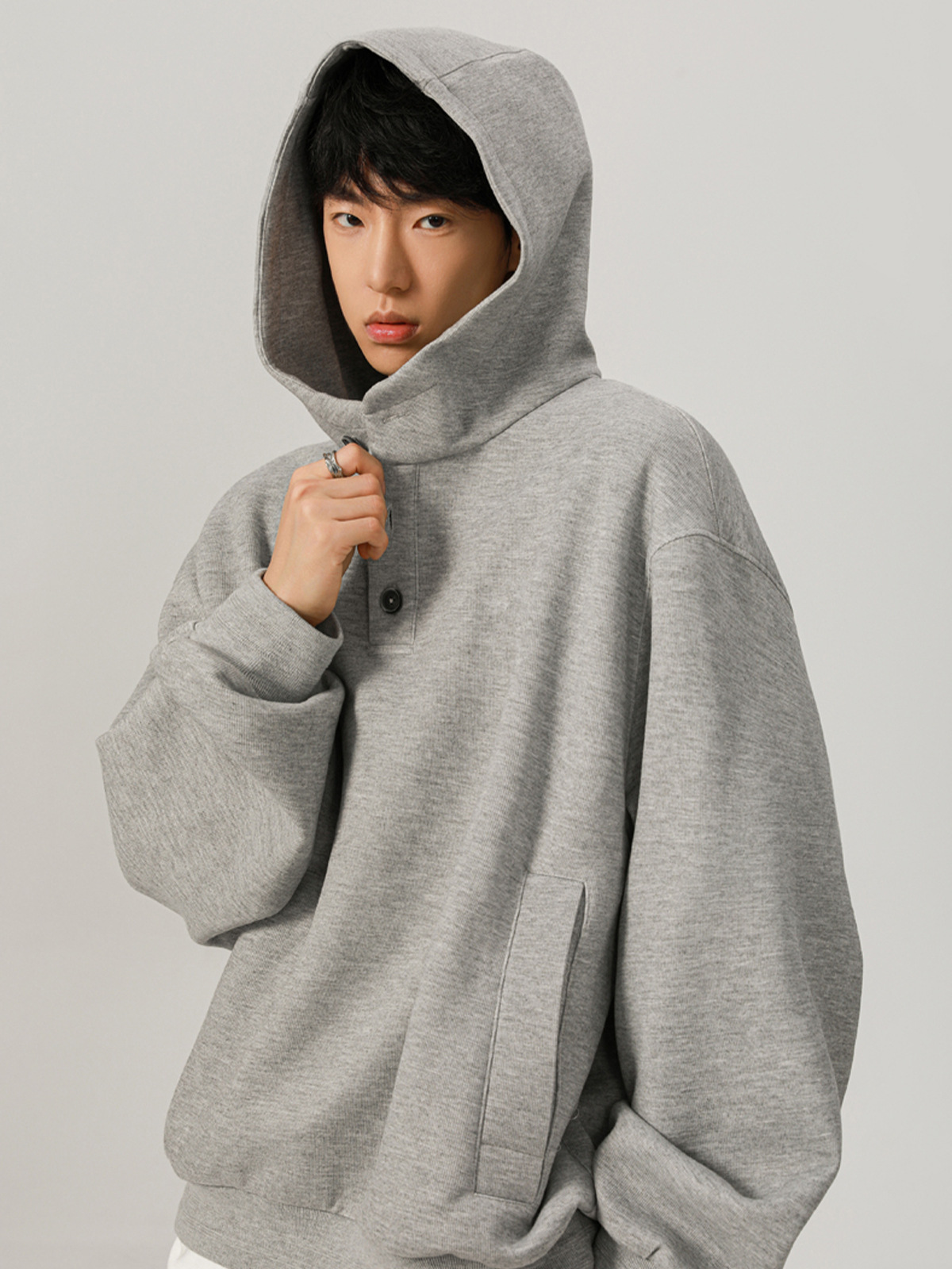 아메리칸 스타일 하이 칼라 버튼 후드 스웨트 셔츠 남성 2024 겨울 패션 브랜드 루즈 니치 디자인 센스 커플의 캐주얼 자켓