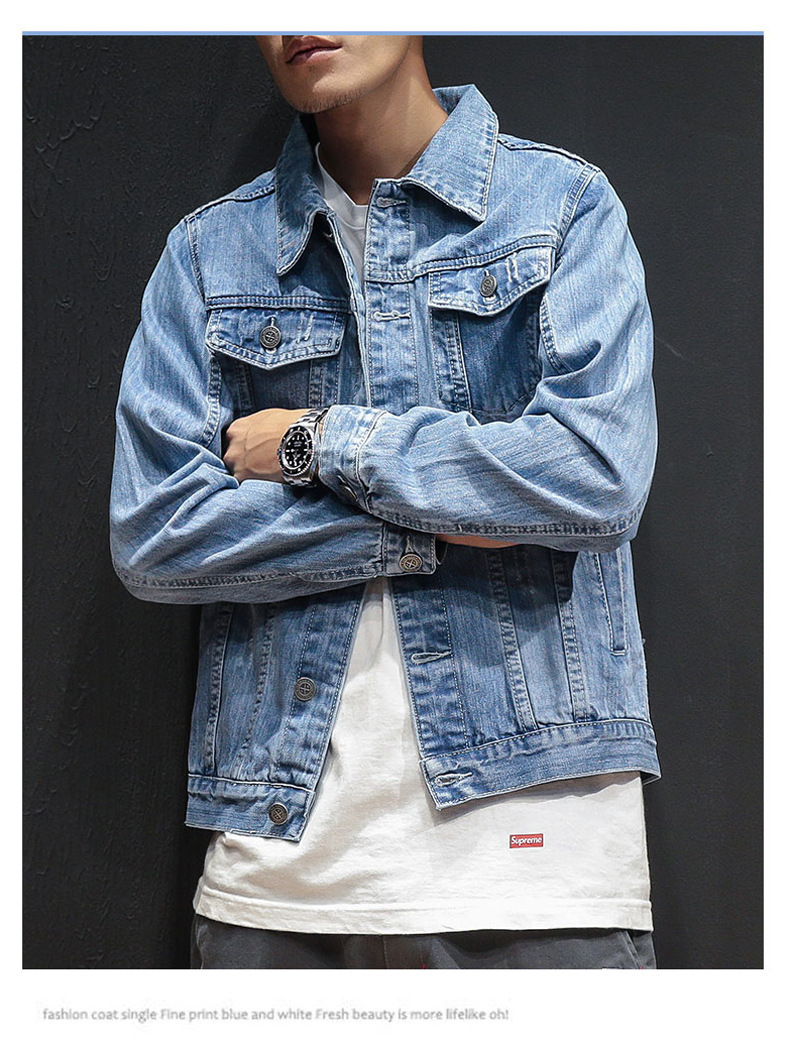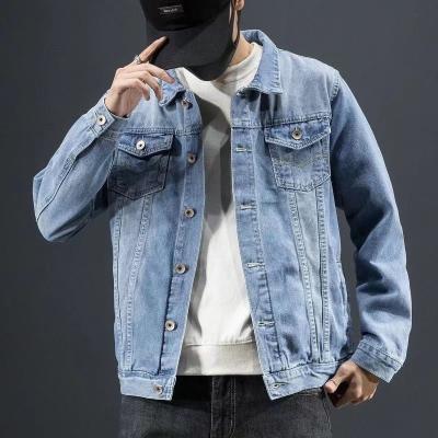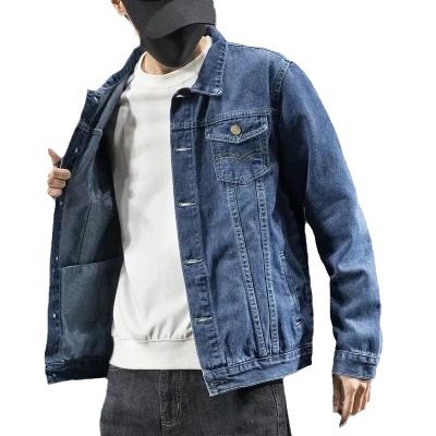 데님 코트 남성용 세련된 슬림 핏 재킷 학생 의류 유행 데님 재킷 봄과 가을 잘 생긴 데님 옷