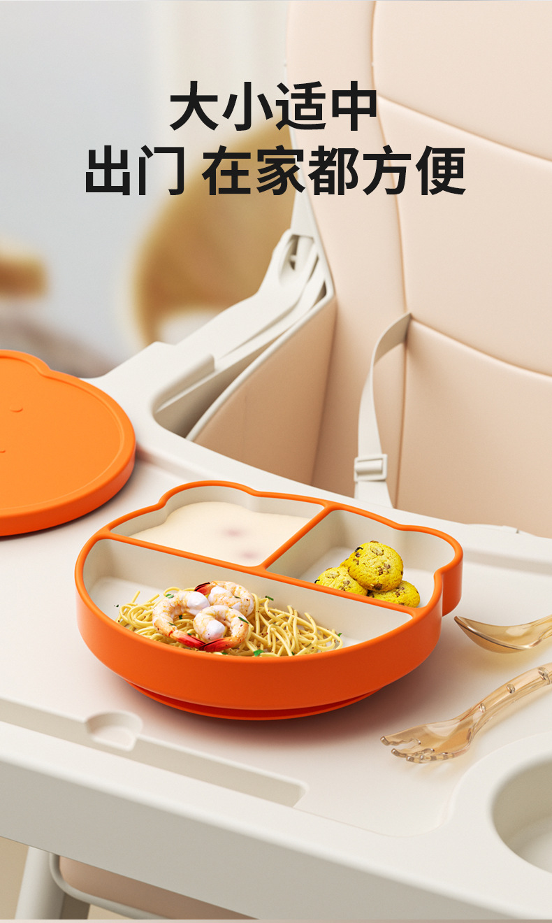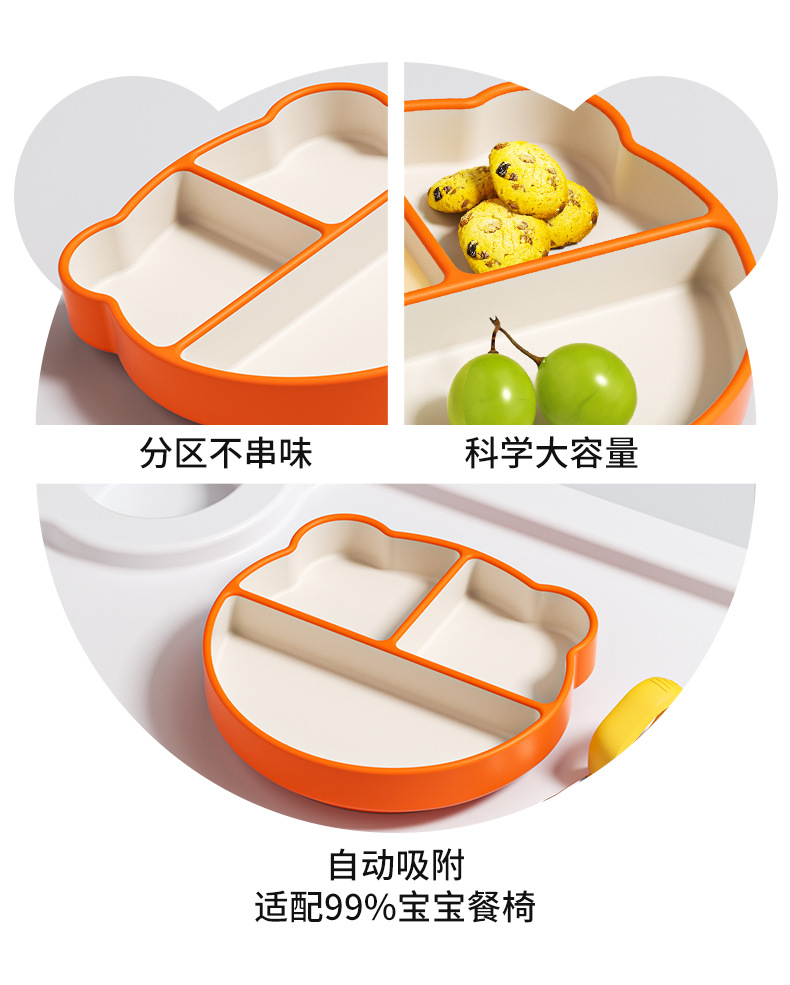 오리지널 베이비 디너 플레이트, 실리콘 베이비 빨판, 일체형 칸막이, 어린이 특별 식사 보조 식기