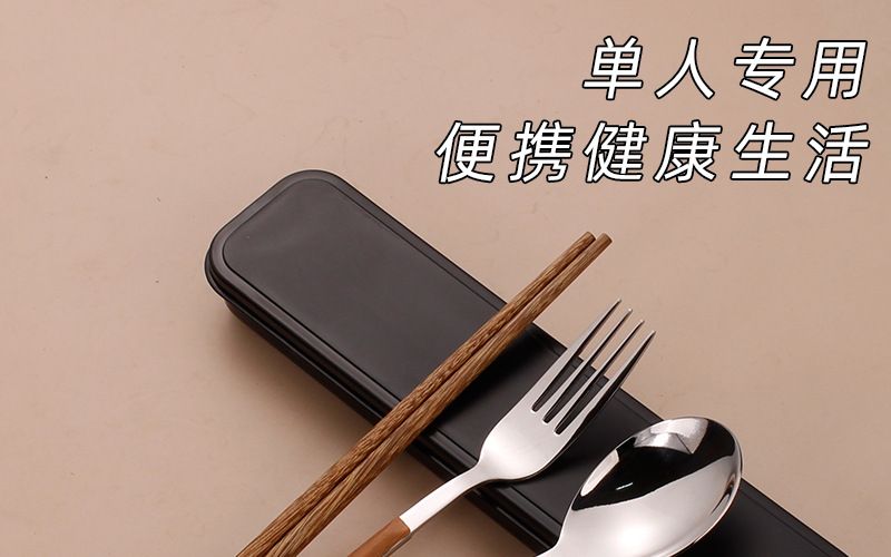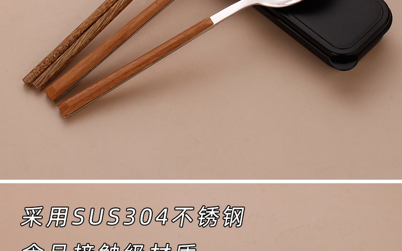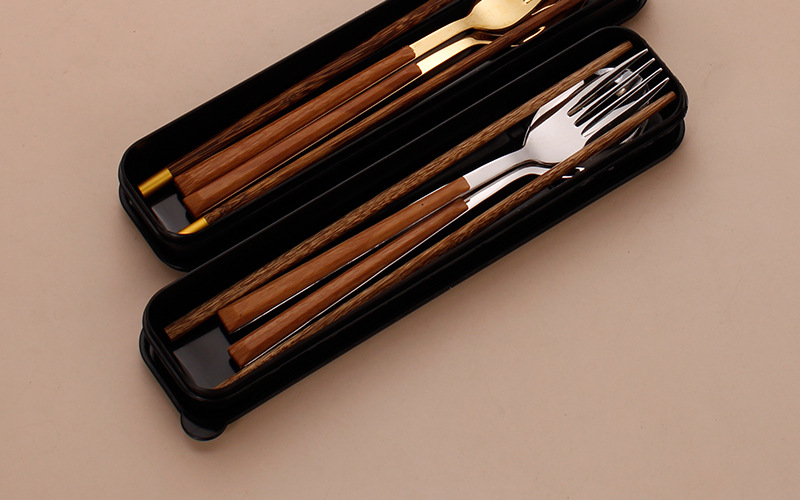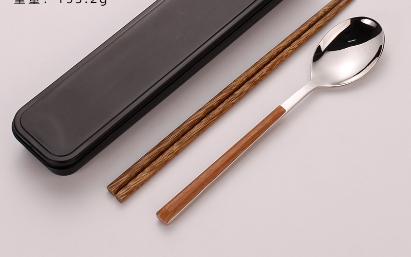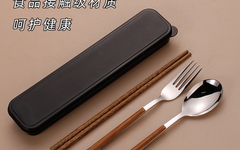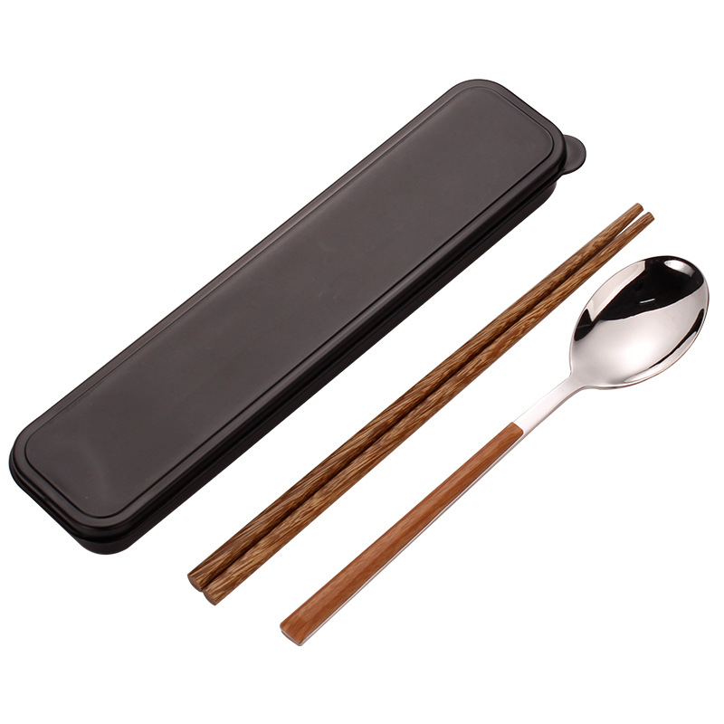 스테인레스 스틸 젓가락 숟가락 세트 모방 목재 곡물 식기 학생 테이크 아웃 휴대용 식사 학교 사무실 근로자 보관 상자
