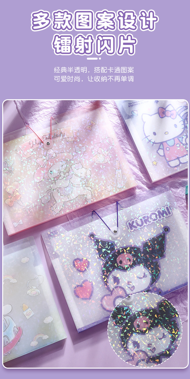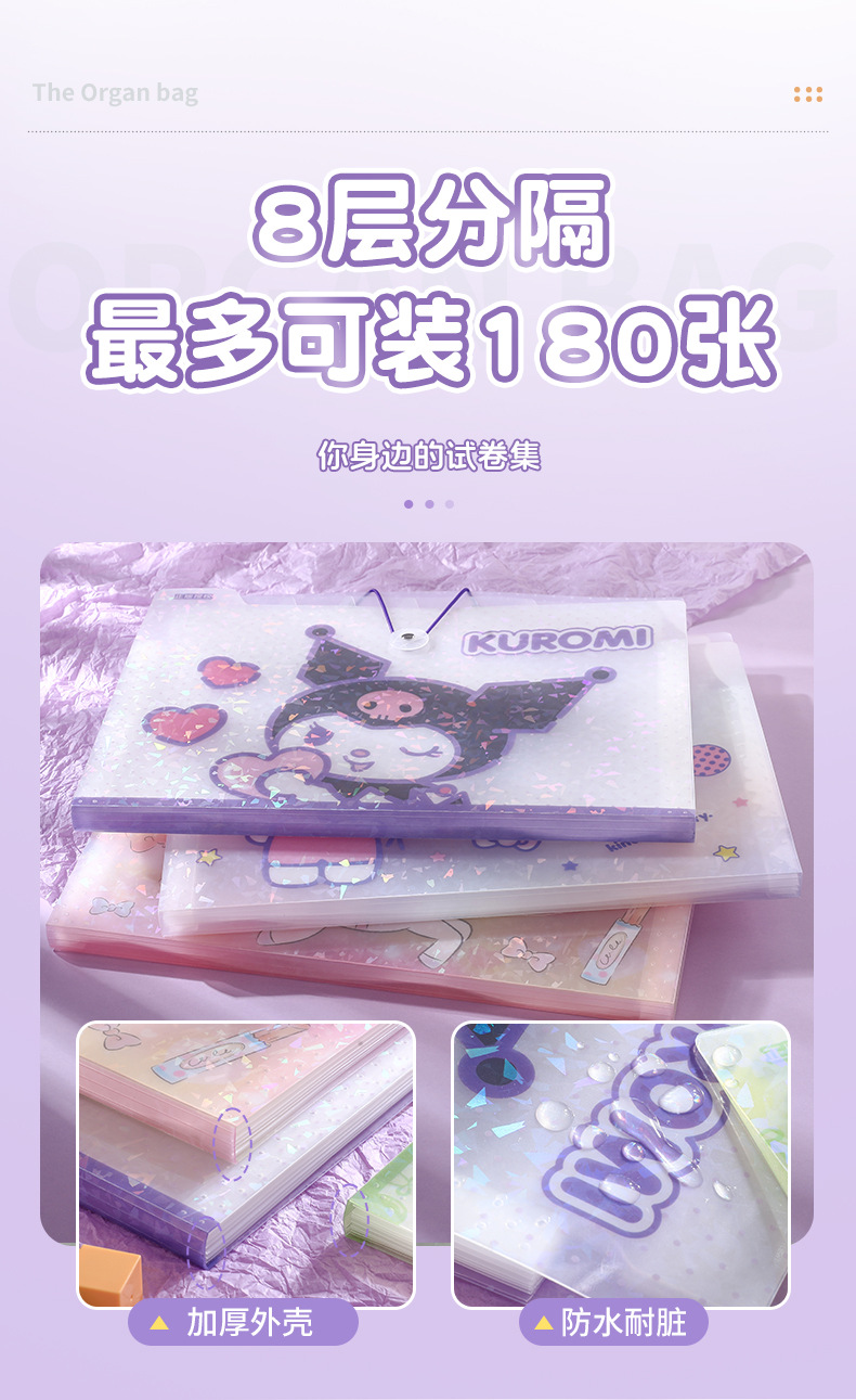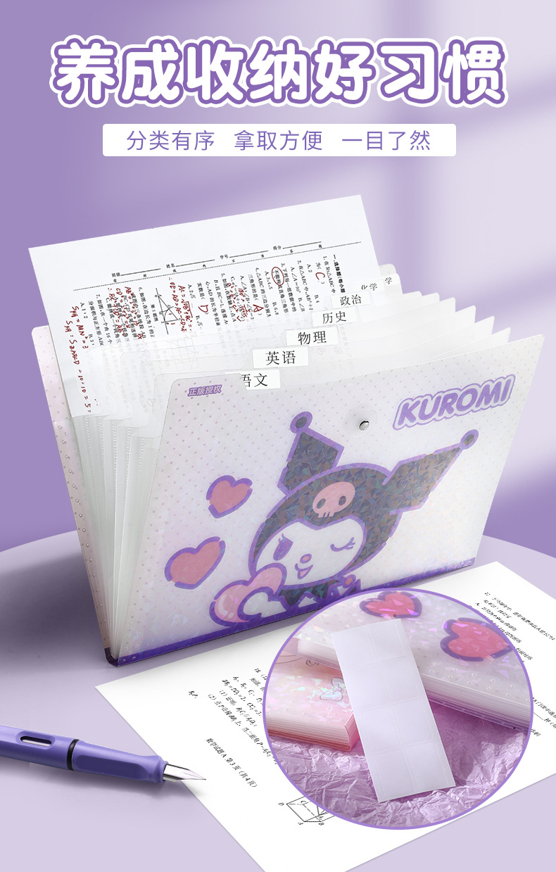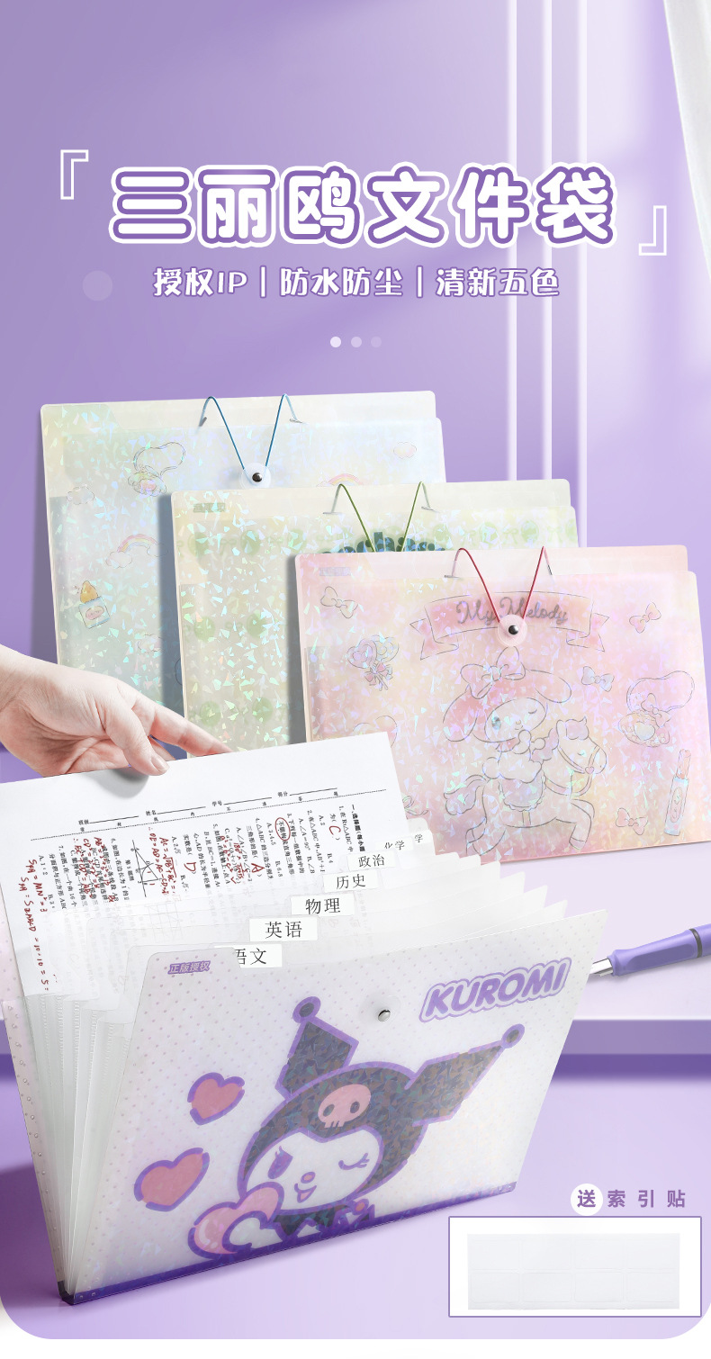Sanrio 정품 인증 a4 테스트 용지 폴더 높은 색상 가치 만화 폴더 스토리지 가방 분류 아티팩트