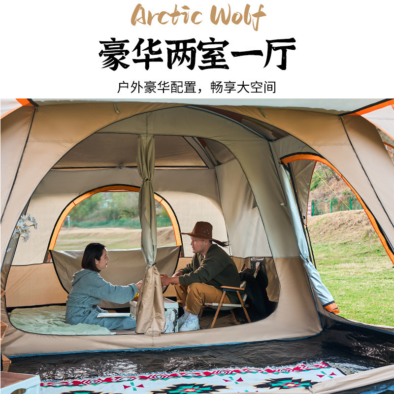 큰 텐트 2 룸 1 홀 야외 접이식 휴대용 방풍 캠핑 바베큐 두꺼운 방비 야외 야간 캠핑