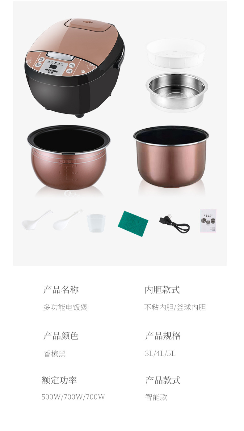 긍정적 인 반구 밥솥 가정용 지능형 대용량 3L4 리터 5L 자동 다기능 밥솥 예약 요리