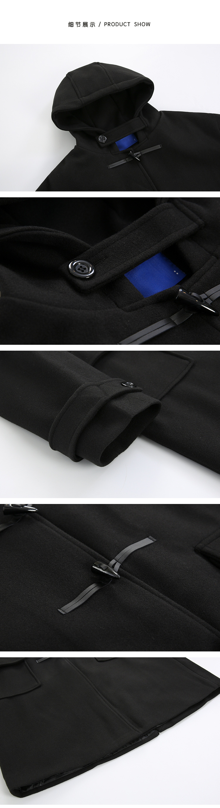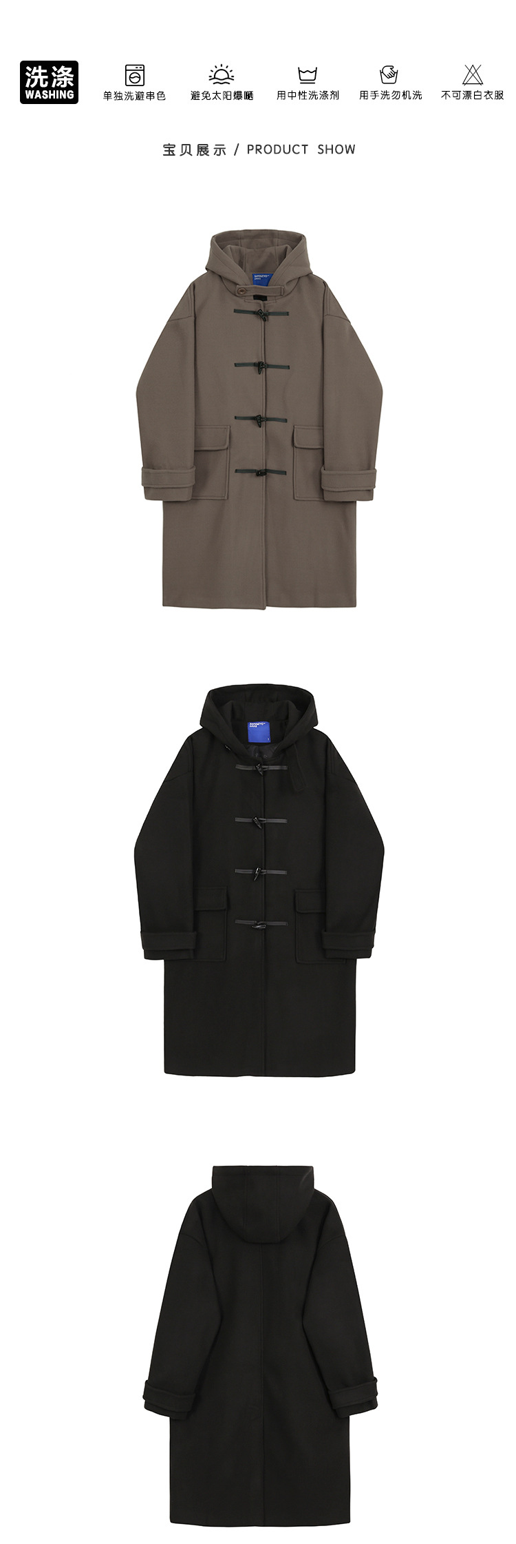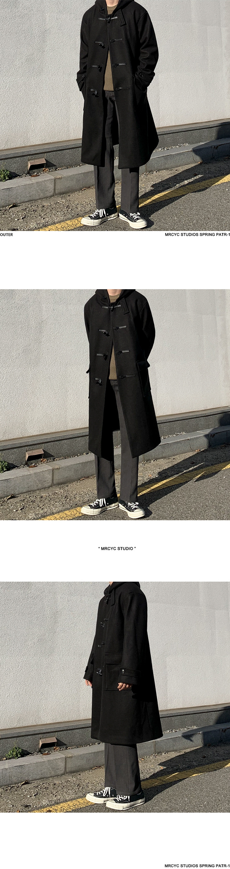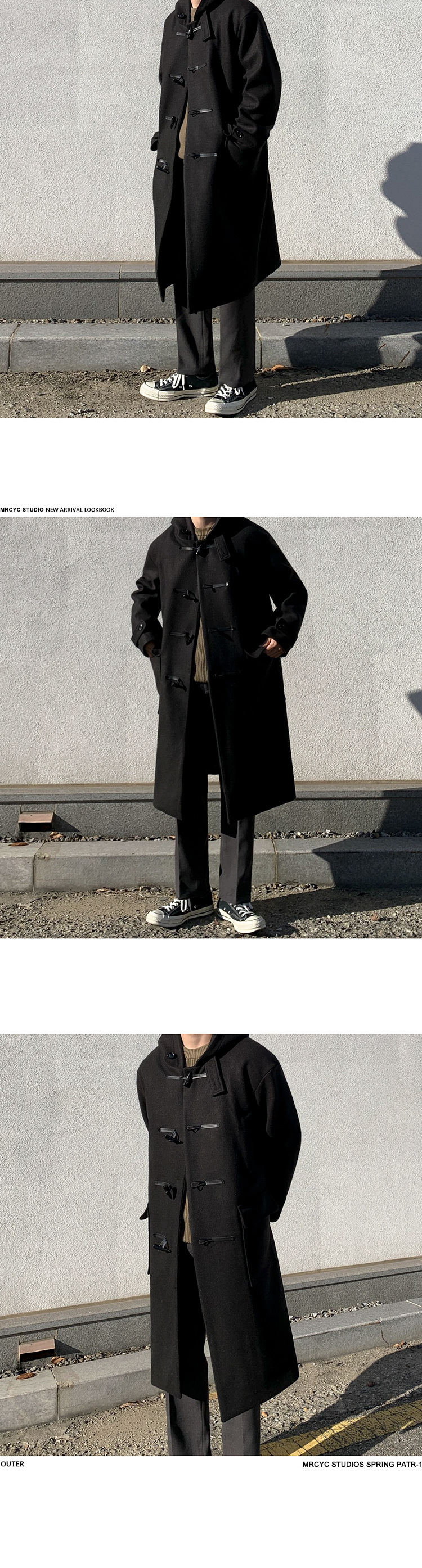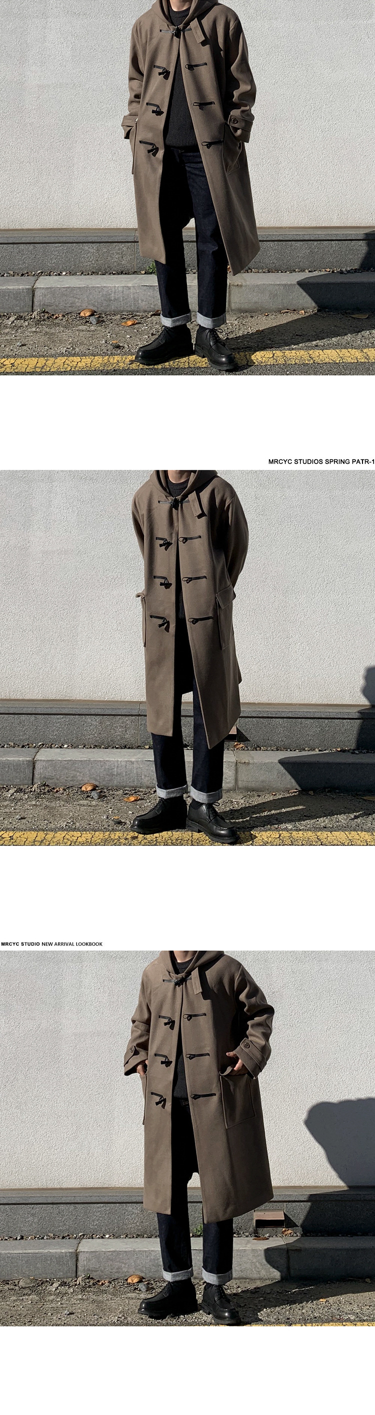 MYQ 일본 모직 코트 남자 중간 길이의 코트 후드 라펠 재킷 트렌디 남성 혼 버클 울 코트