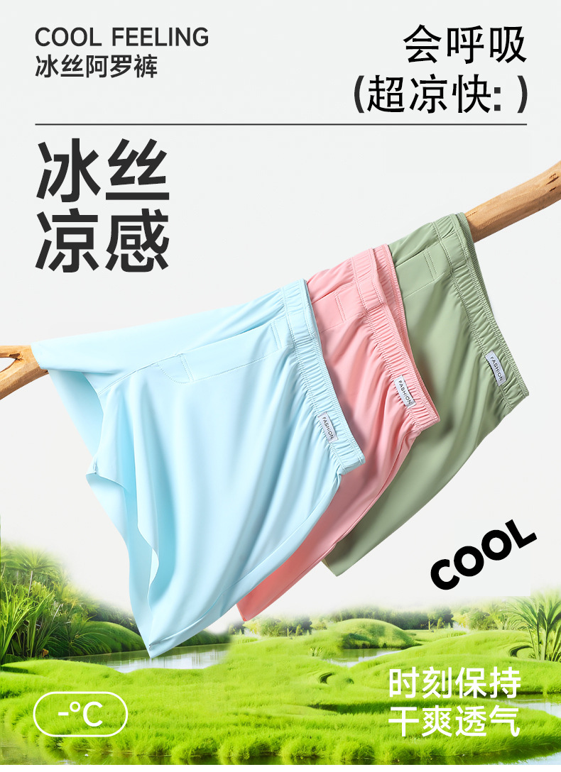 플러스 사이즈 남성 속옷 소년 아이스 실크 화살표 바지 느슨한 여름 통기성 홈 바지 청소년 복서 반바지 머리