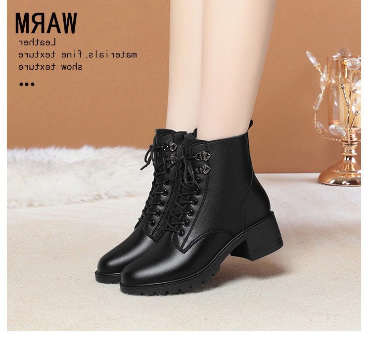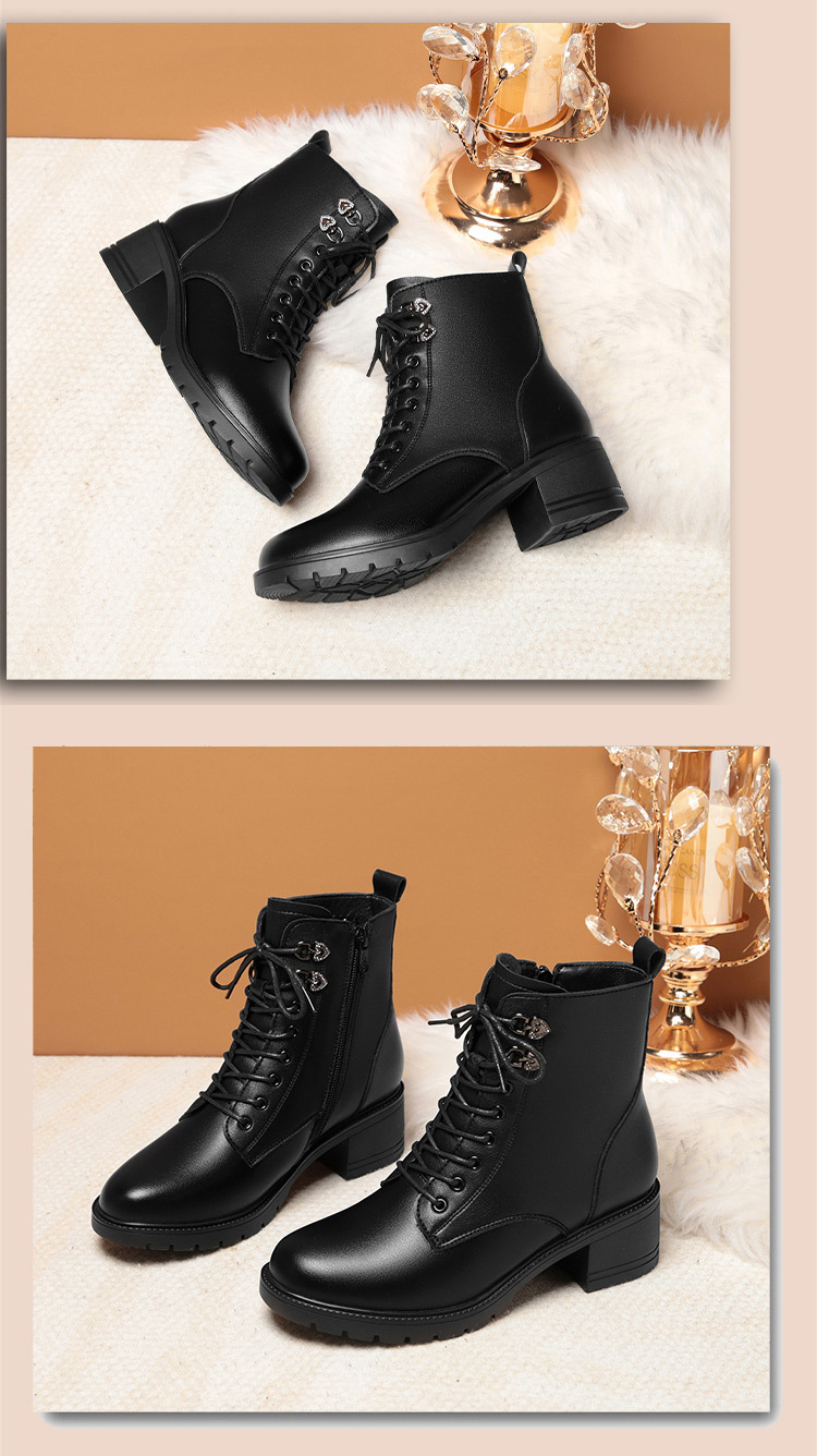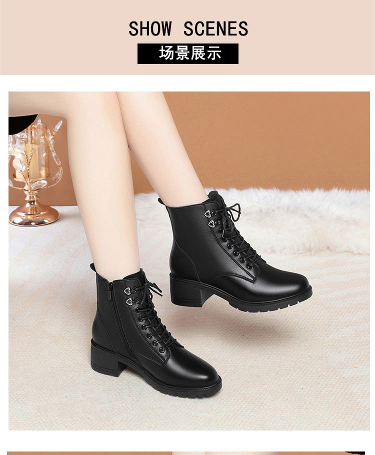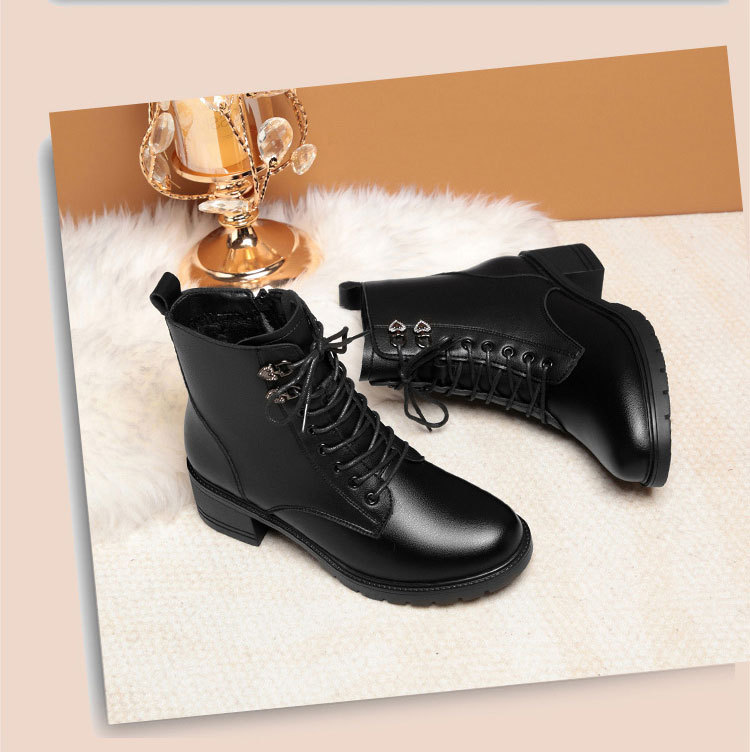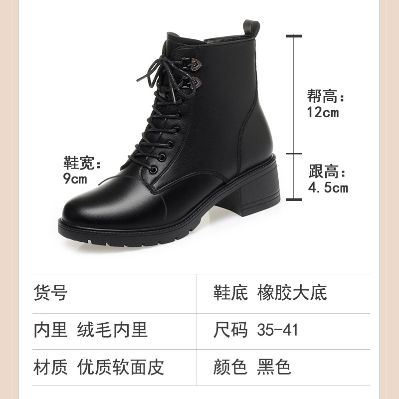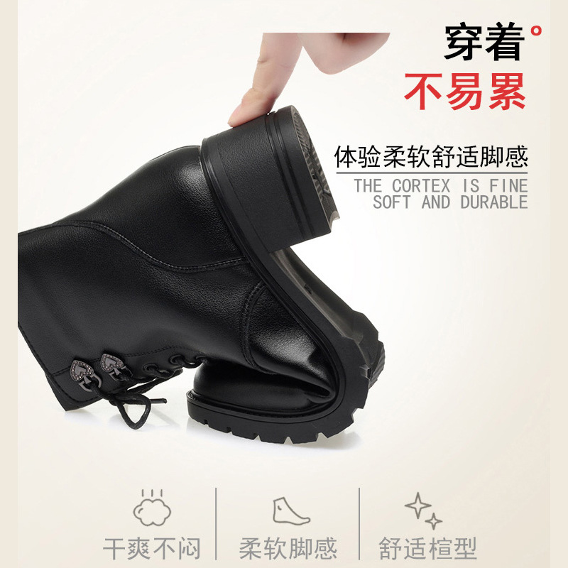여성용 레이스 업 사이드 지퍼 미드 힐 부츠 높이 증가 슬림 룩 레트로 영국 스타일 캐주얼 가죽 신발 겨울 트렌디 쿨 마틴 부츠