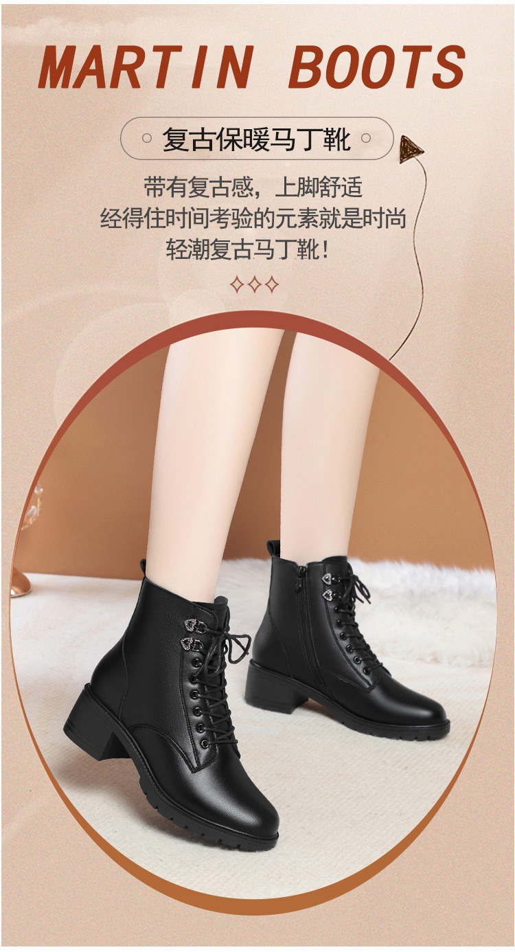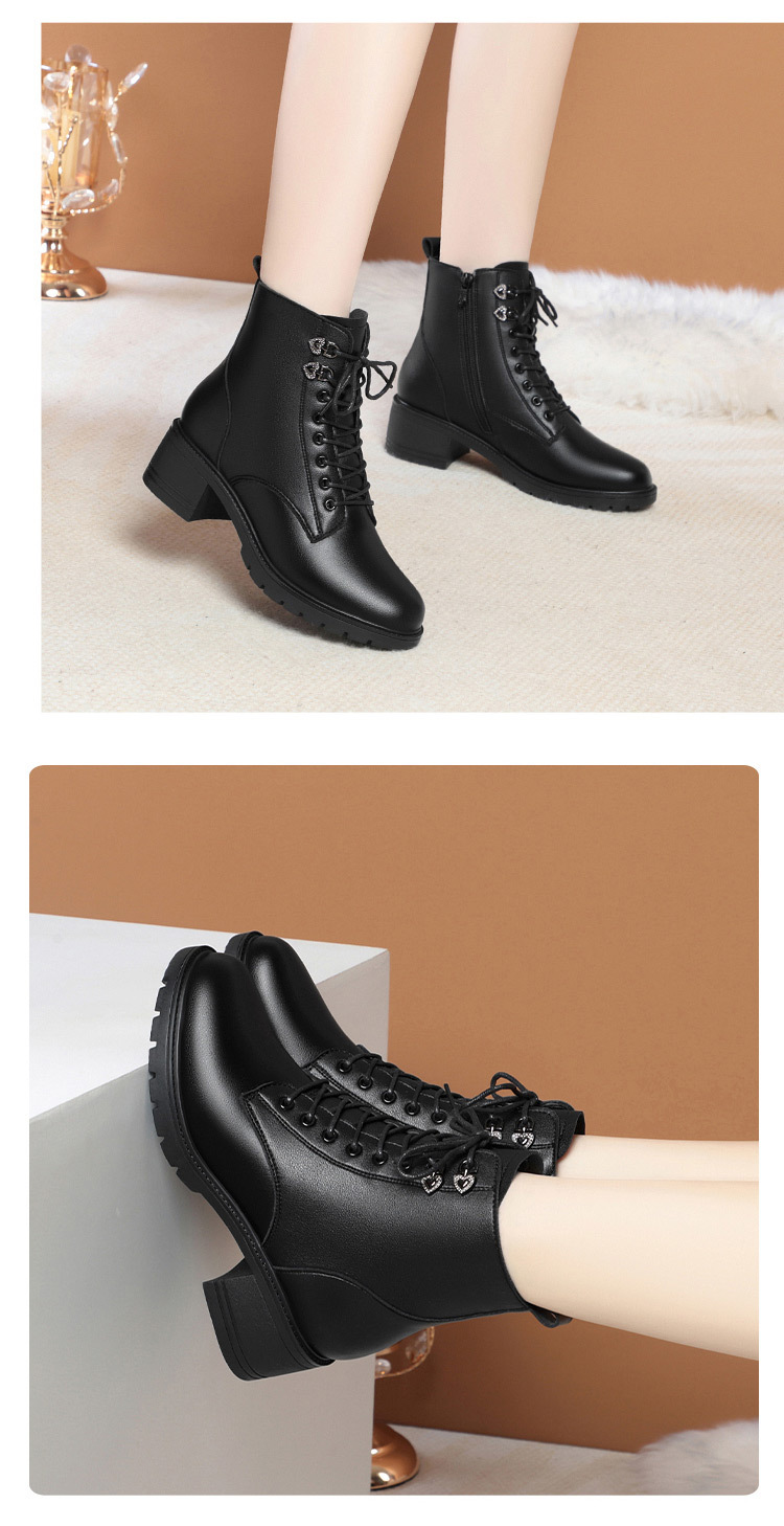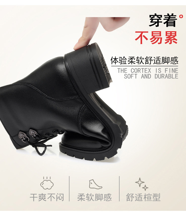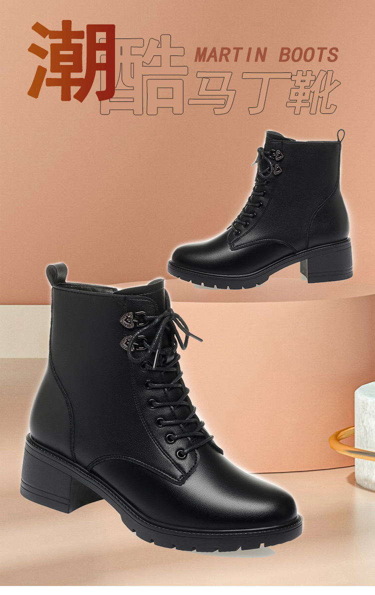 여성용 레이스 업 사이드 지퍼 미드 힐 부츠 높이 증가 슬림 룩 레트로 영국 스타일 캐주얼 가죽 신발 겨울 트렌디 쿨 마틴 부츠