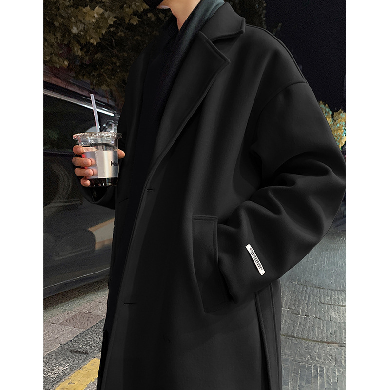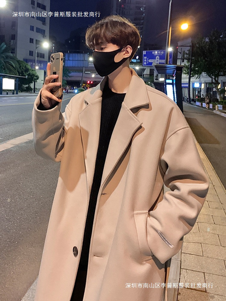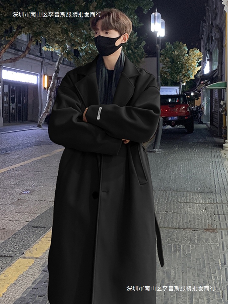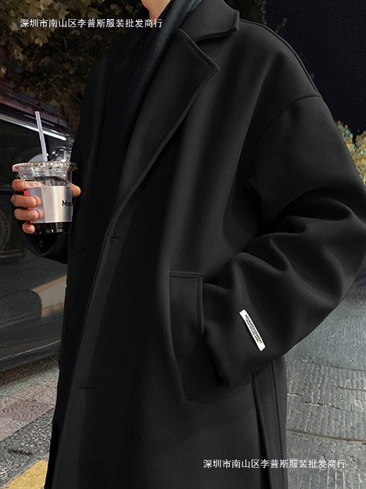 셸비 중간 길이의 모직 코트 소년 겨울 영국 스타일 더피 핸섬 모직 코트 무릎 느낌 트렌치 코트