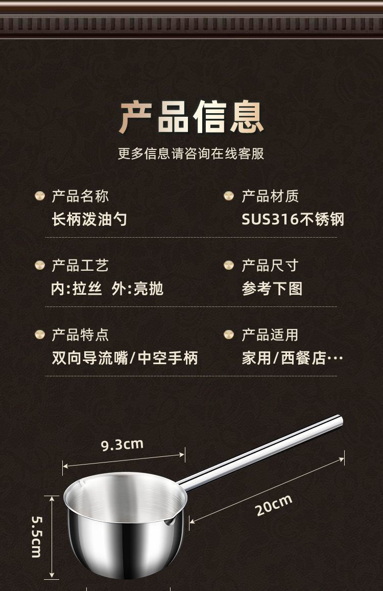 316 스테인리스 스틸 오일 스푼, 작은 냄비용 오일 스푼, 오일을 뿌리는 스푼, 소스를 붓는 스푼, 우유 냄비용 스푼, 논스틱 롱 핸들 논스틱 팬