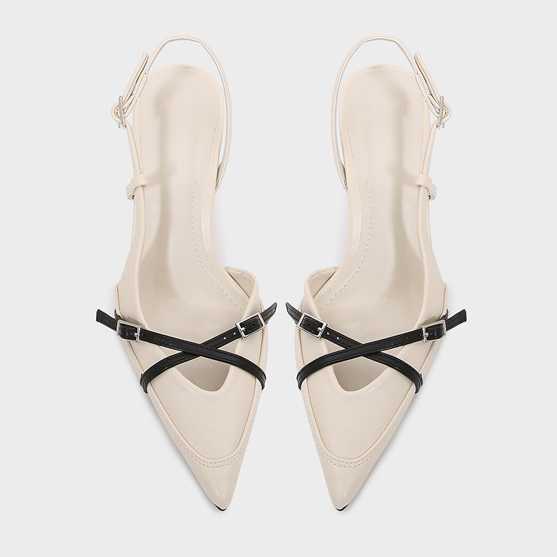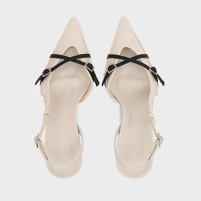 ZA2024 가을 겨울 신상 여성화 흑백 배색 크로스 스트랩 슬링백 스틸레토 뮬 포인티드 토 얕은 샌들