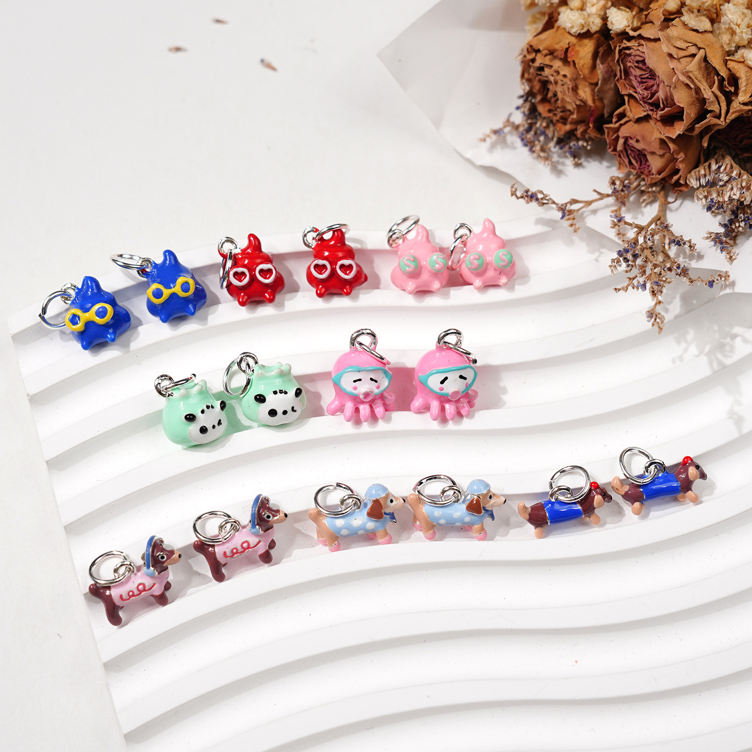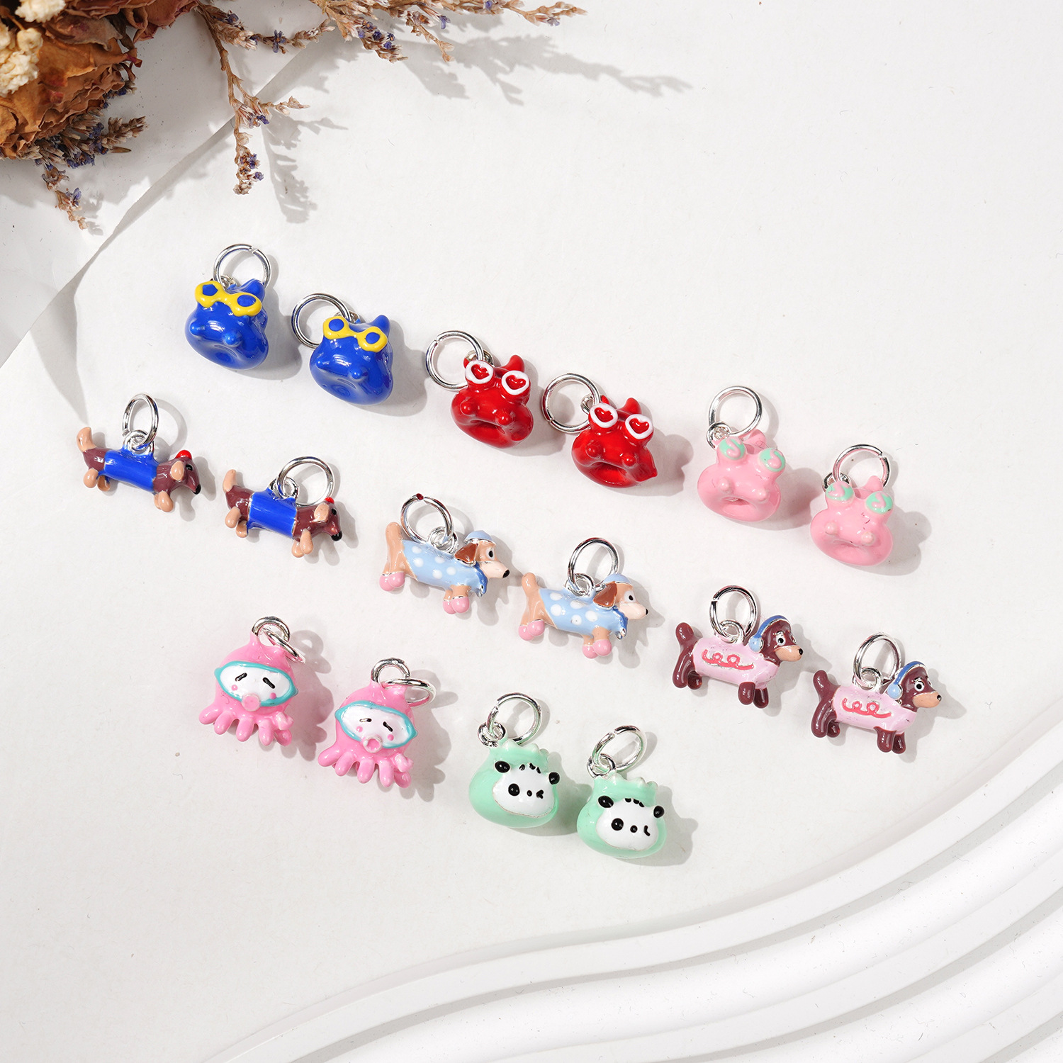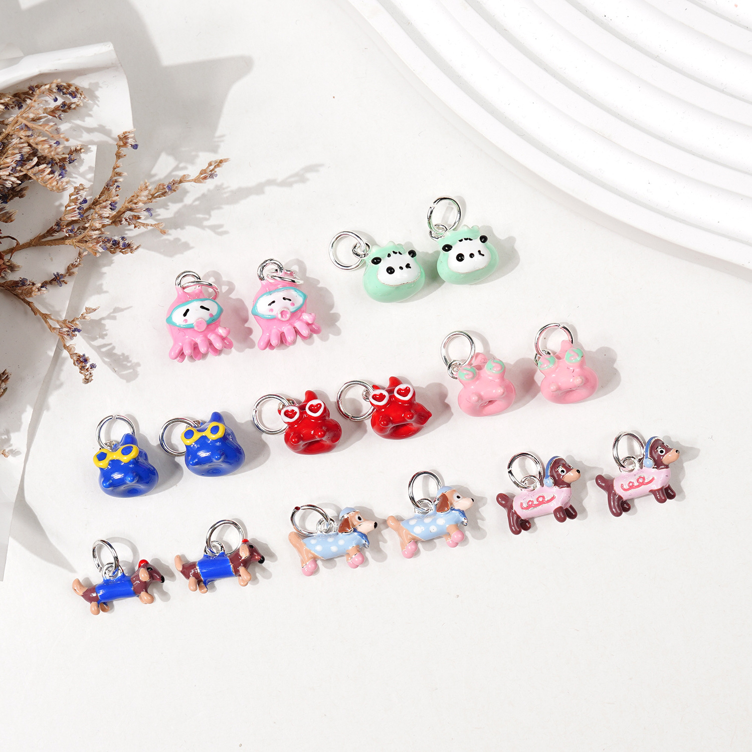 닥스 훈트 귀여운 만화 펜던트 DIY 액세서리 팬더 문어 구슬 팔찌 목걸이 펜던트