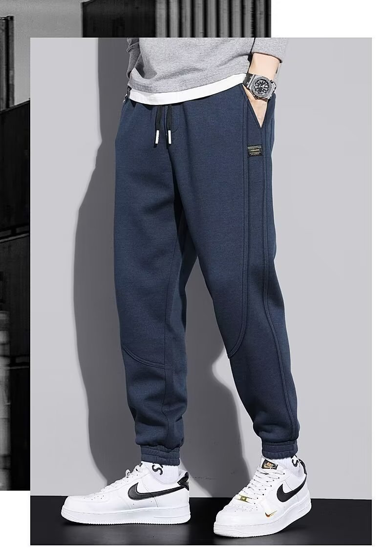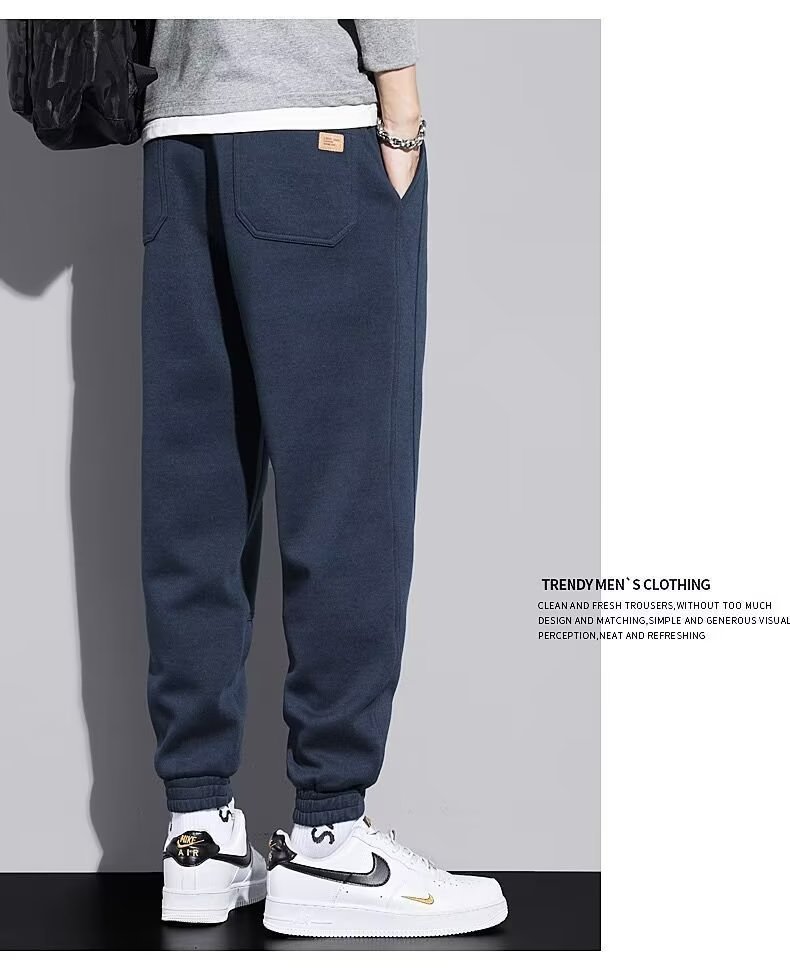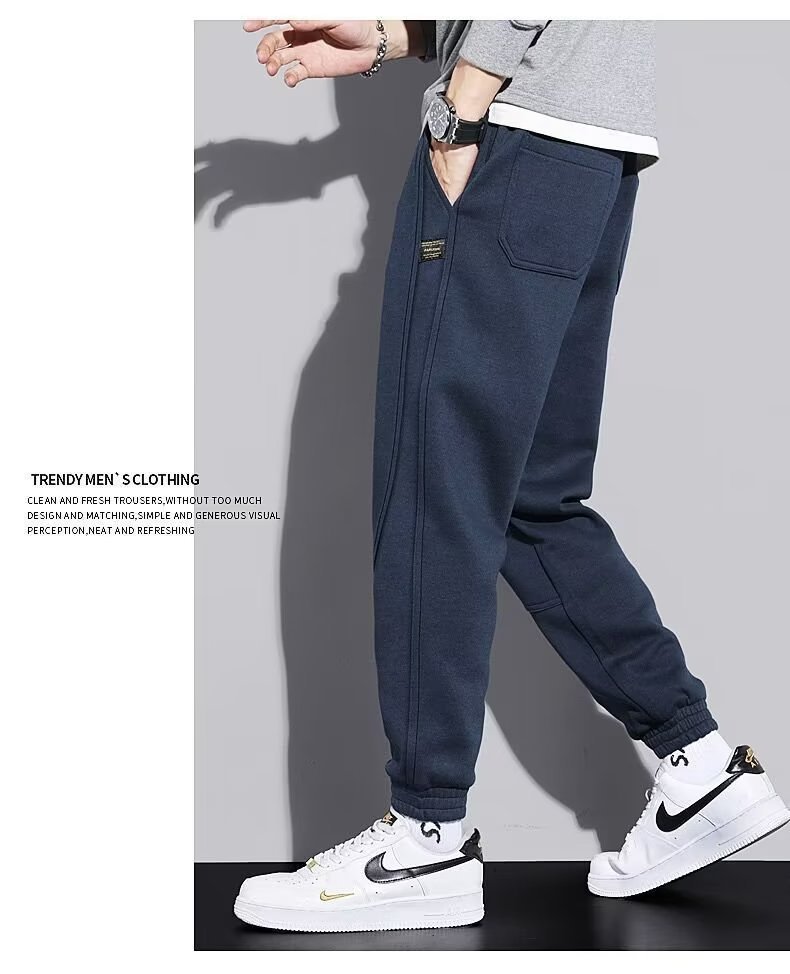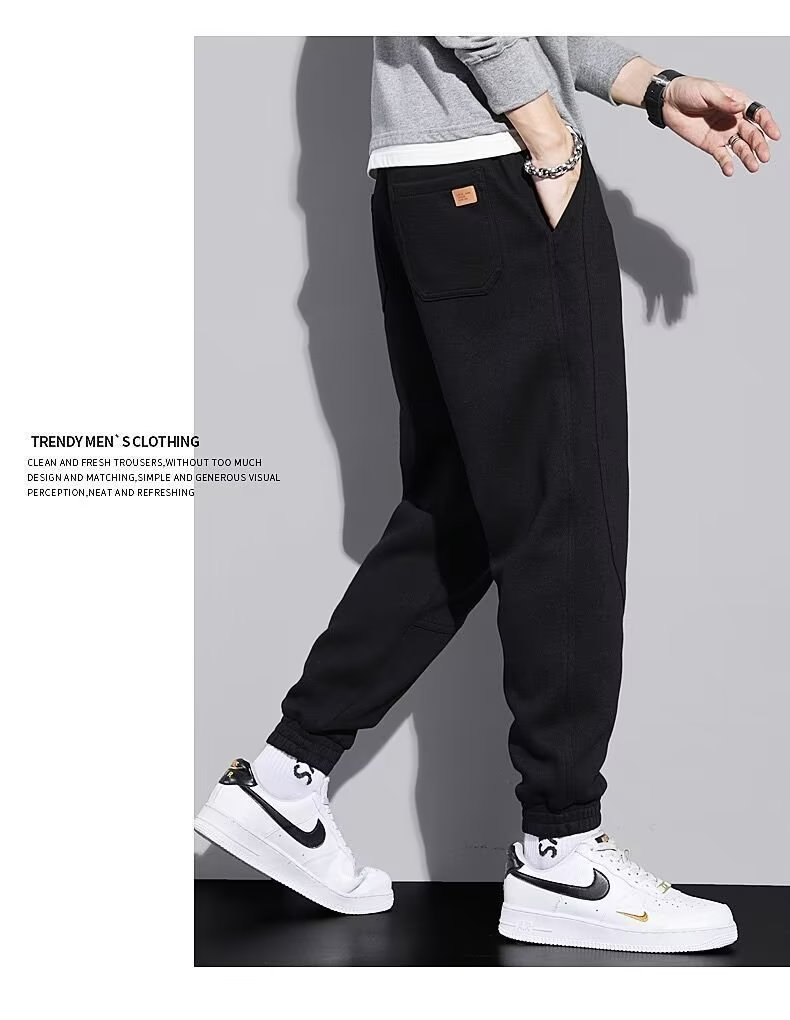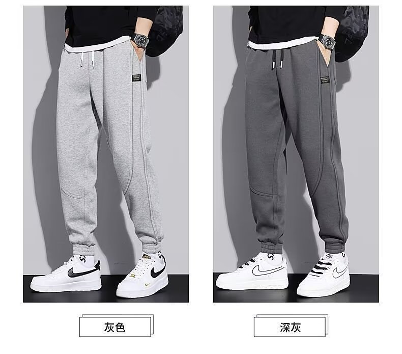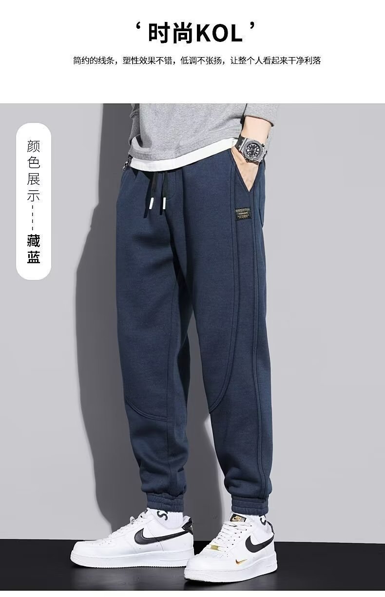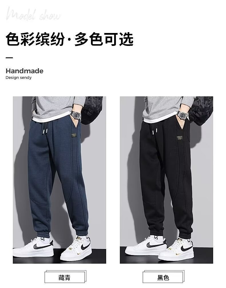 남성 기모 바지 단색 발가락 캐주얼 바지 봄과 가을 새로운 편안한 스티칭 스포츠 바지 바지