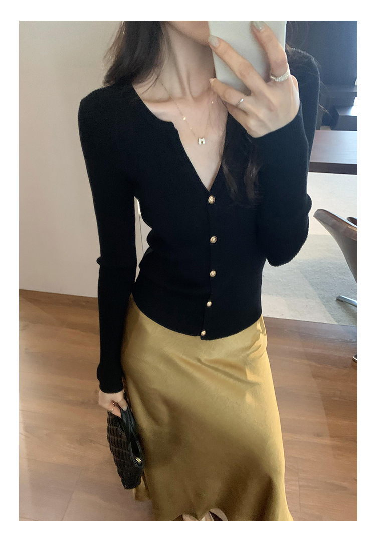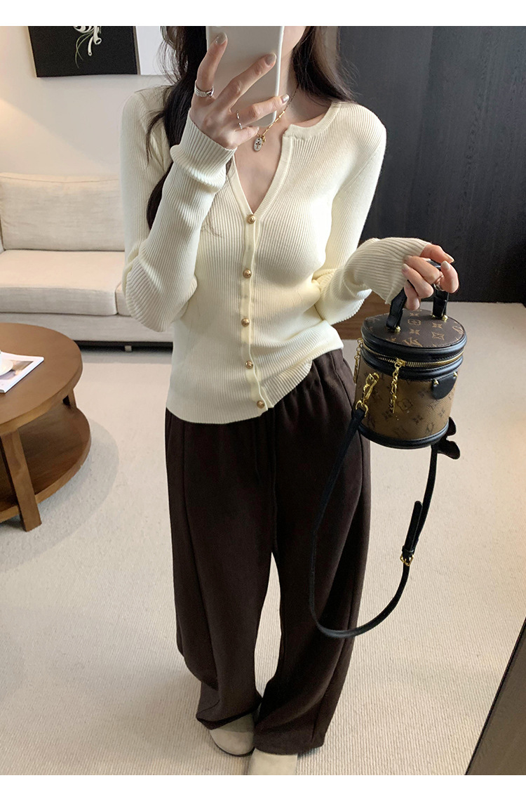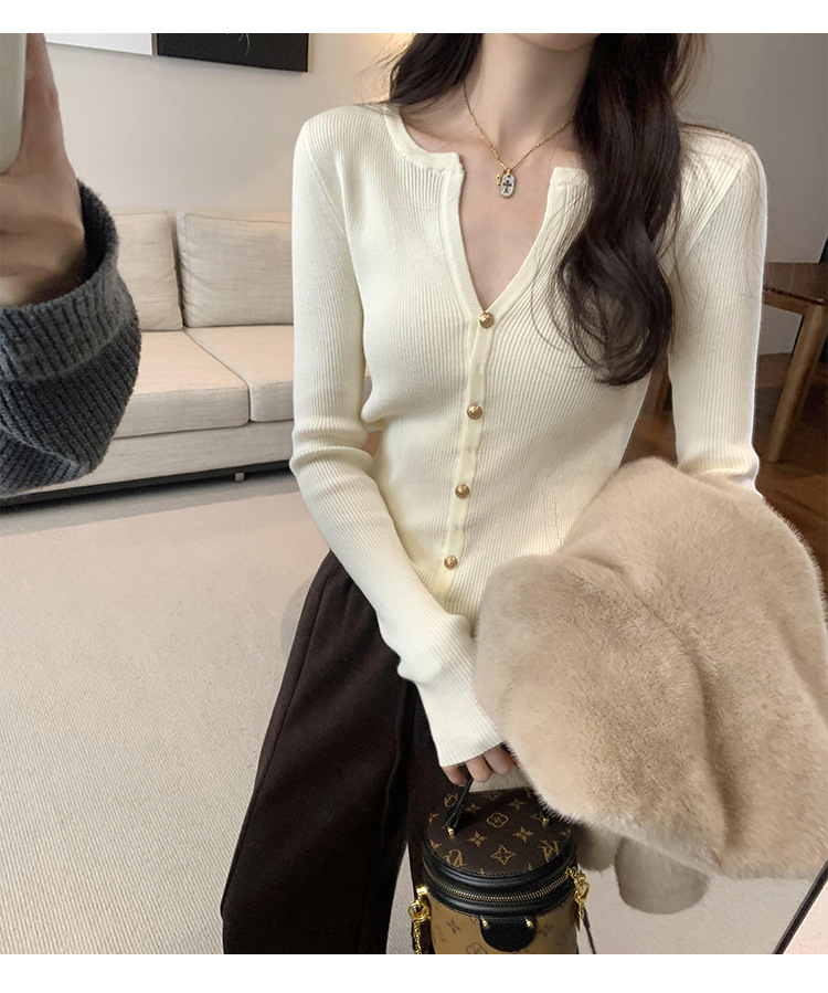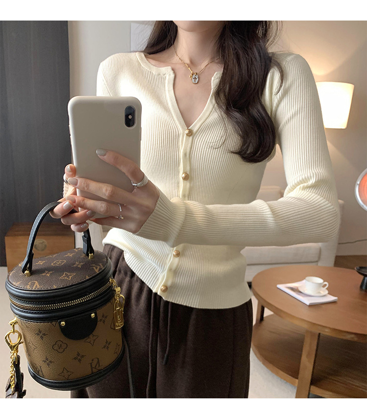 한국 스타일 화이트 내베이스 스웨터 V 넥 스파이스 걸스 니트 카디건 여성 가을 겨울 새로운 슬림 핏 스타일리스트 탑