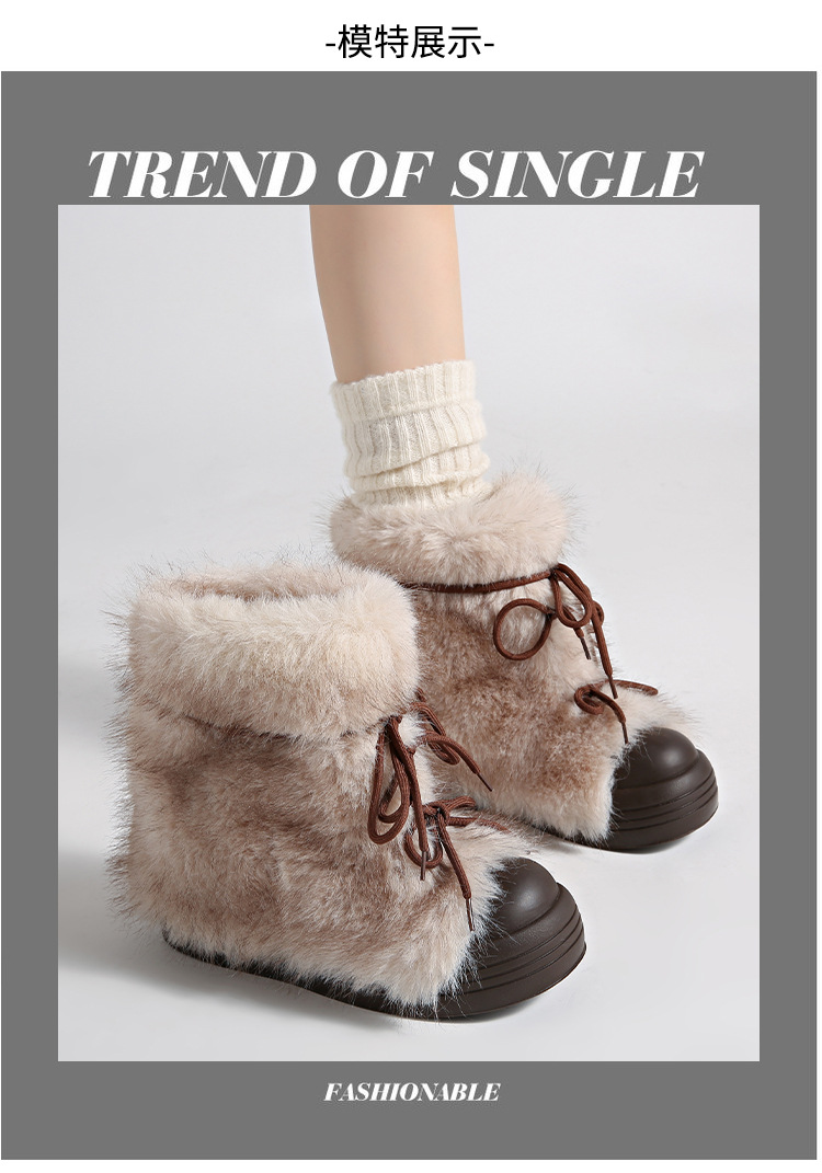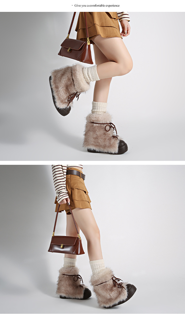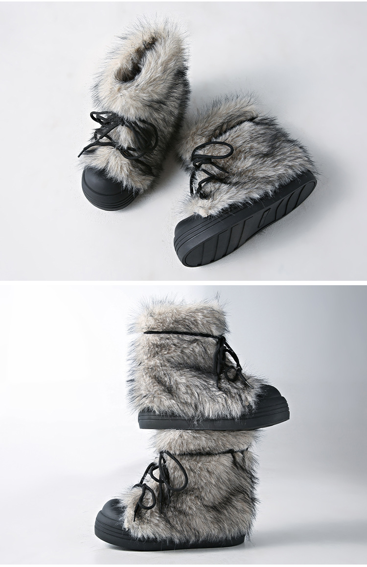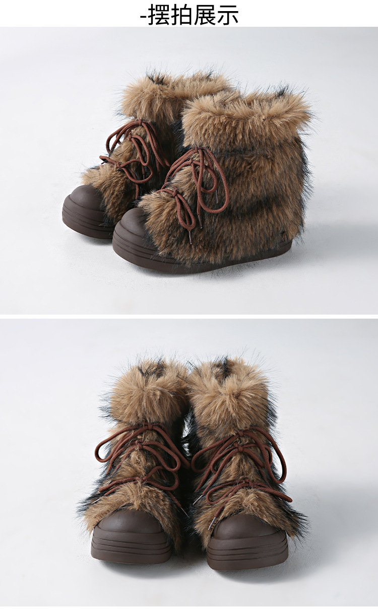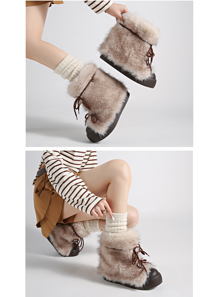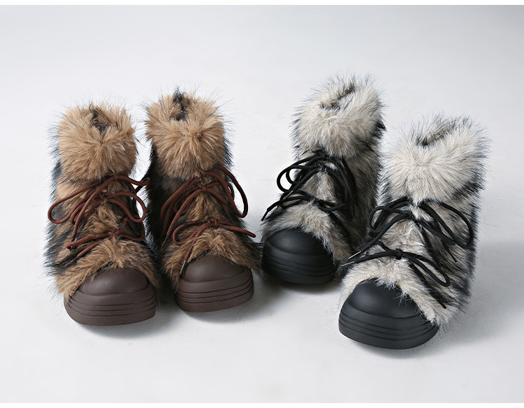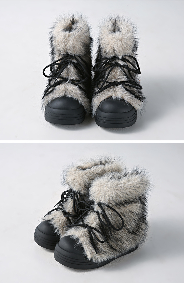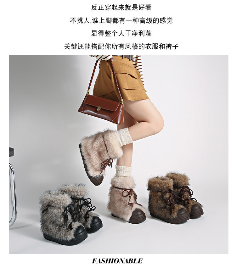 레트로 스타일 다용도 퍼 부츠 여성용 2025 겨울 신상 따뜻하고 방한성 좋은 패셔너블한 두꺼운 밑창 스노우 부츠 여성용