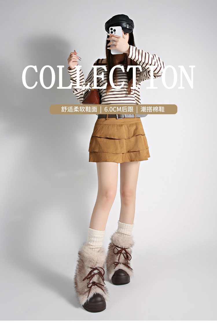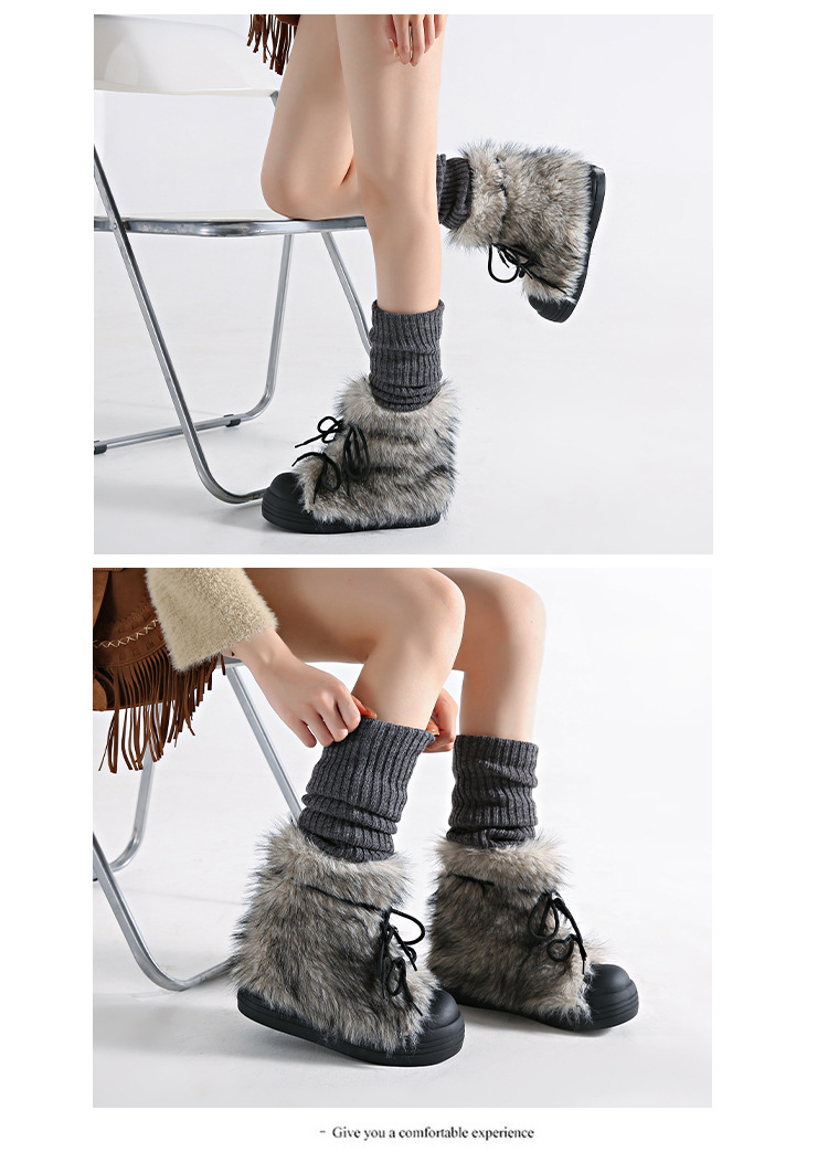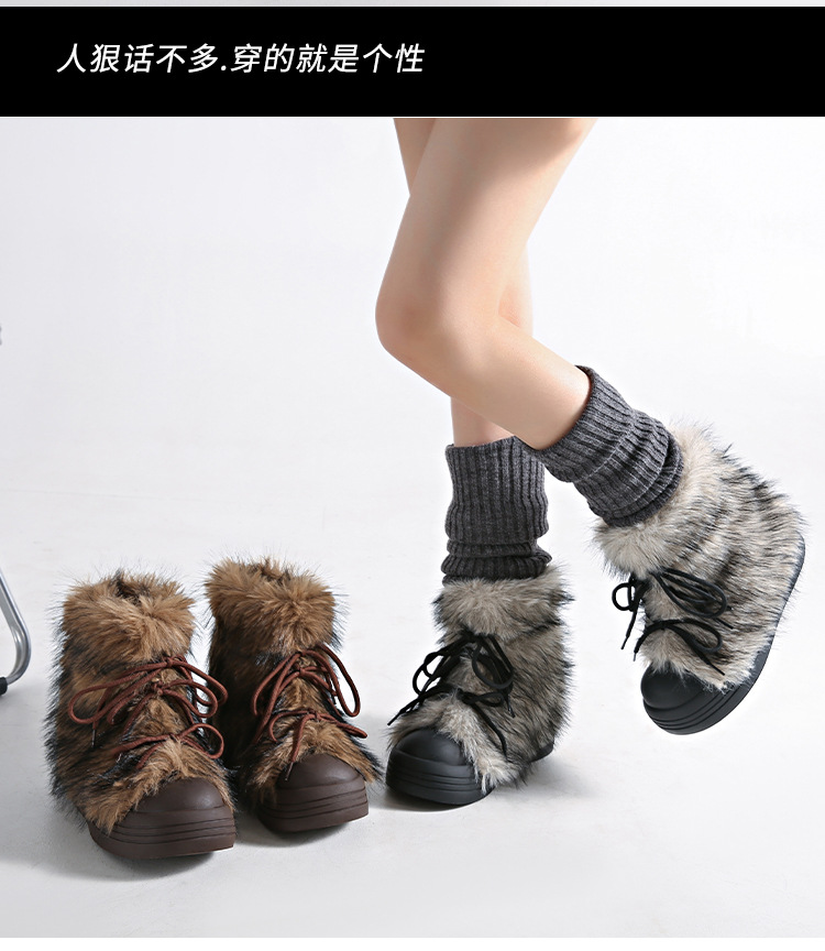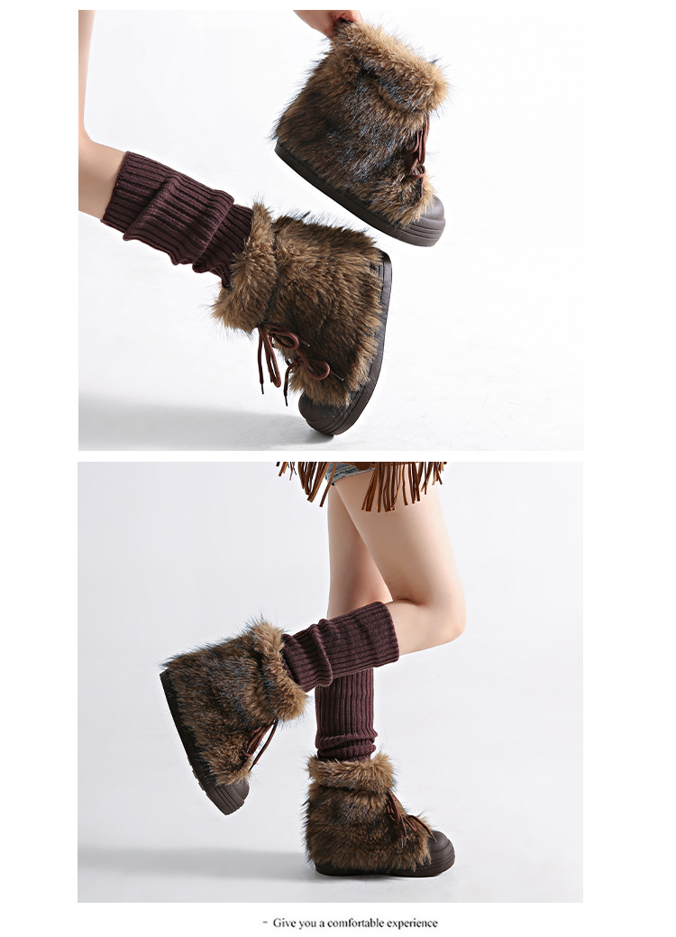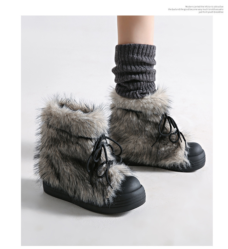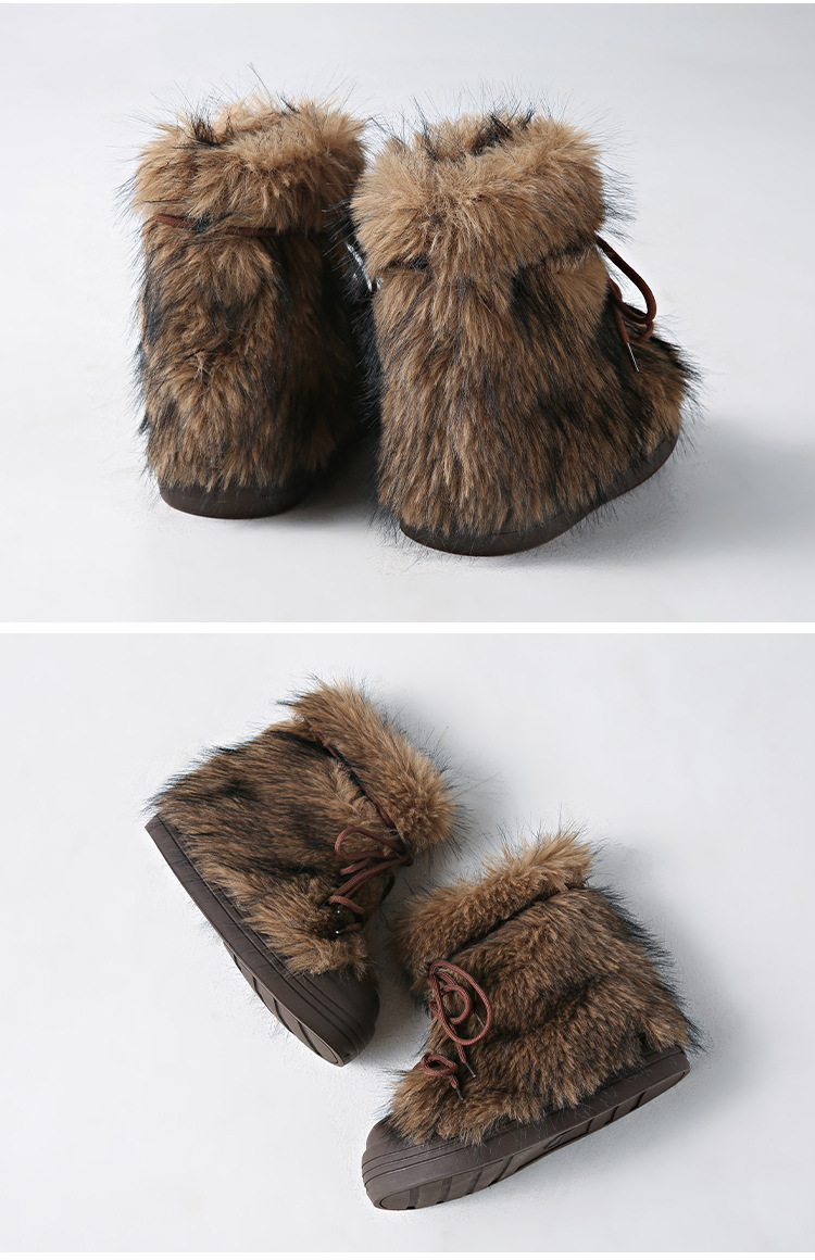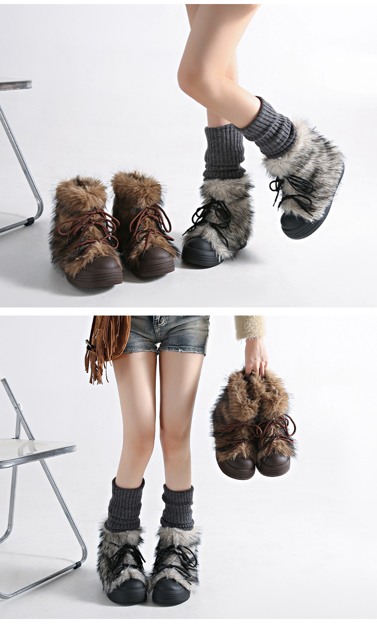 레트로 스타일 다용도 퍼 부츠 여성용 2025 겨울 신상 따뜻하고 방한성 좋은 패셔너블한 두꺼운 밑창 스노우 부츠 여성용