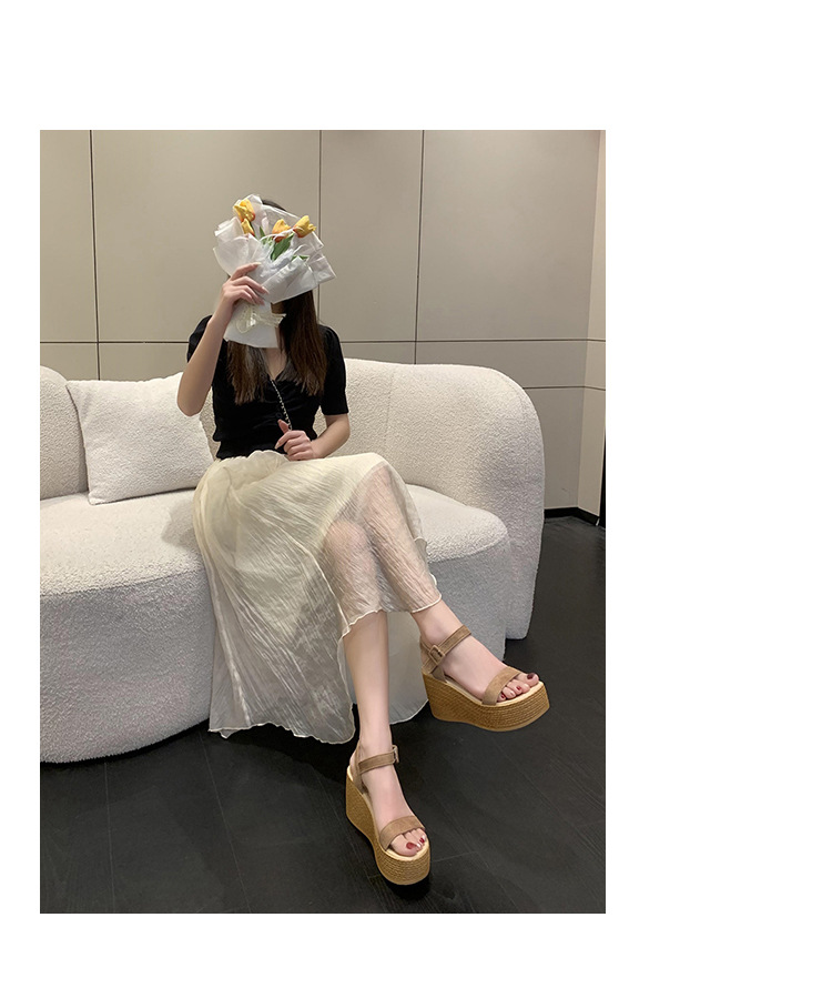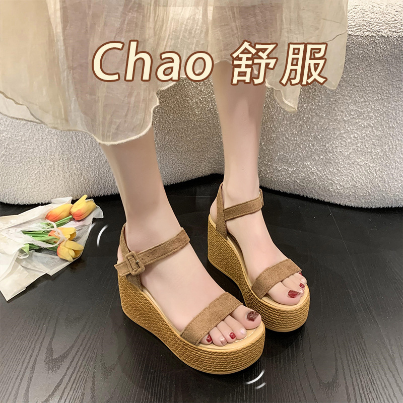 대외 무역 플러스 사이즈 로마 신발 두꺼운 바닥 오픈 발가락 여성 신발 웨지 힐 2025 여름 새 샌들
