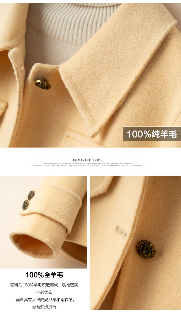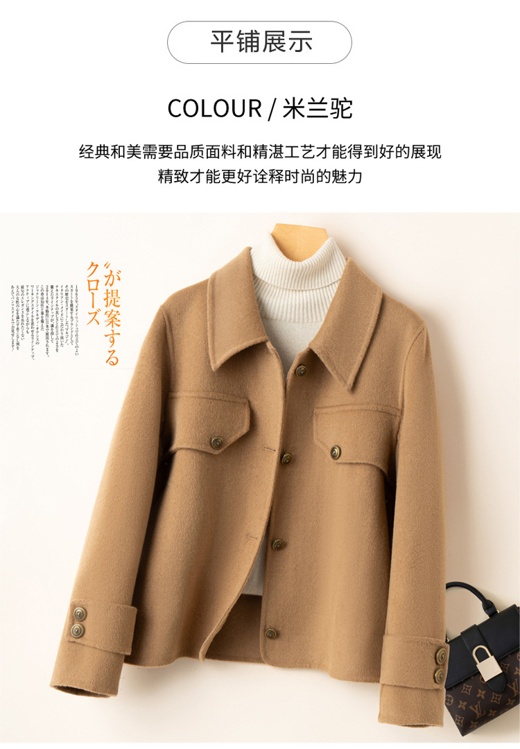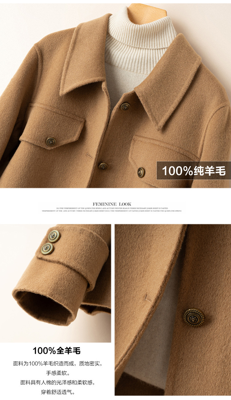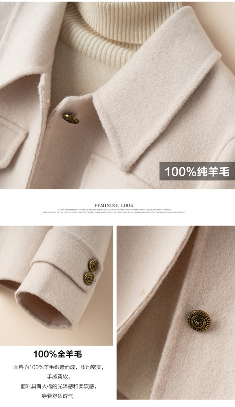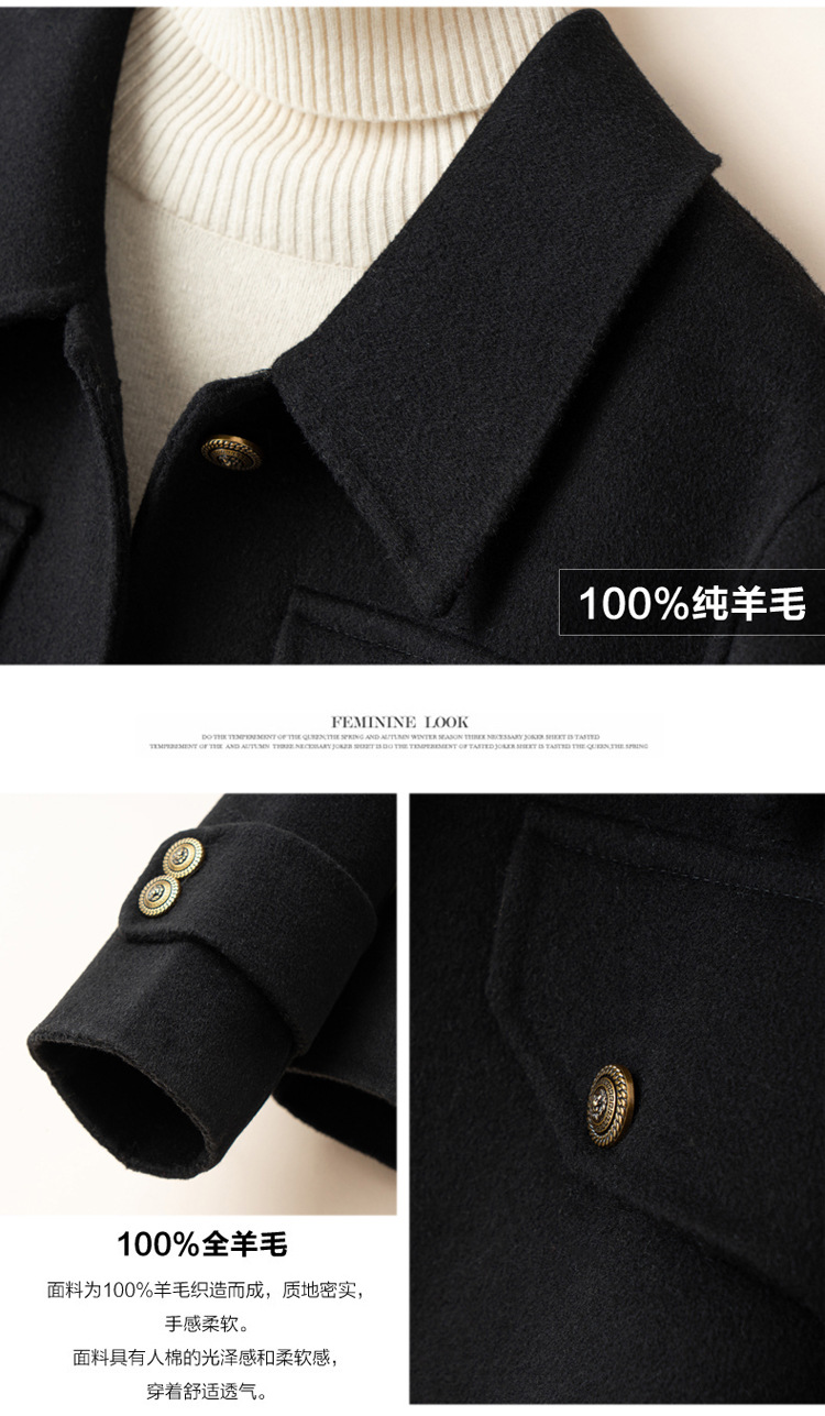 2024 가을 겨울 새 울 코트 양면 캐시미어 코트 여성용 작은 인형 칼라 울 세트 외부