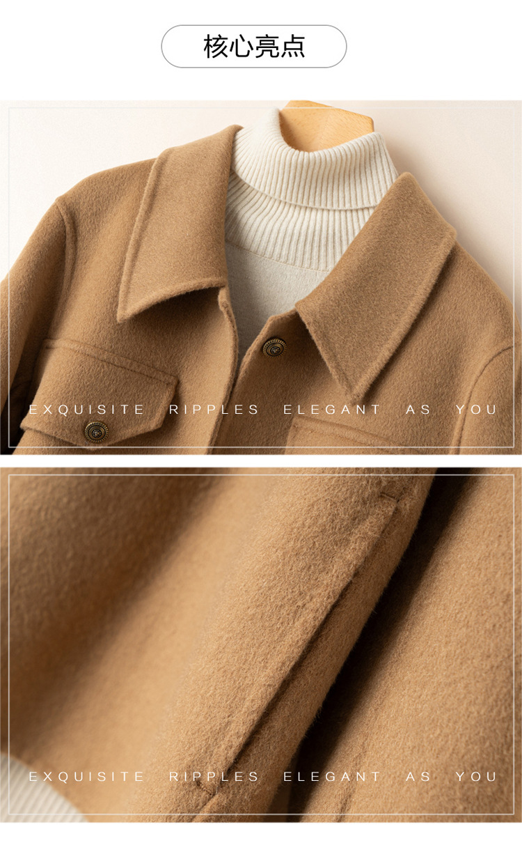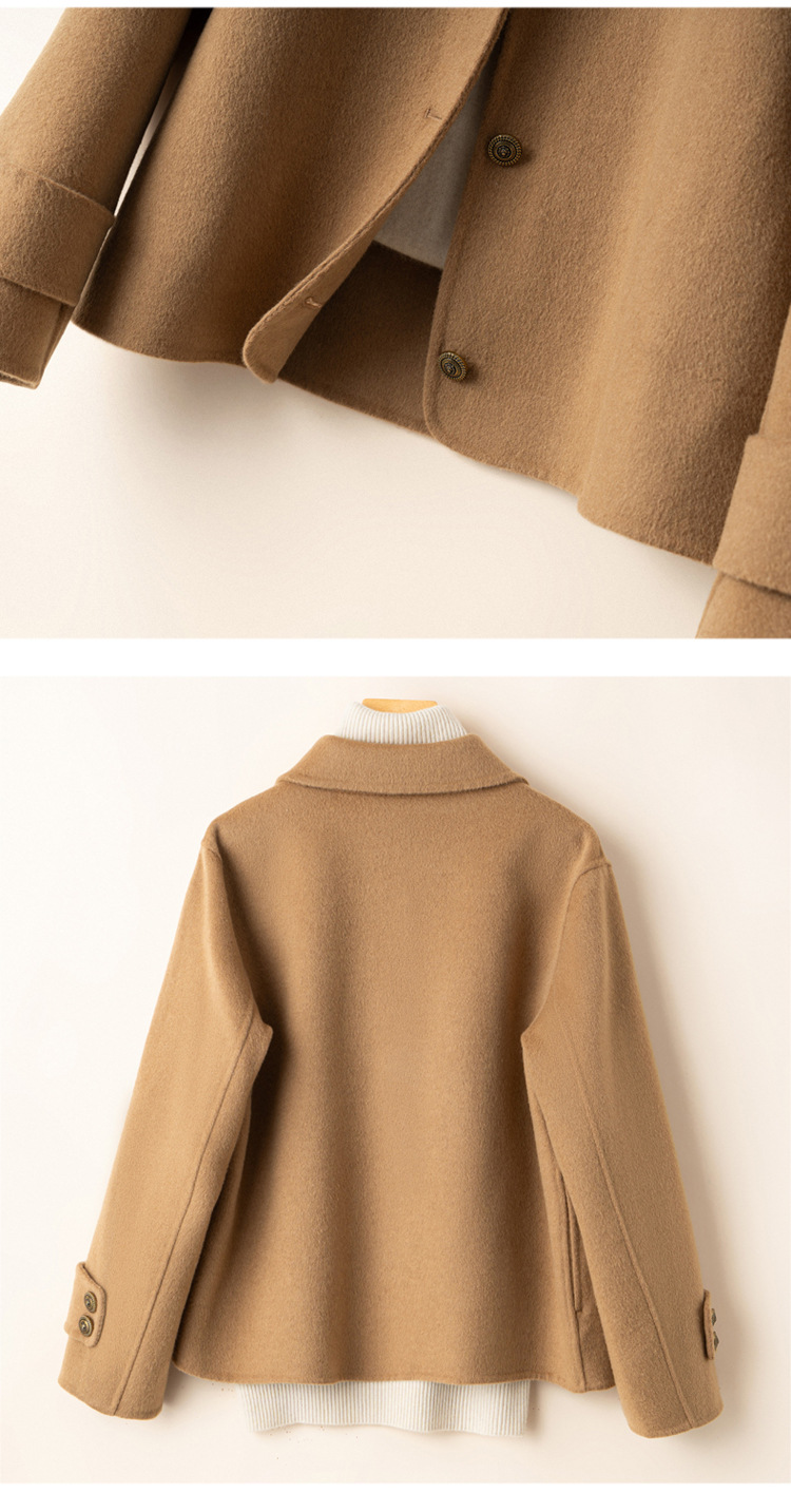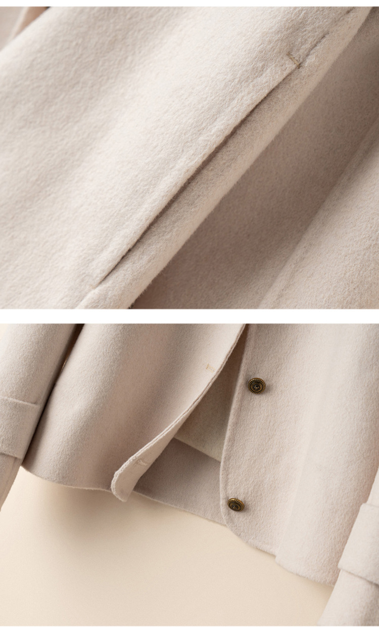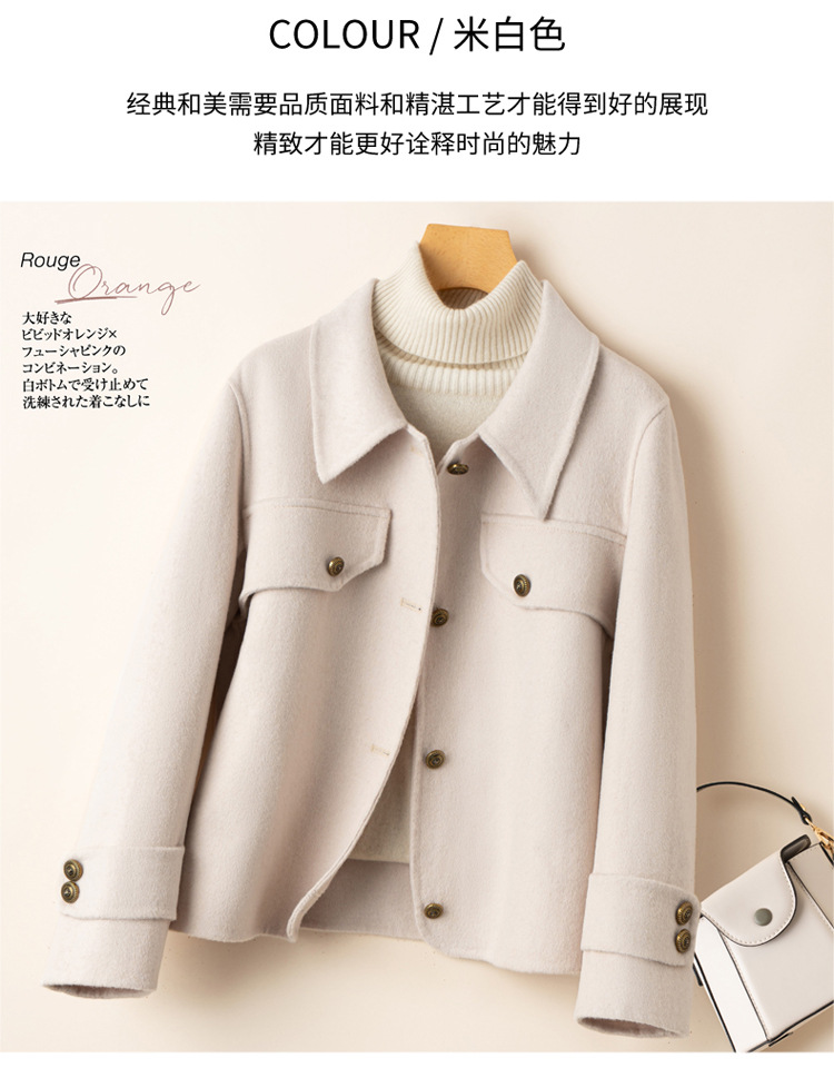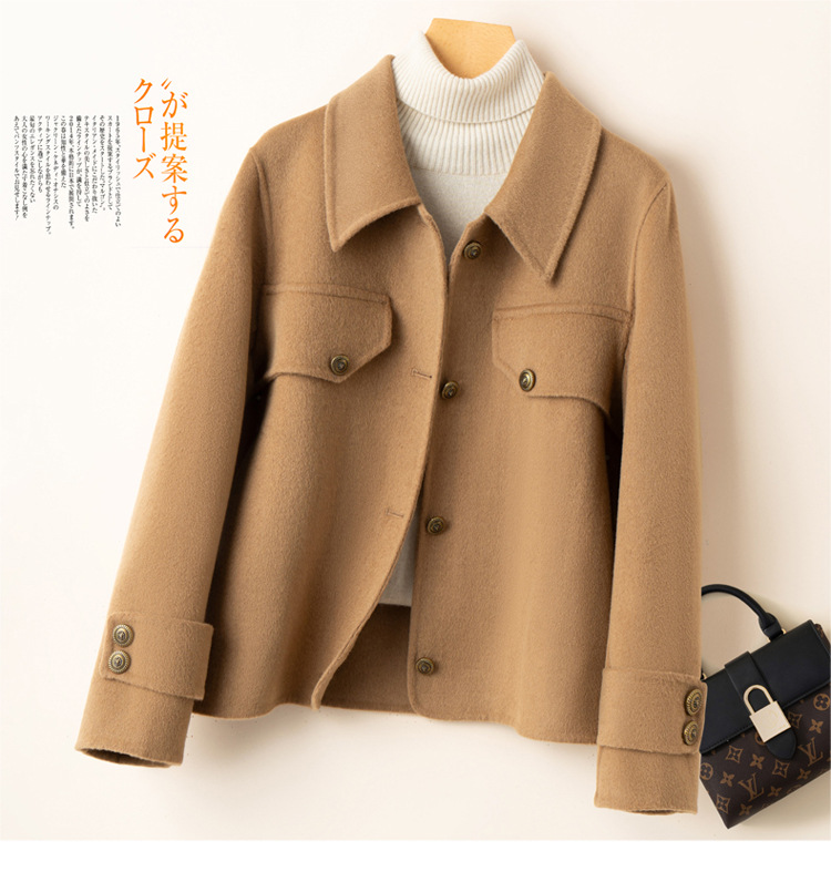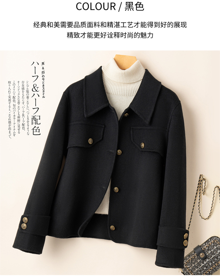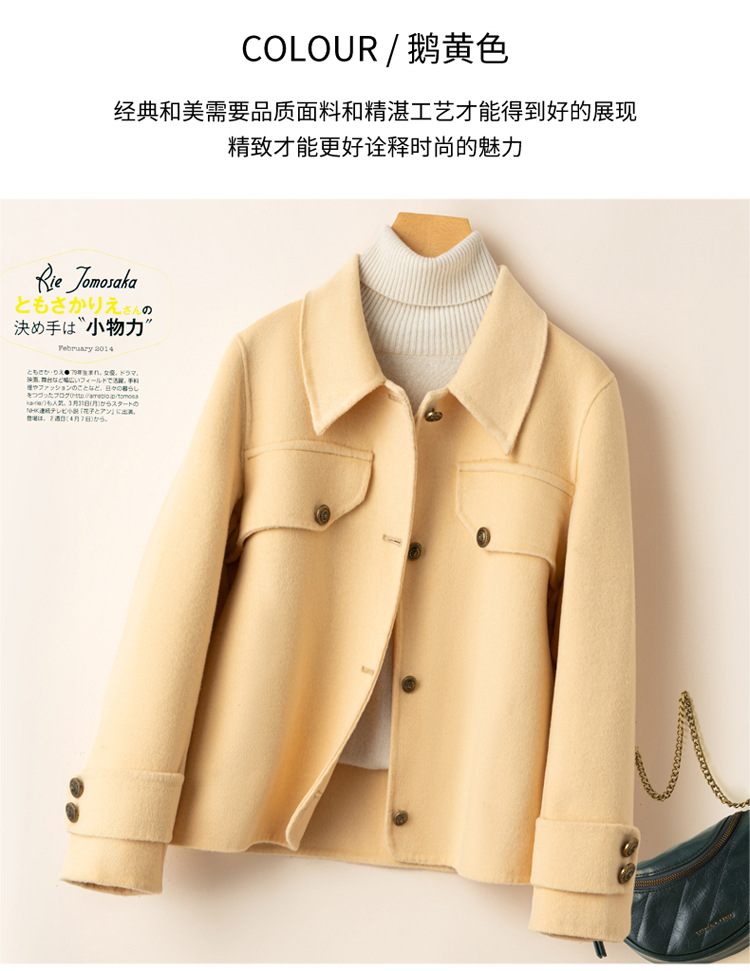 2024 가을 겨울 새 울 코트 양면 캐시미어 코트 여성용 작은 인형 칼라 울 세트 외부
