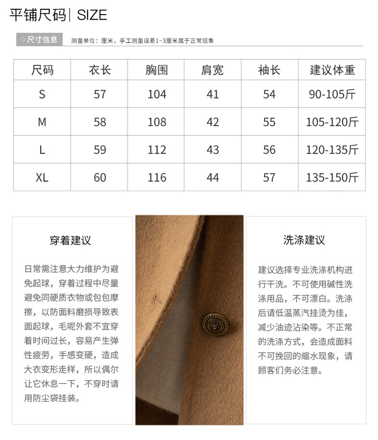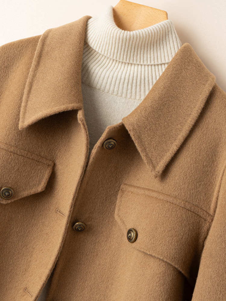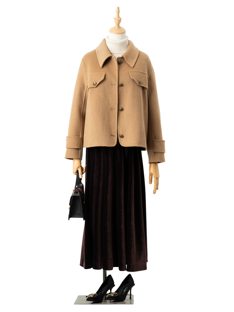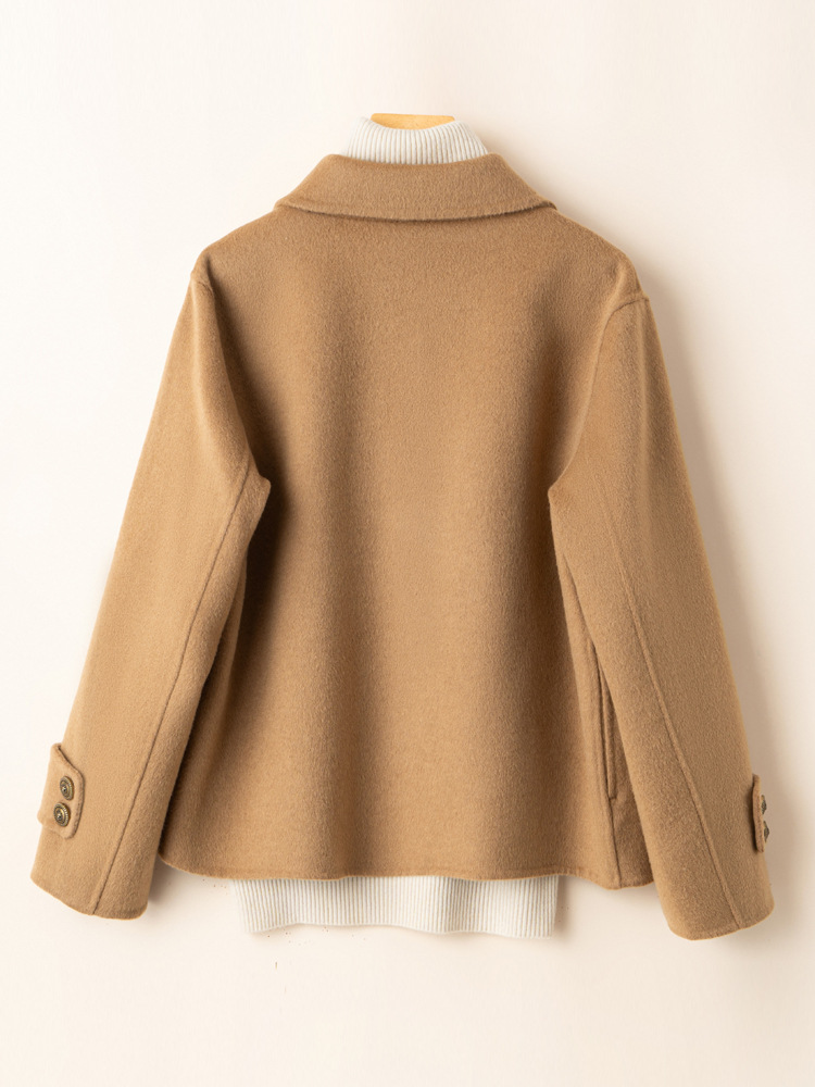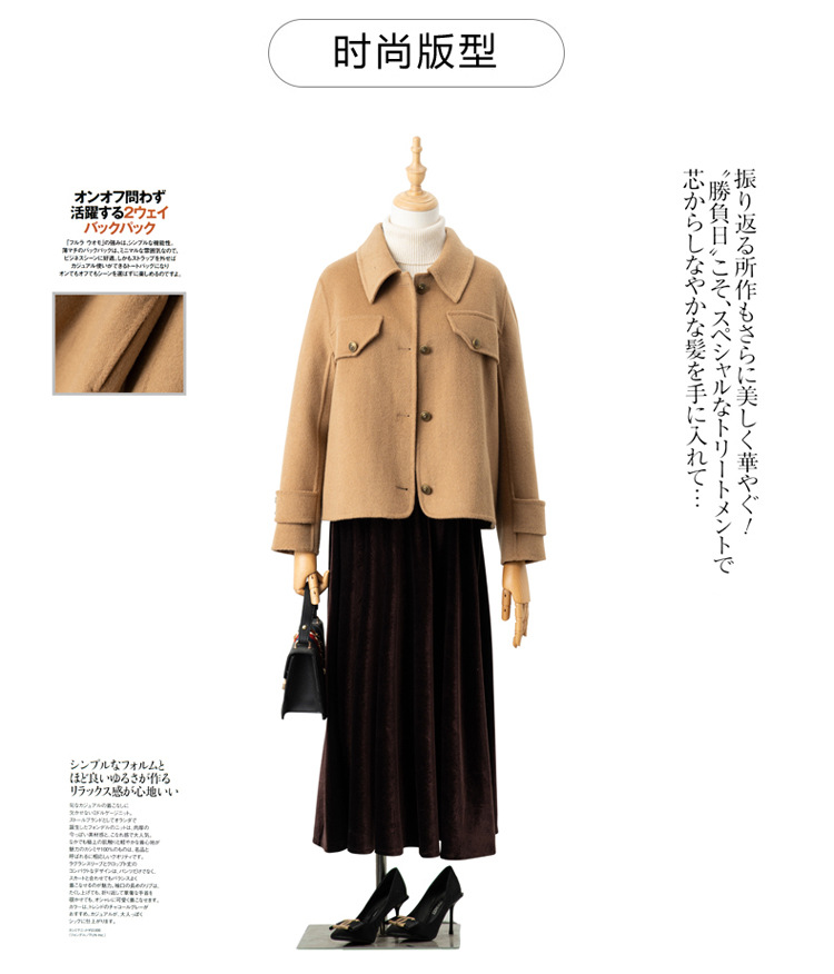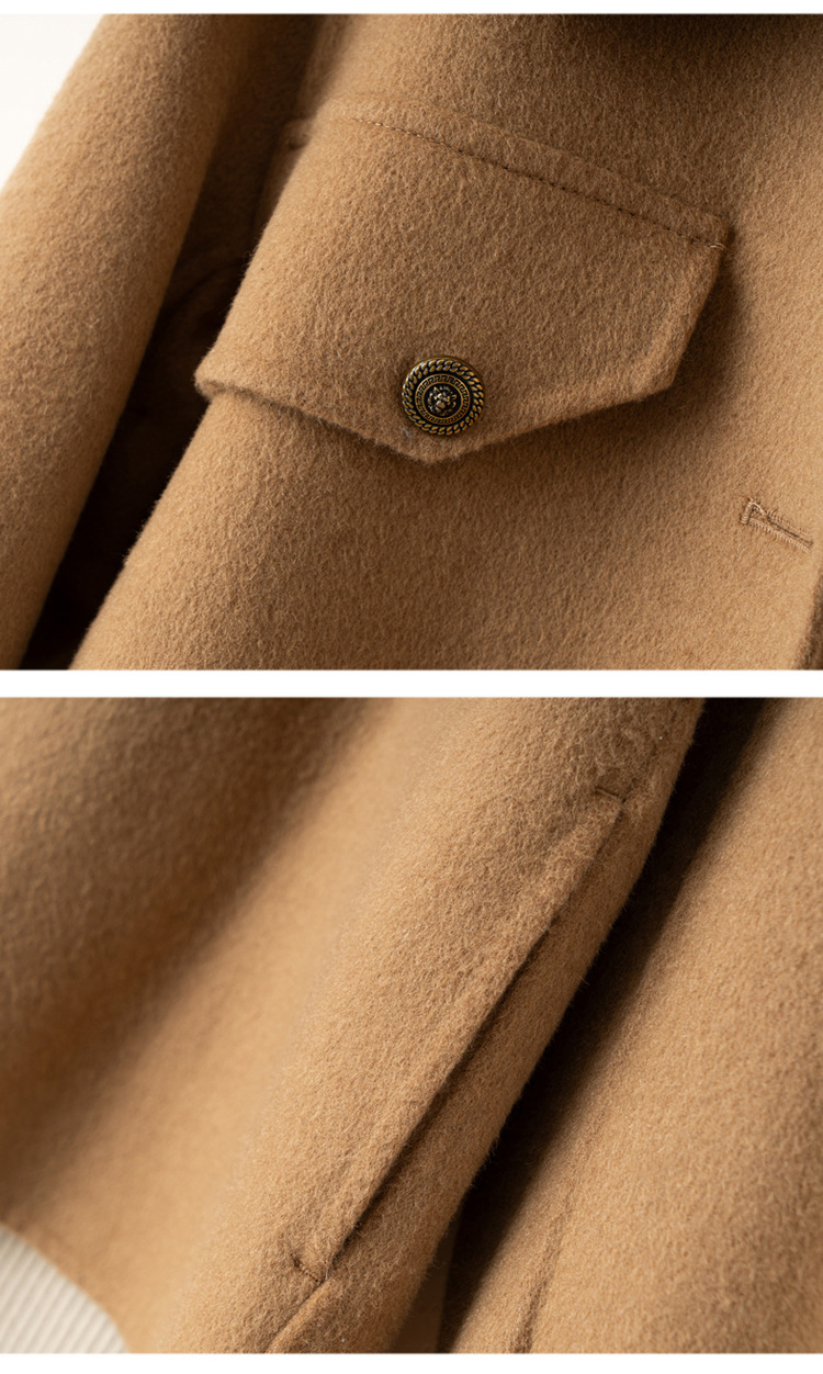 2024 가을 겨울 새 울 코트 양면 캐시미어 코트 여성용 작은 인형 칼라 울 세트 외부