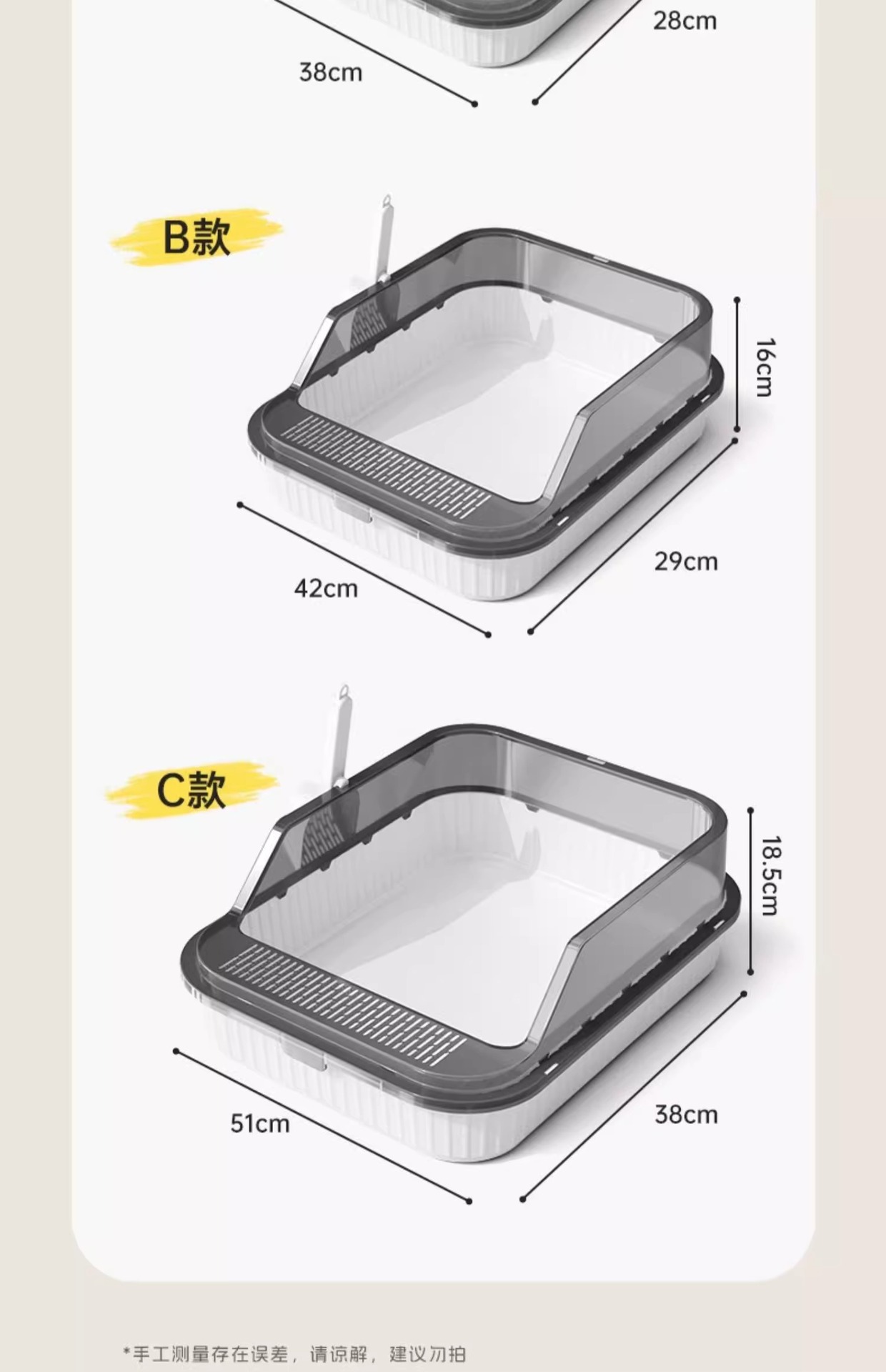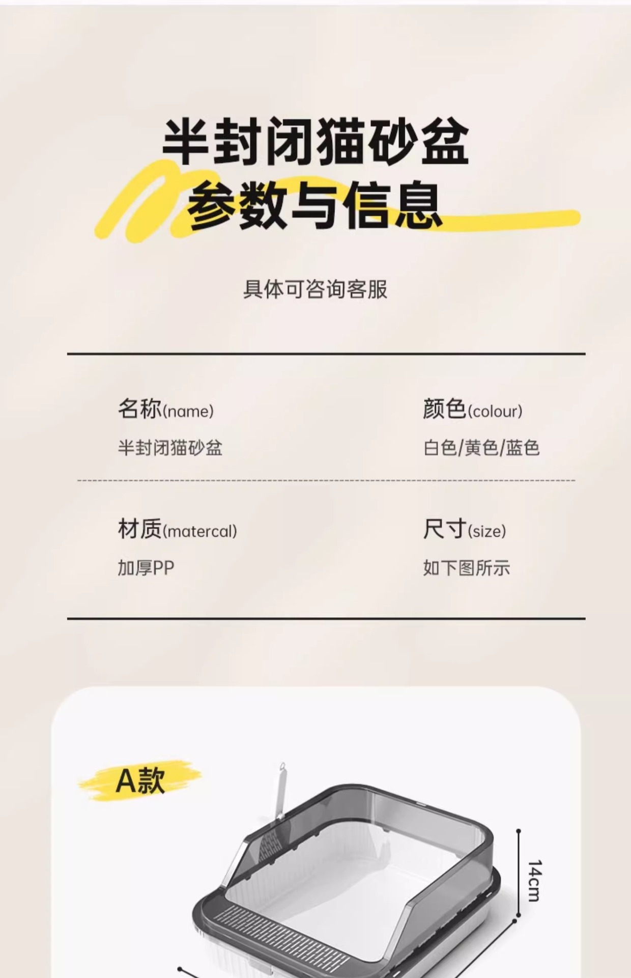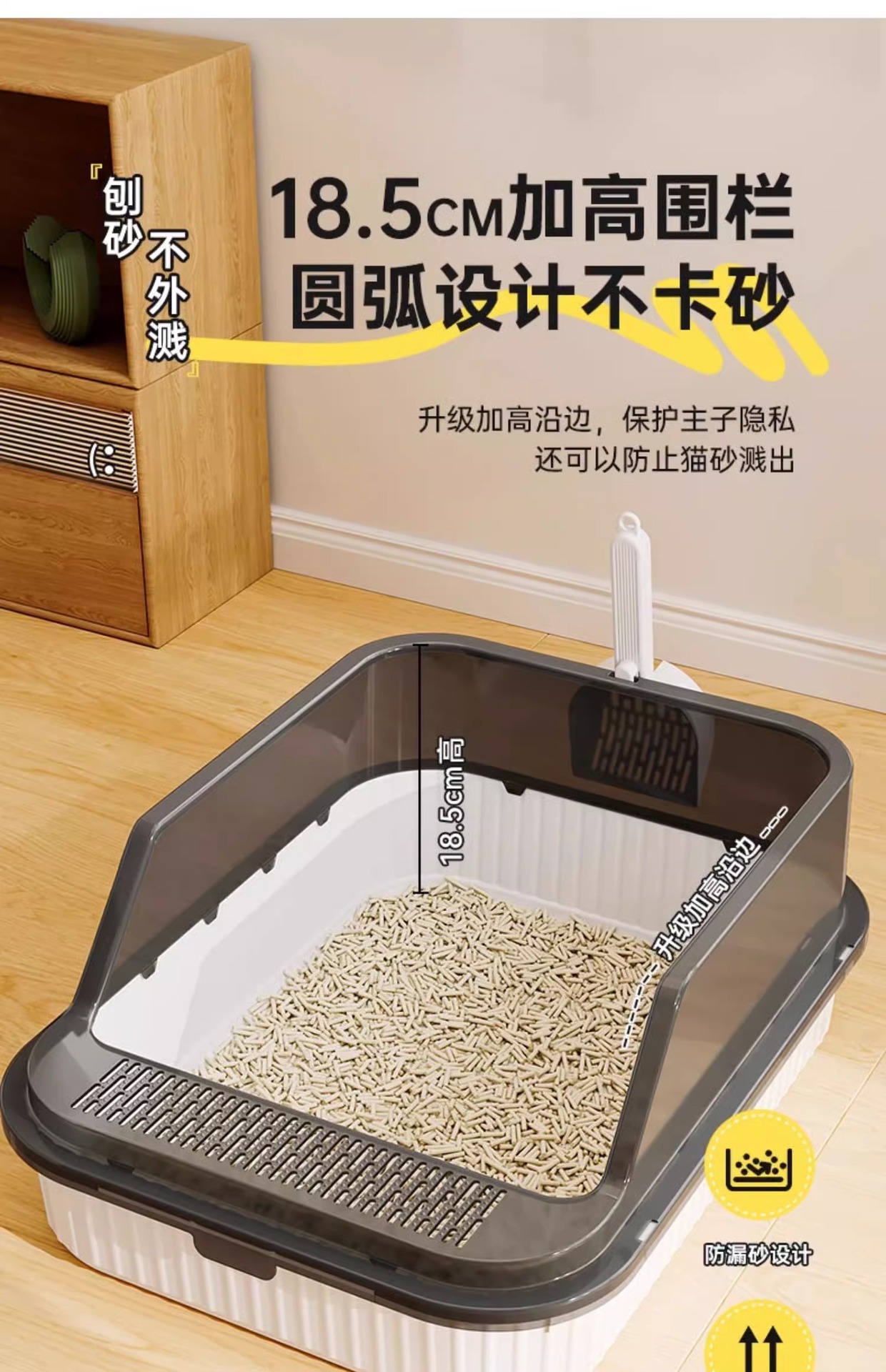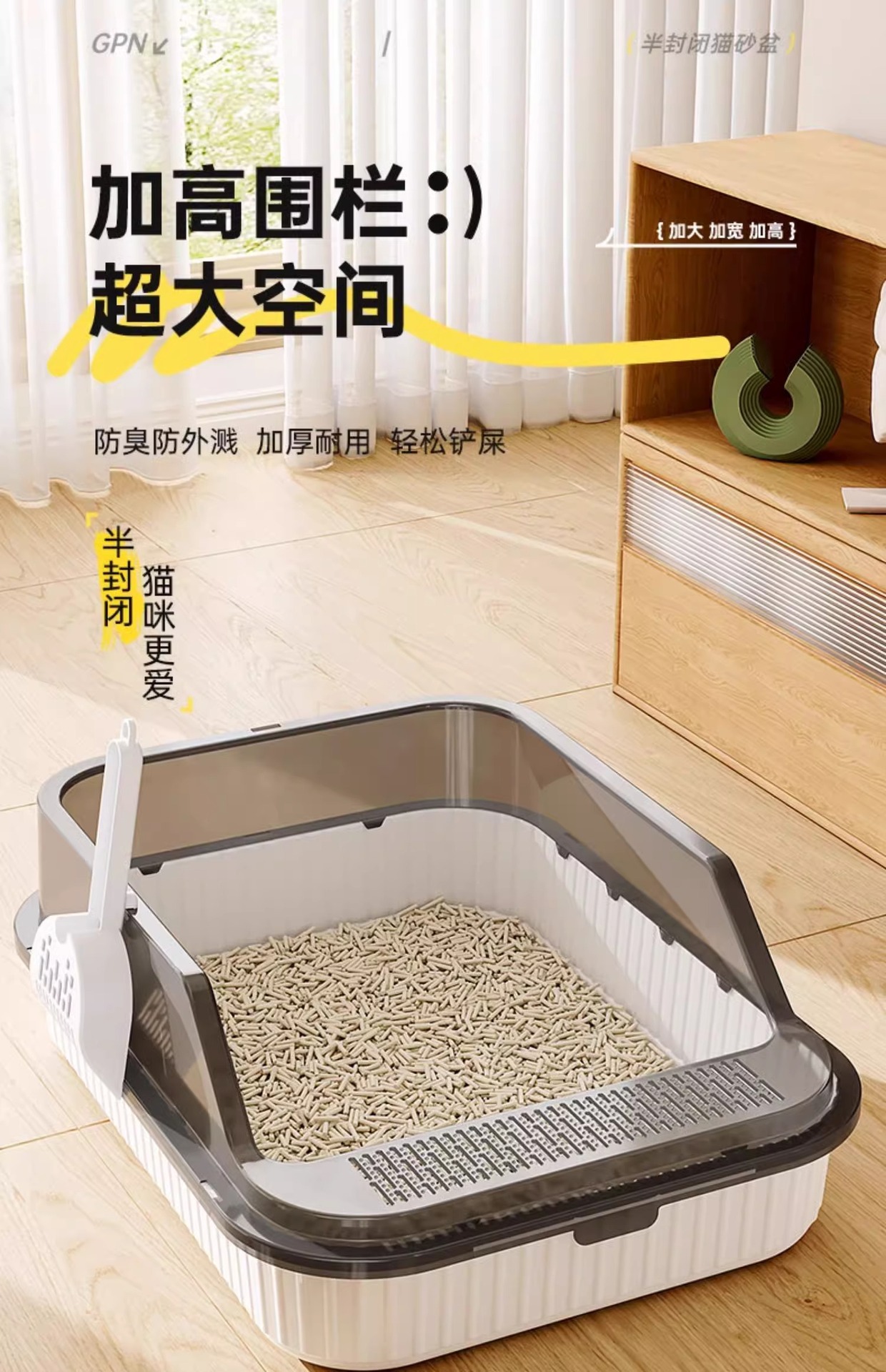 반 폐쇄 된 대형 고양이 쓰레기 분지 안티 스플래시 안티 샌드 두꺼운 고양이 화장실 배달 고양이 쓰레기 삽 고양이 애완 동물 용품