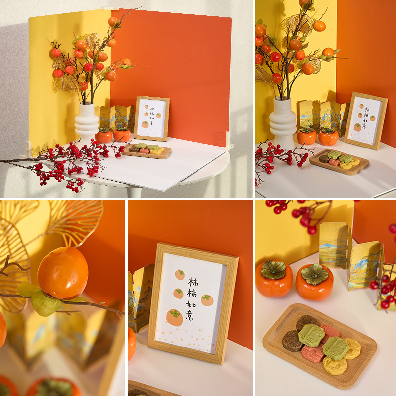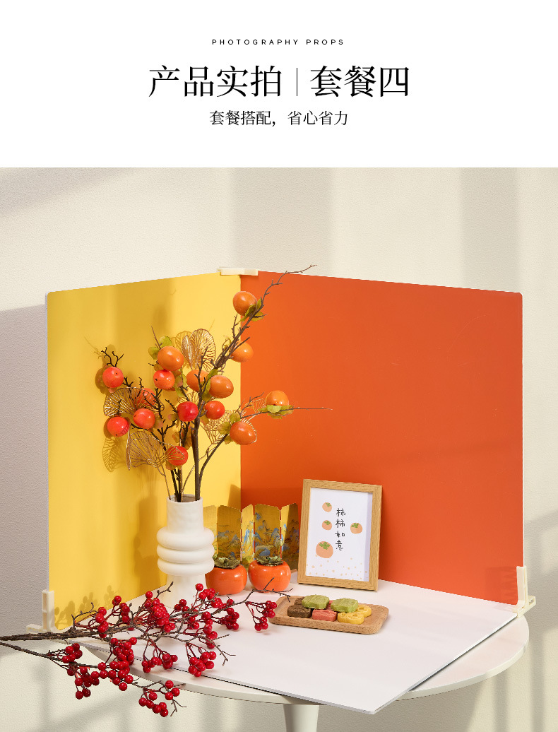 양면 배경판 3개 - 주홍색/마노 노란색*2+차가운 흰색/따뜻한 흰색 60*60cm