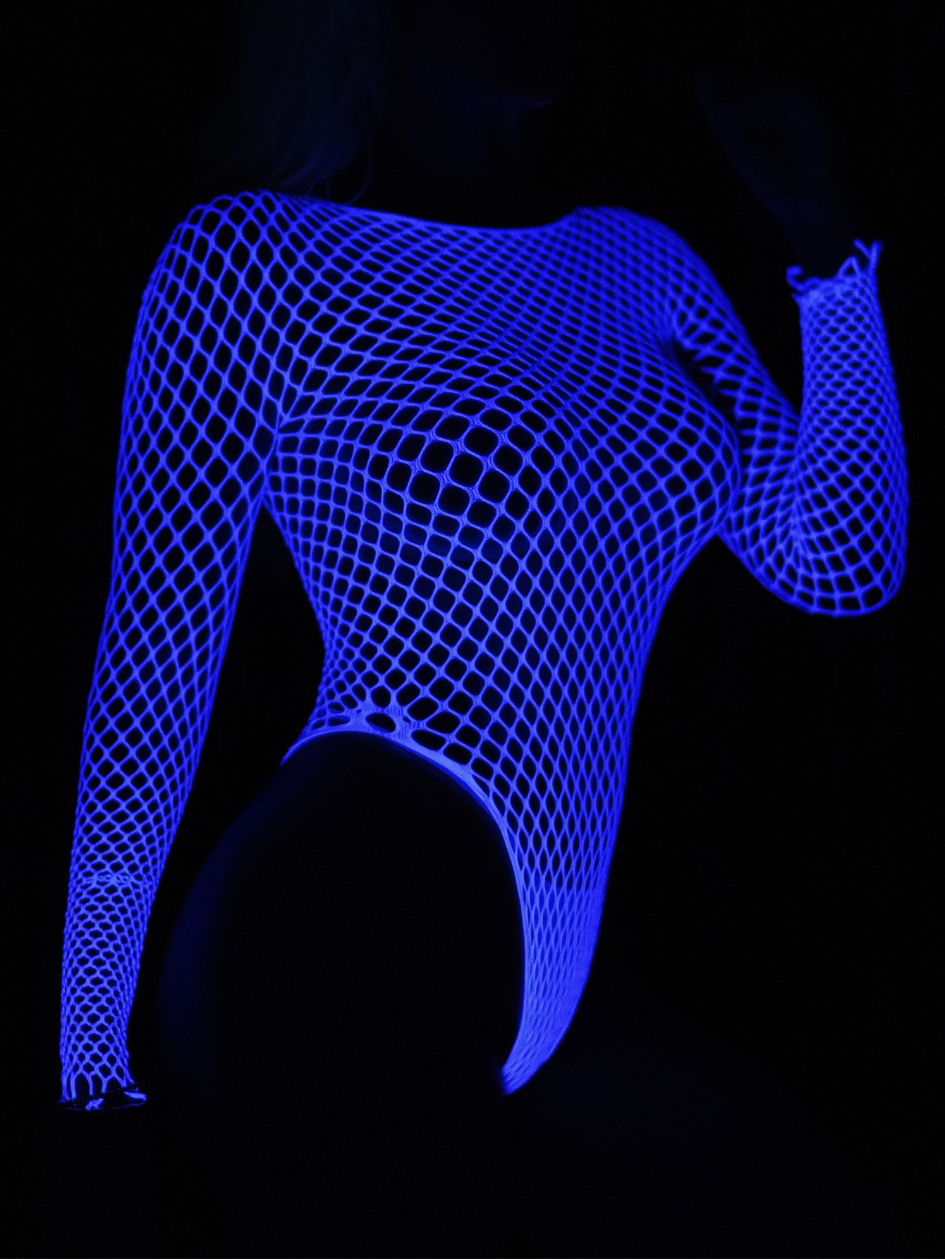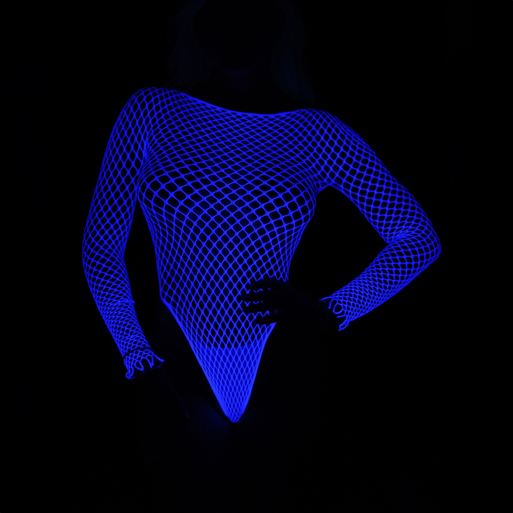 유럽과 미국의 섹시한 속이 빈 빛나는 파란색 비키니 점프 수트 낚시 그물 섹시한 속옷 여성의 순수한 엉덩이 원피스 잠옷