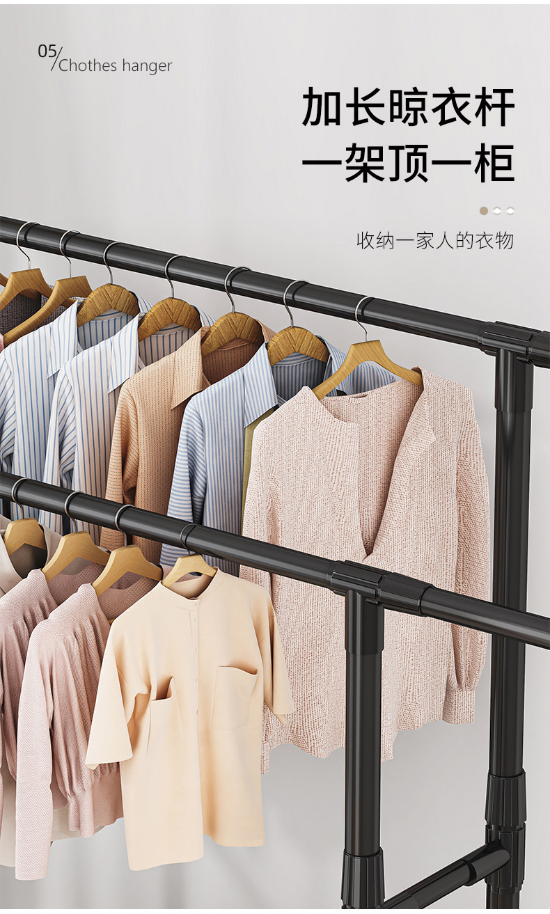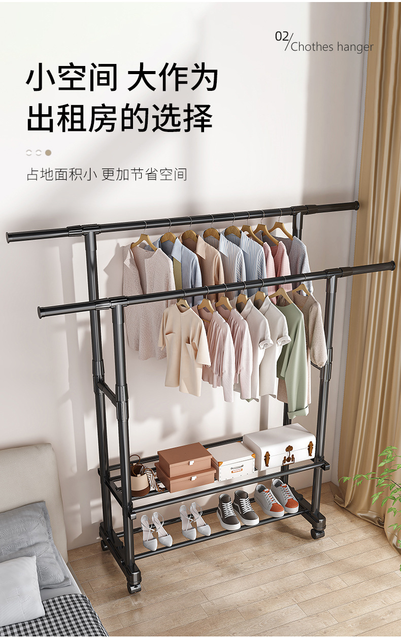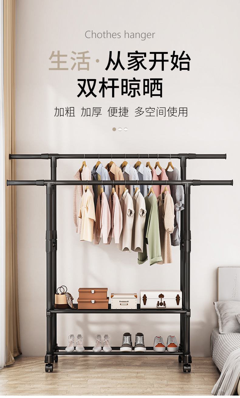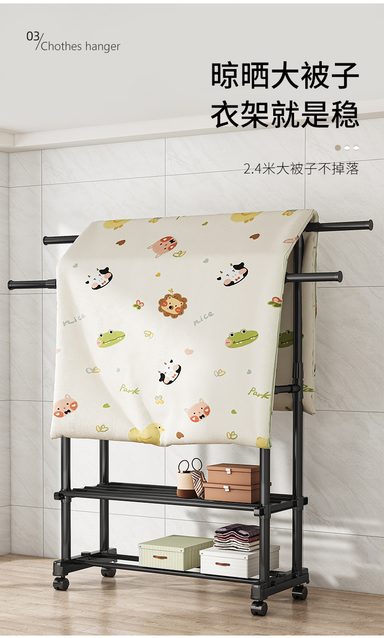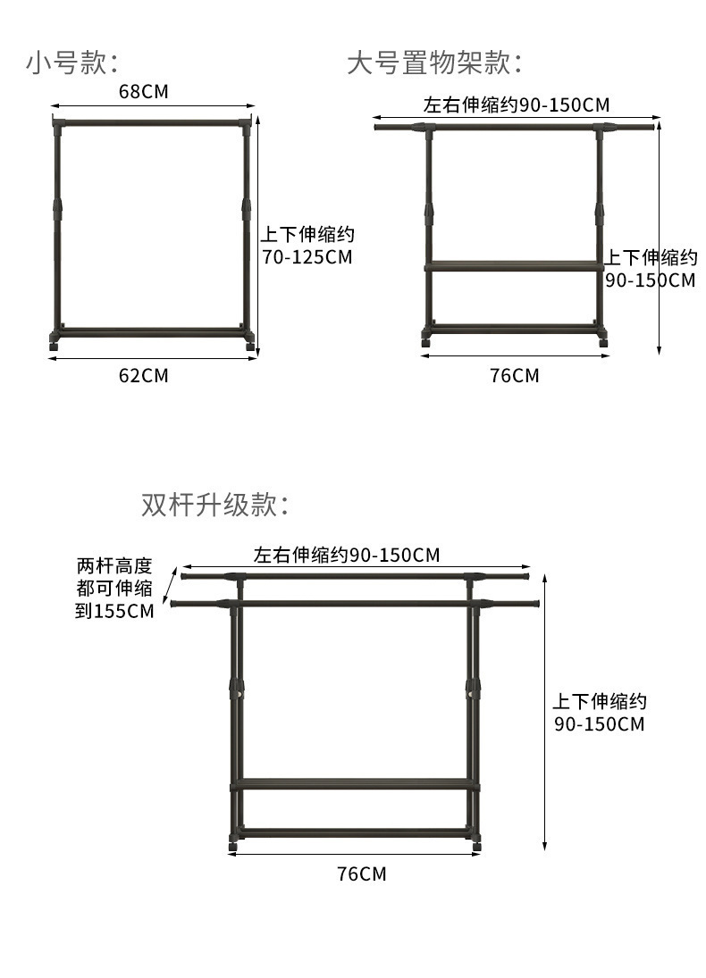 [권장 + 강력한 내하중] 더블폴 업그레이드 모델 + 2단 수납선반