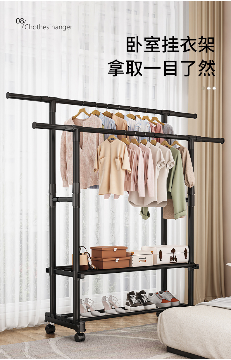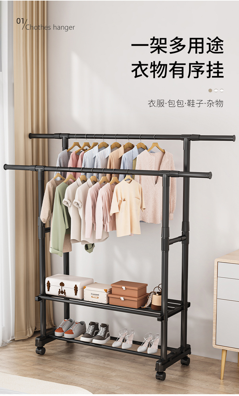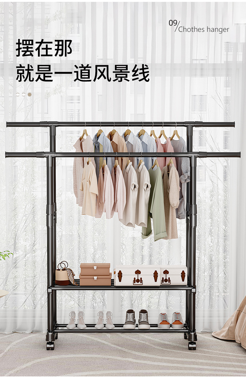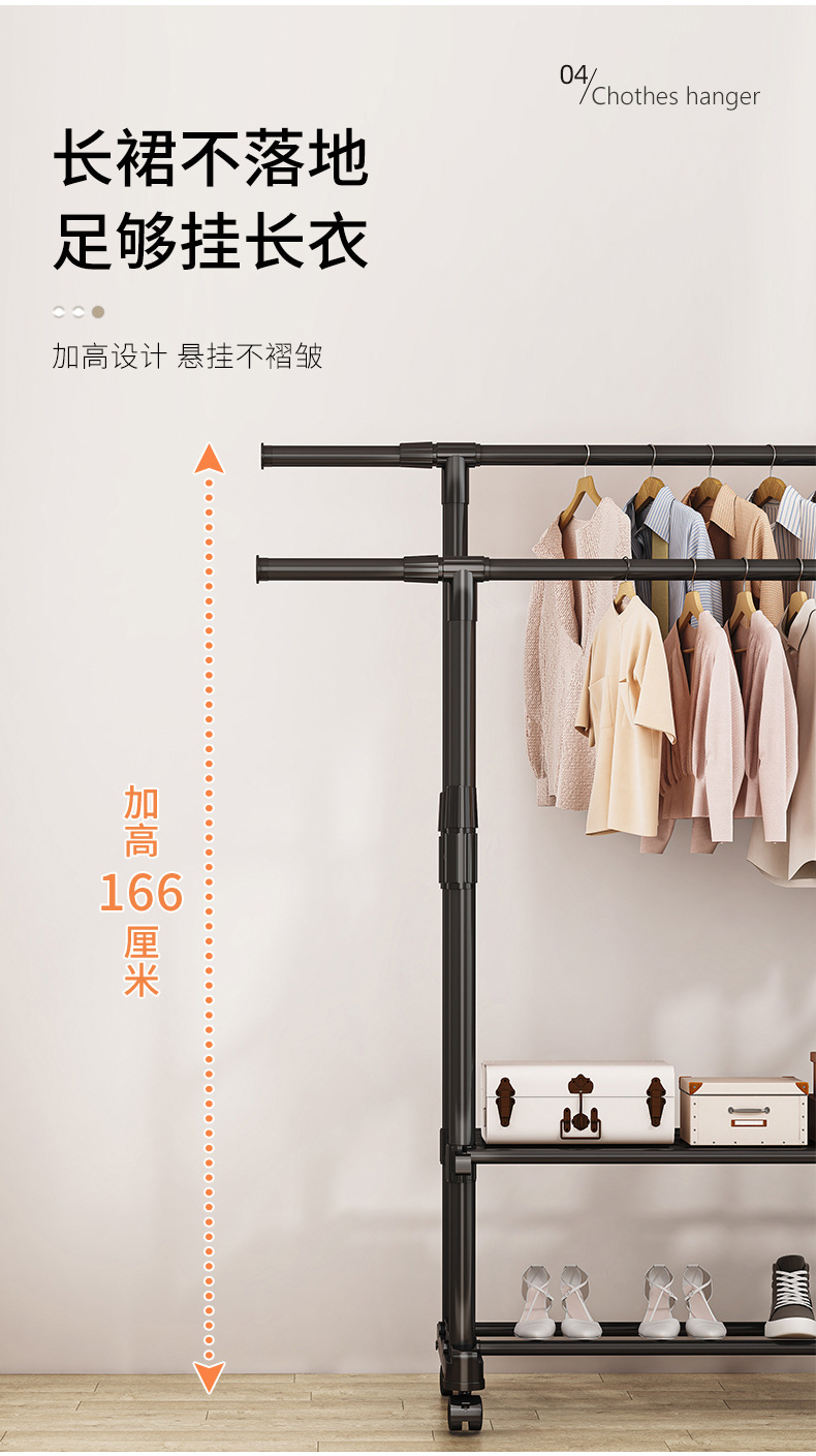 [권장 + 강력한 내하중] 더블폴 업그레이드 모델 + 2단 수납선반