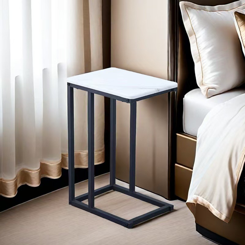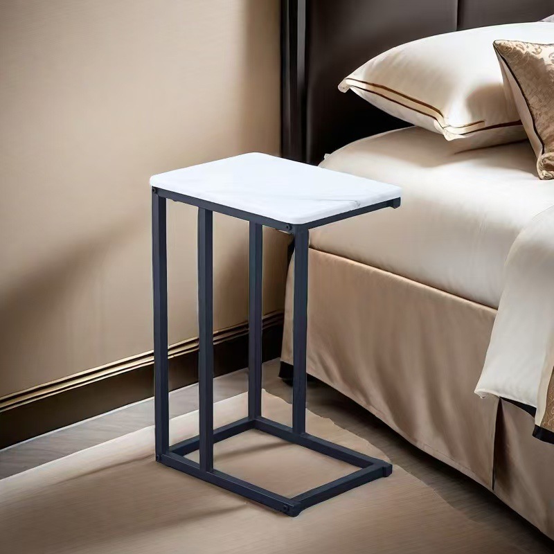 가벼운 고급 하이 엔드 사이드 테이블 이동식 거실 소파 발코니 작은 테이블 금속 C 자형 호두 침대 옆 테이블