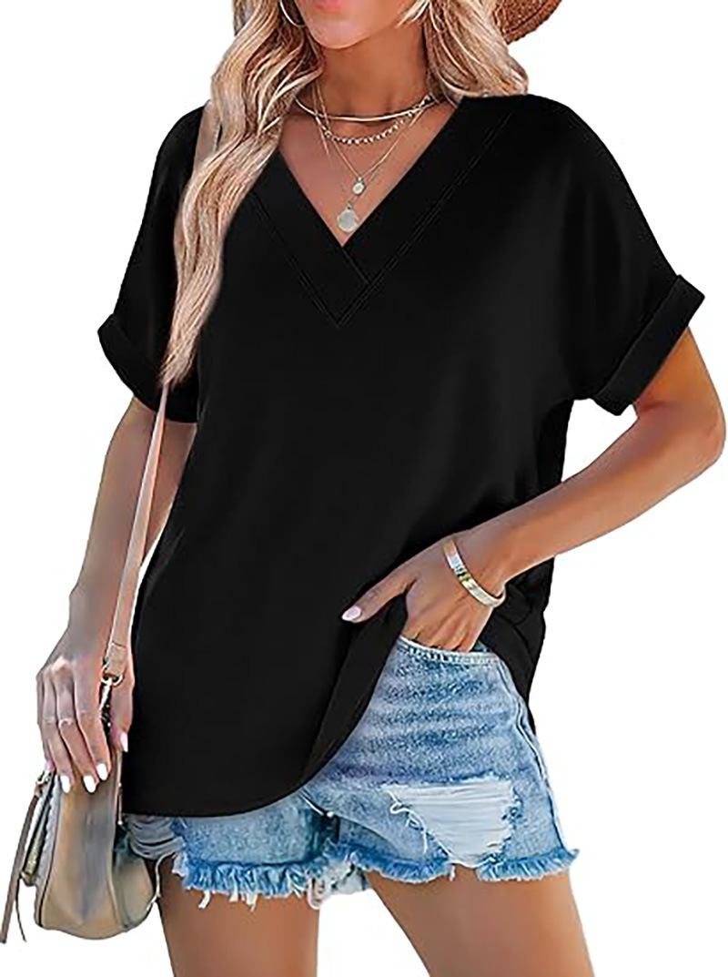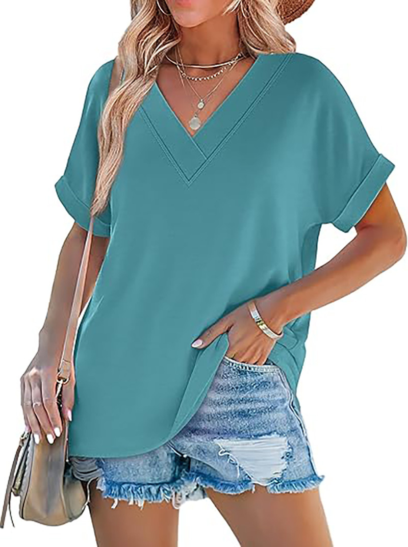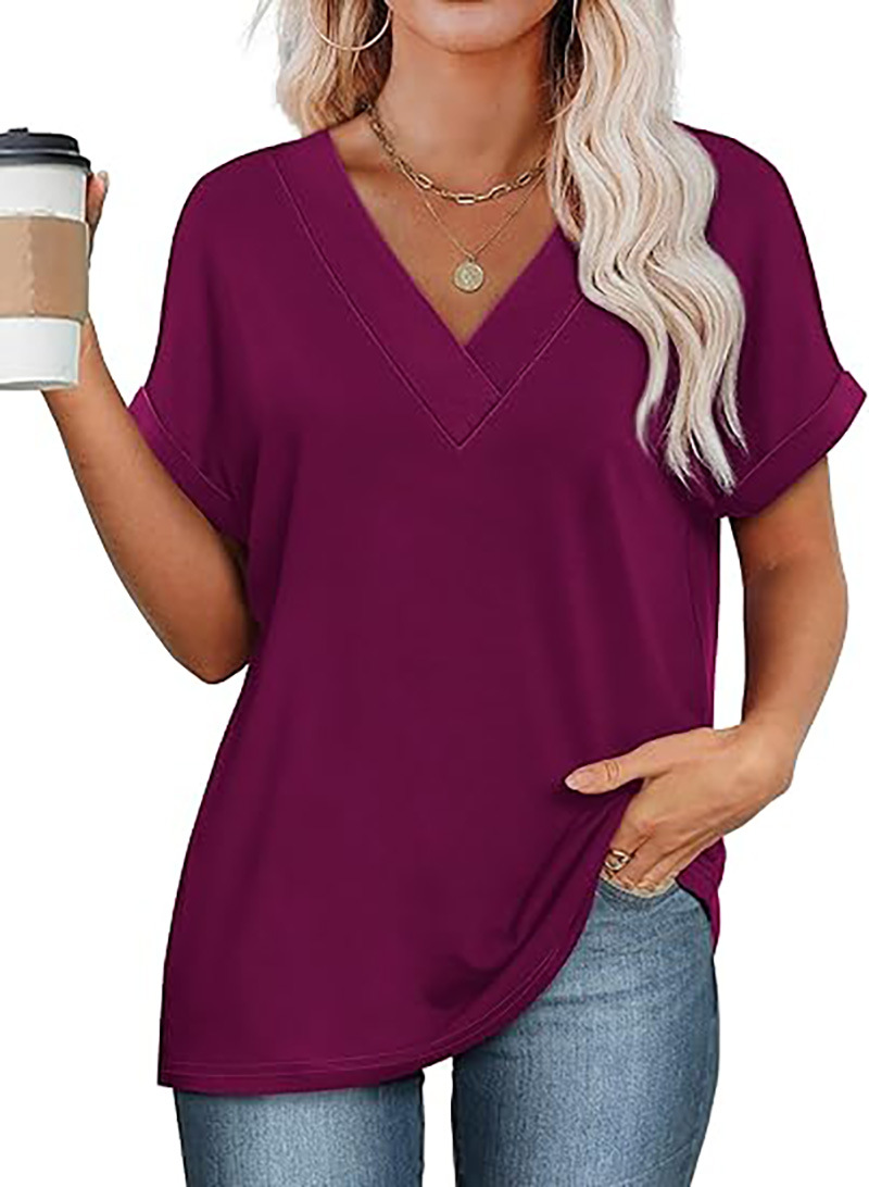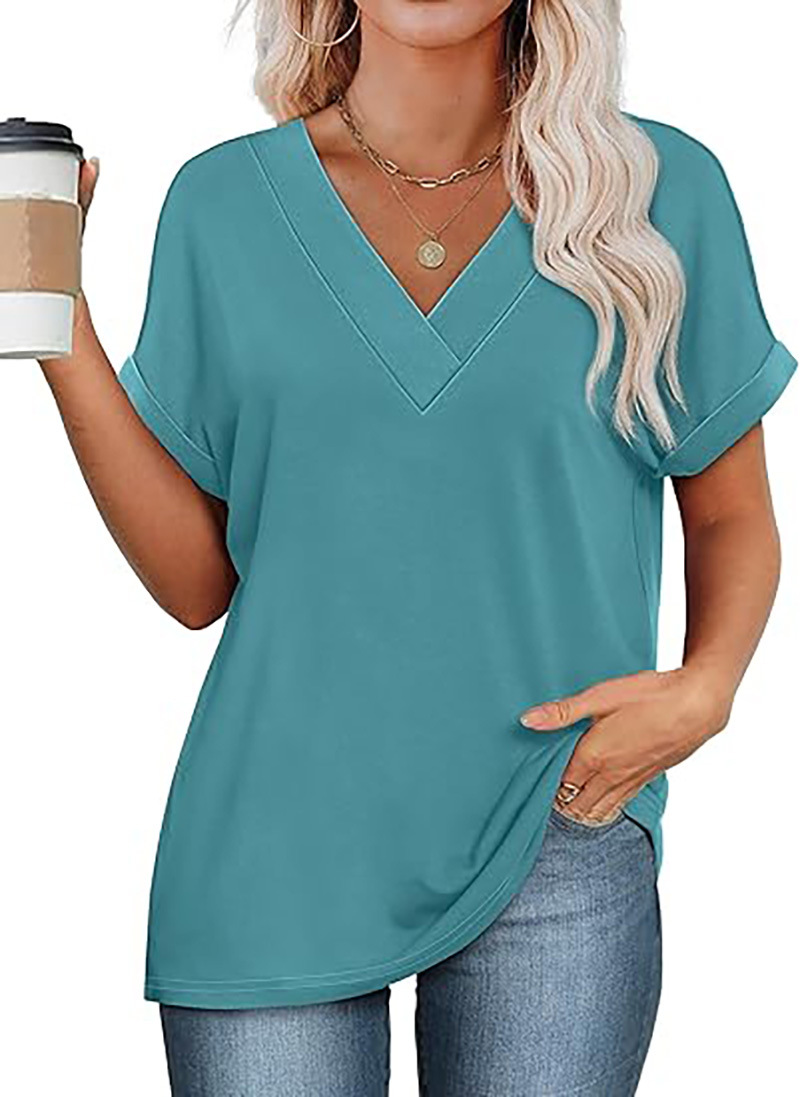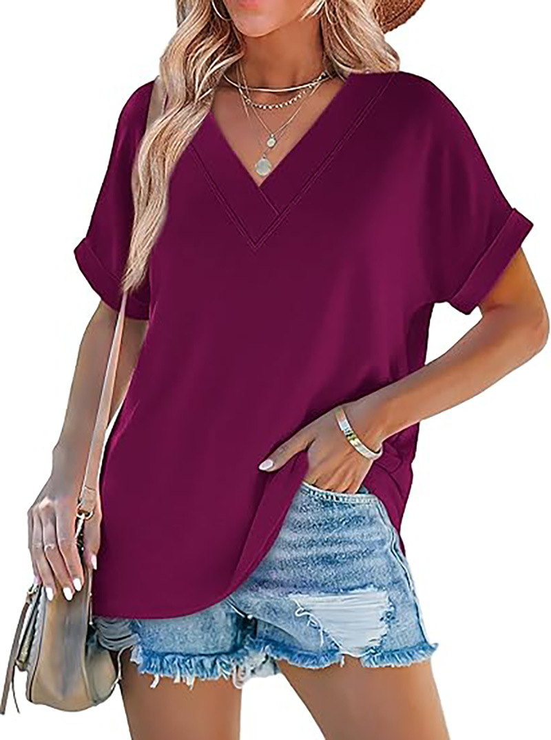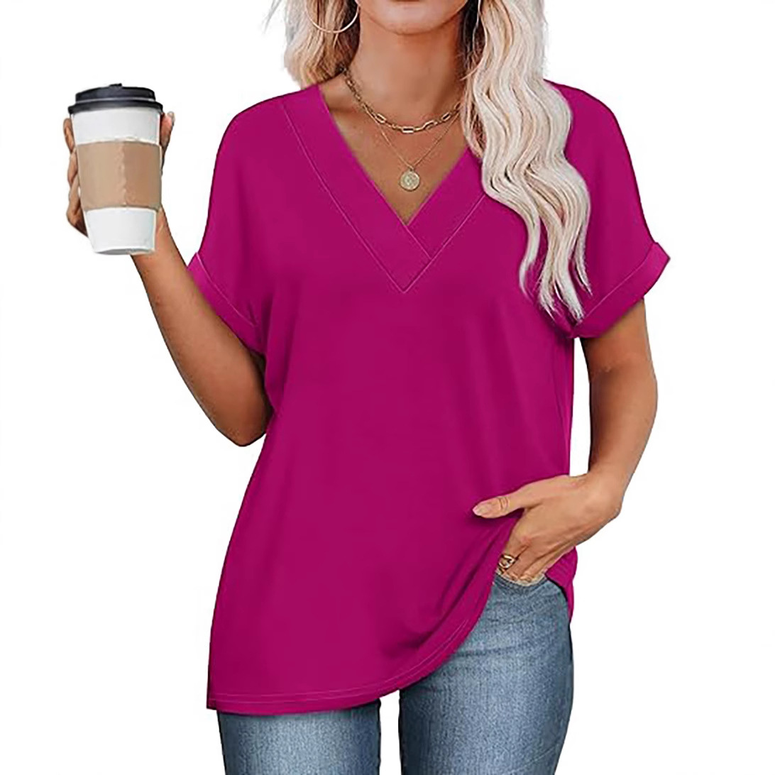아마존 여성 여름 최고 짧은 박쥐 소매 셔츠 2025 패션 V 넥 의류