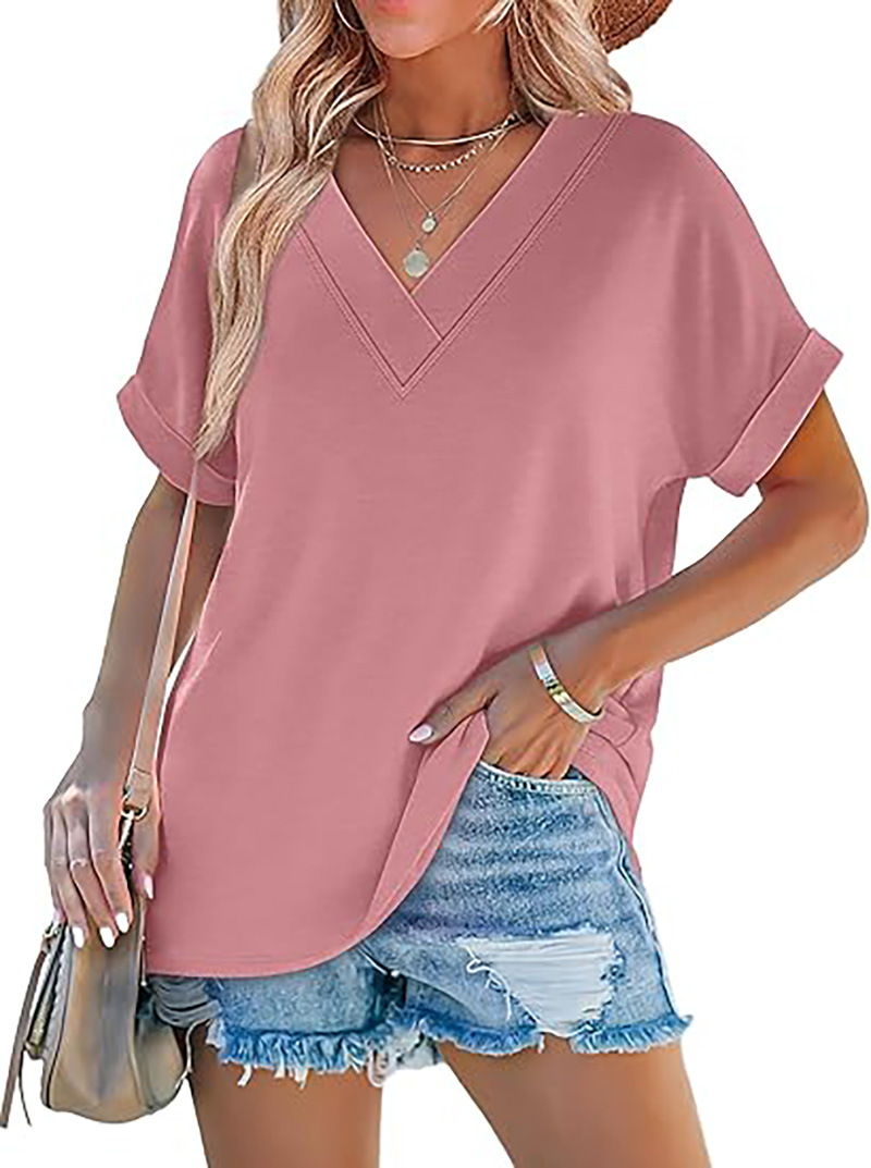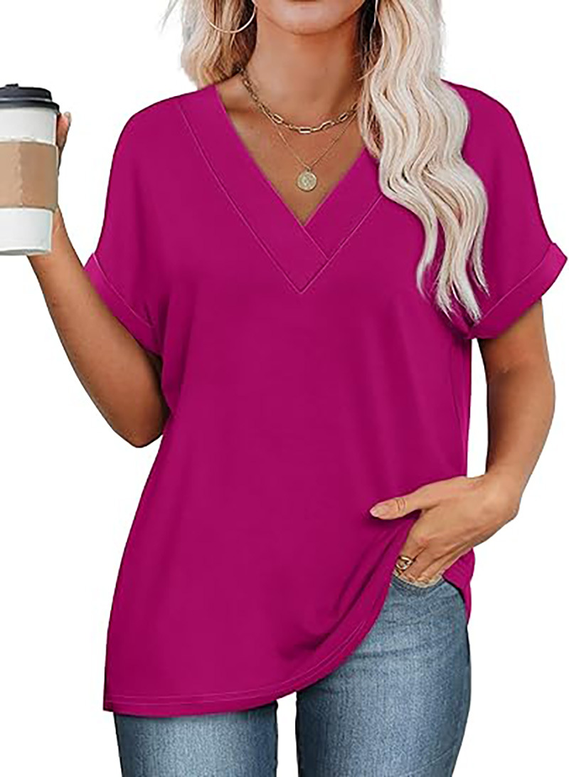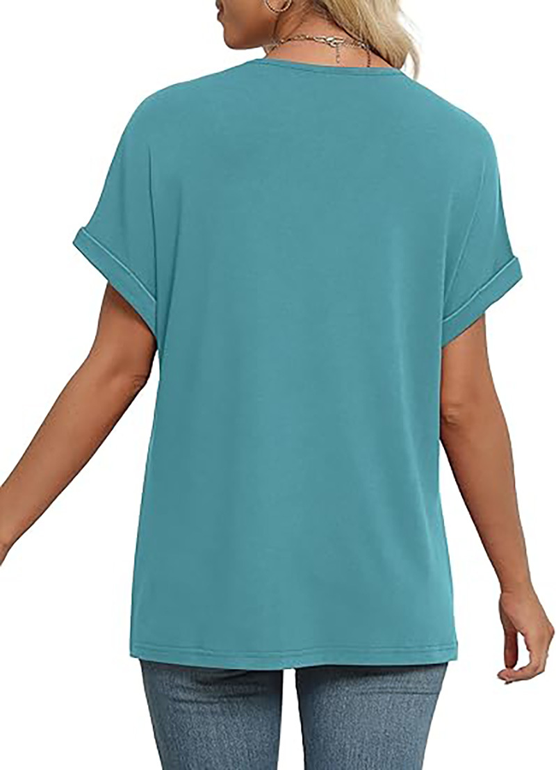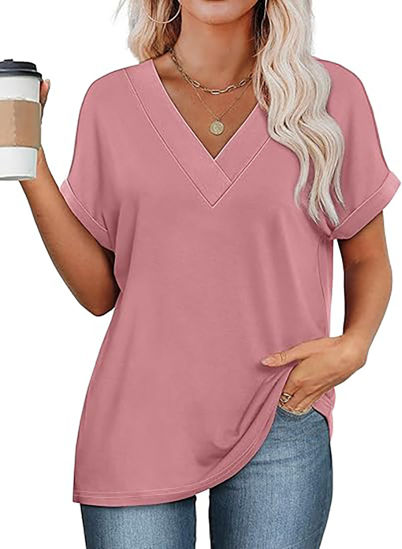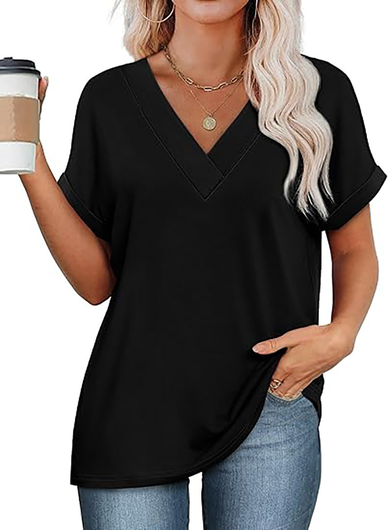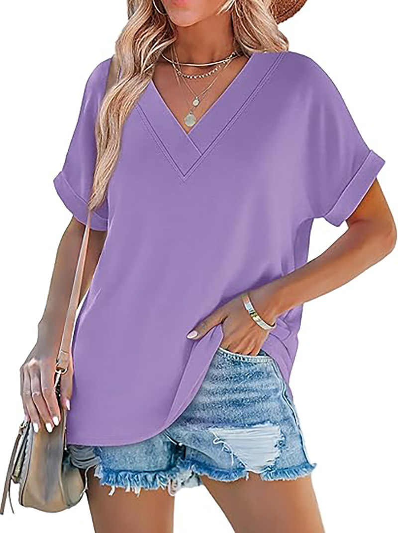 아마존 여성 여름 최고 짧은 박쥐 소매 셔츠 2025 패션 V 넥 의류