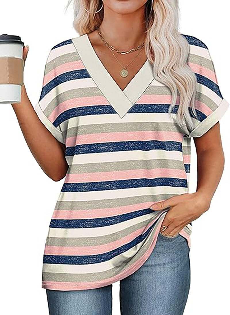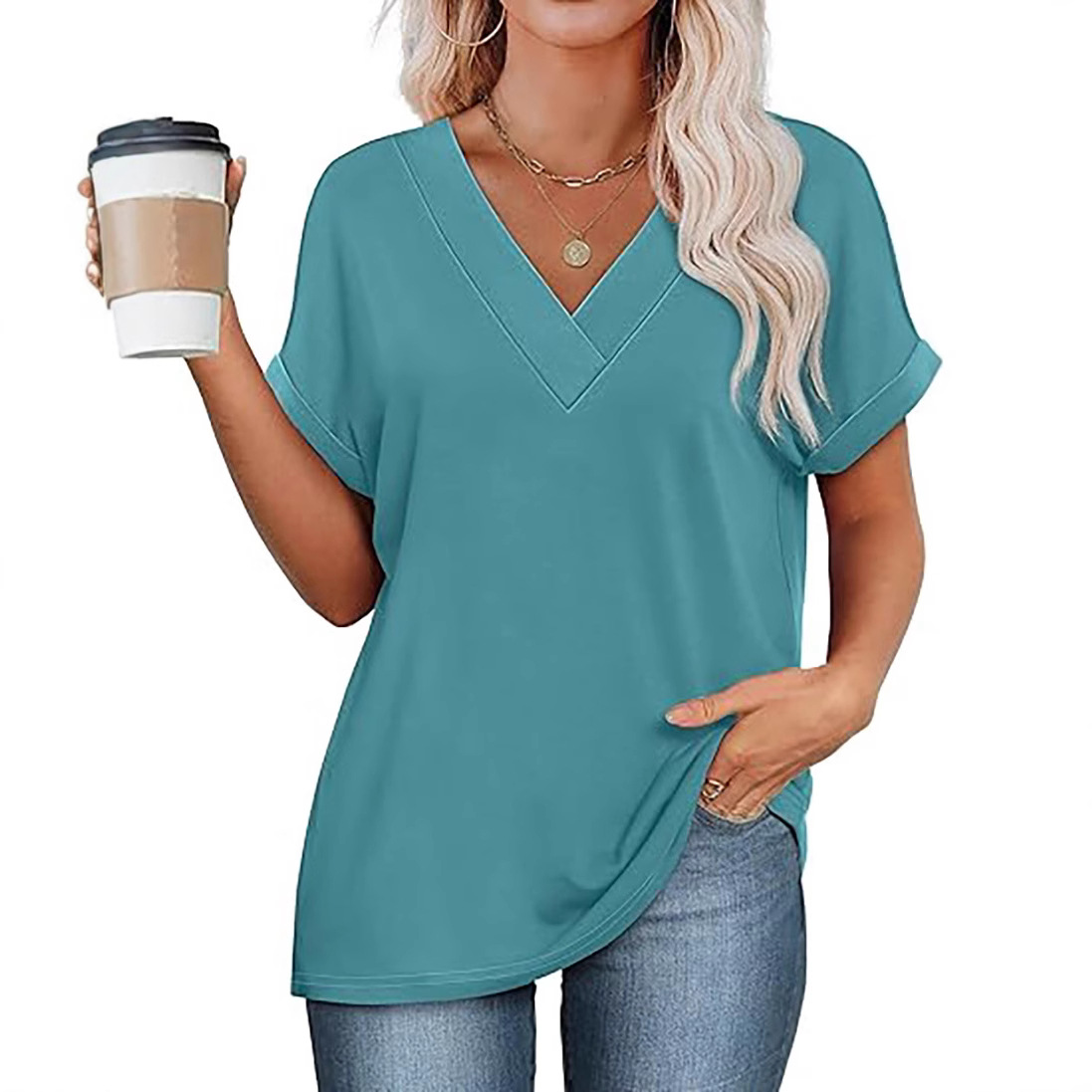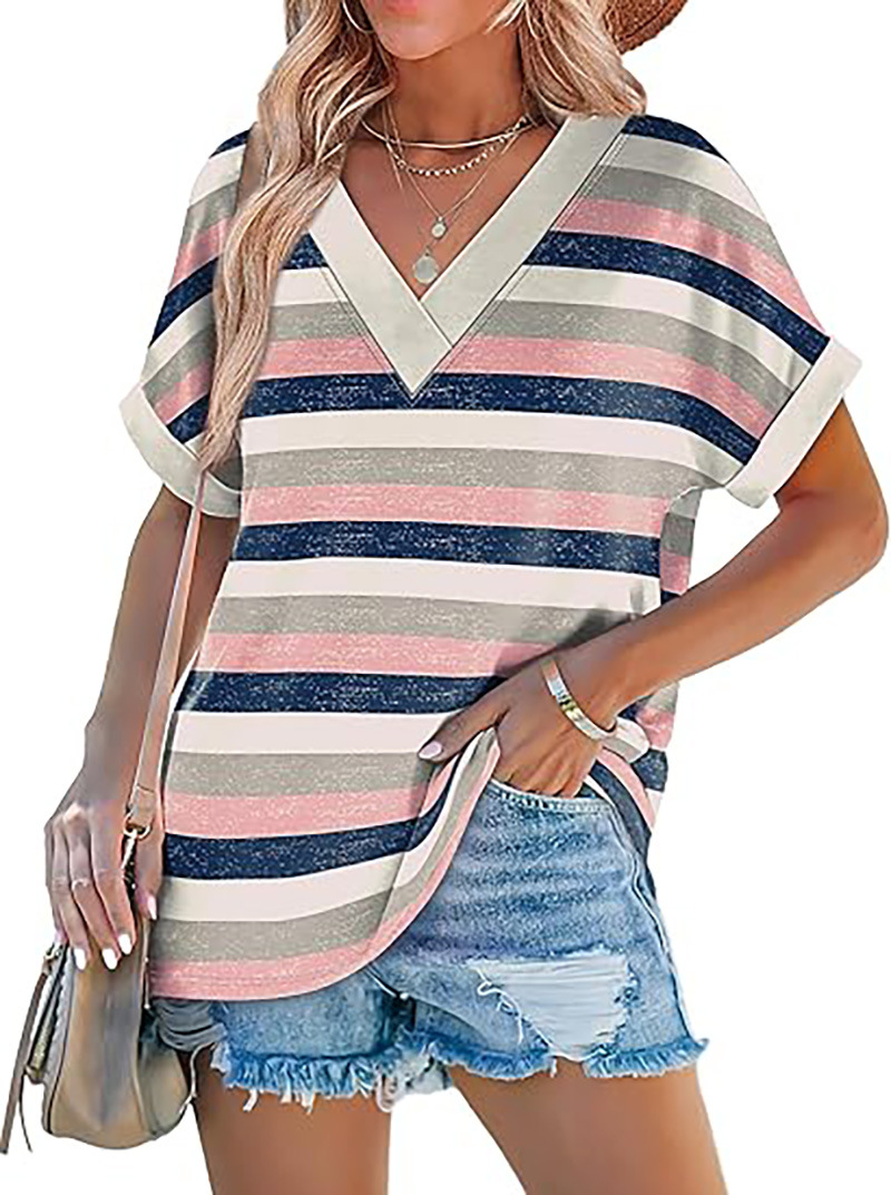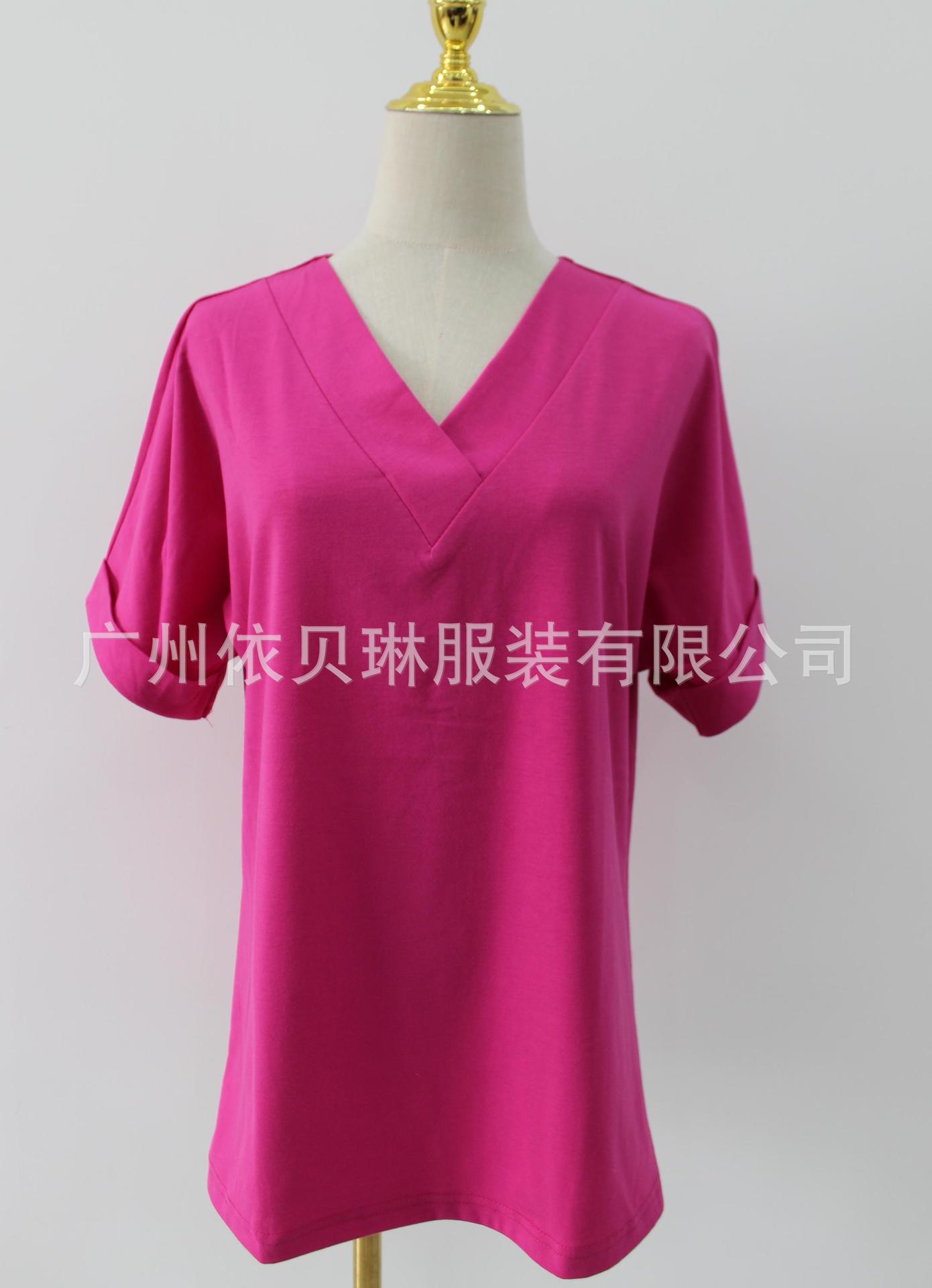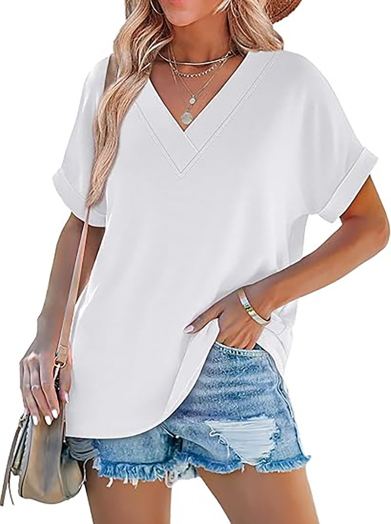 아마존 여성 여름 최고 짧은 박쥐 소매 셔츠 2025 패션 V 넥 의류