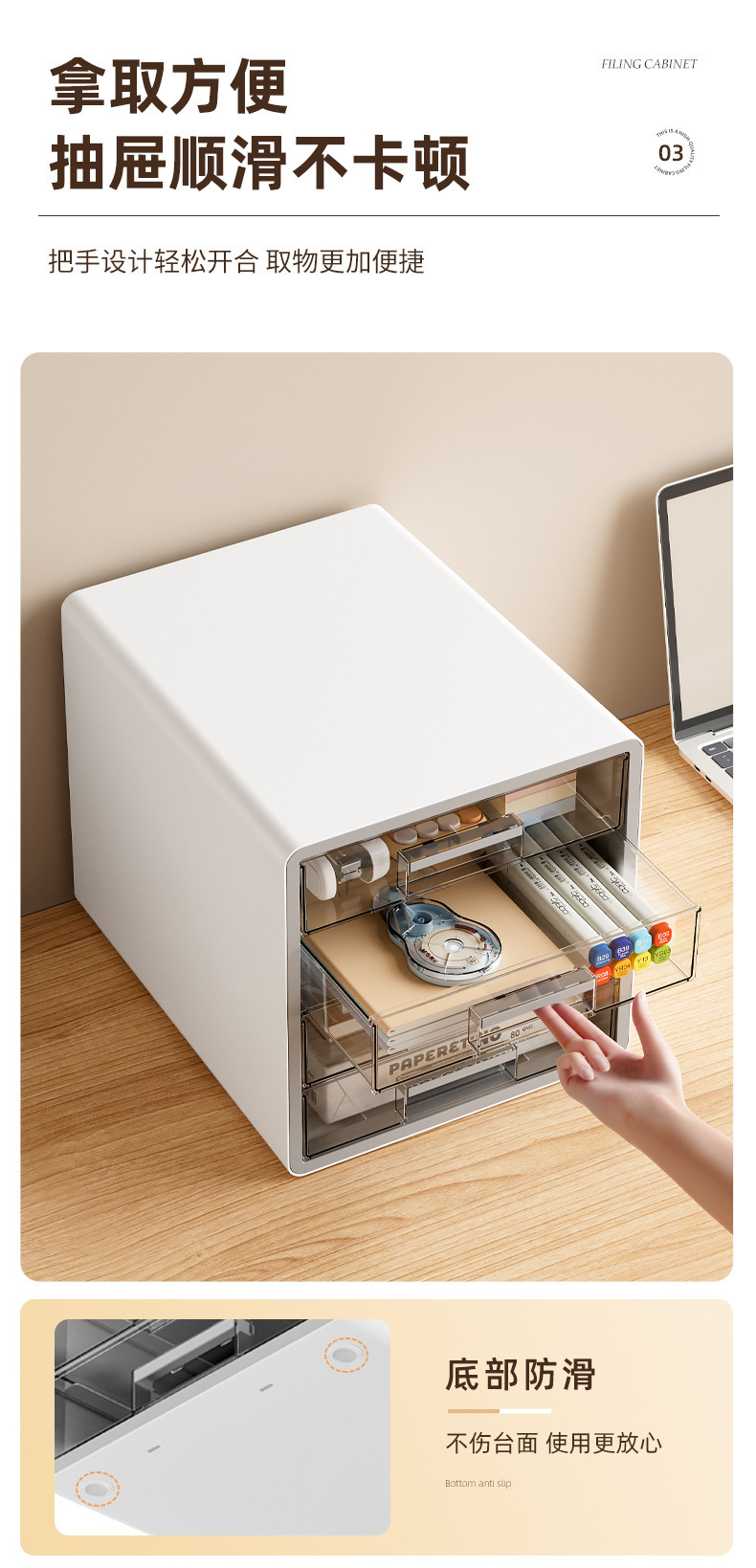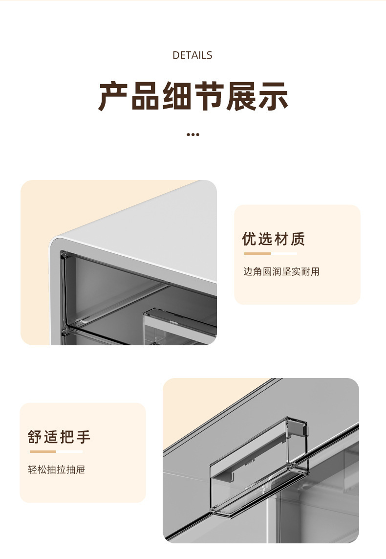 材质:主体、侧板、把手PP+压圈ABS+抽屉PET