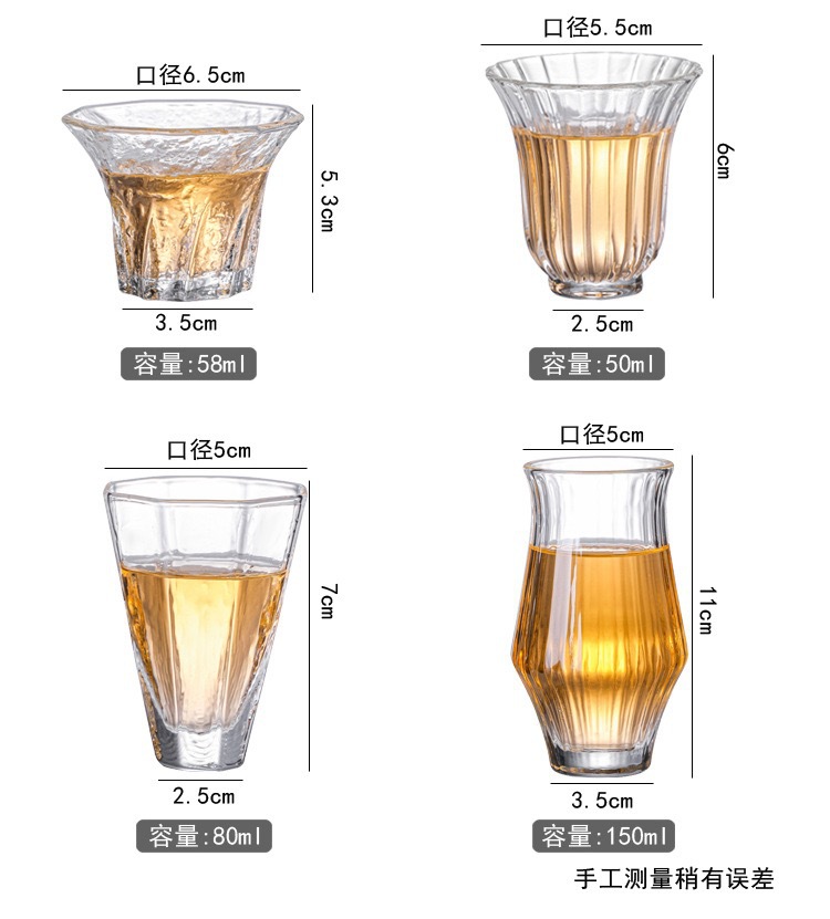 내열성 고붕규산 유리 일본식 다도잔, 망치질 무늬 유리 마스터컵, 공푸차잔, 손님용 차그릇, 차컵