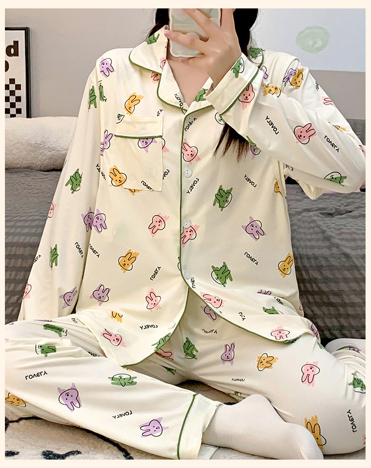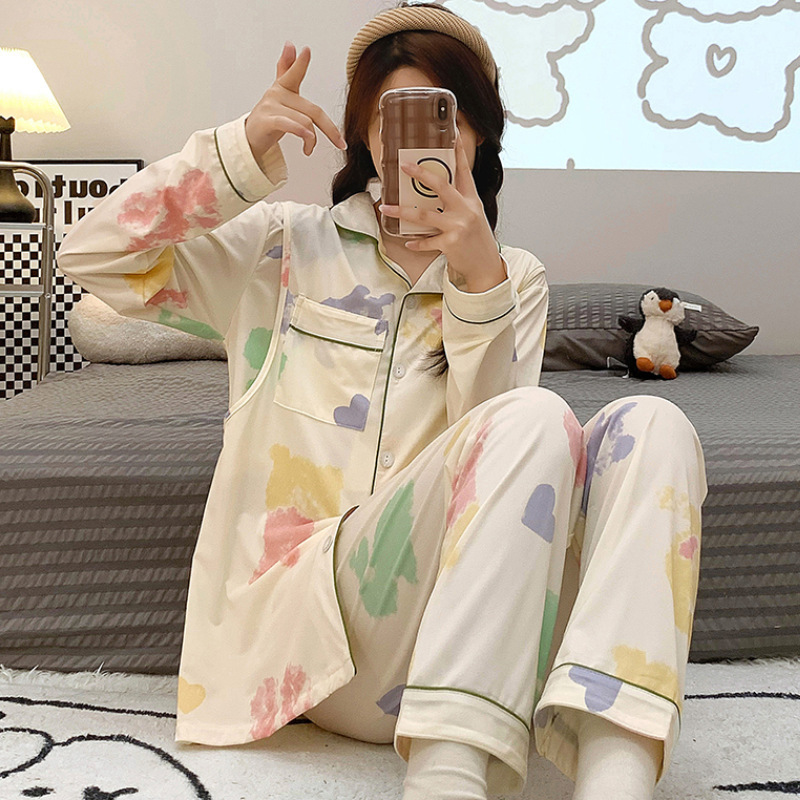 임신 중 봄과 가을 모성 수유 중 봄과 여름 새 달 의류 면화 산후 임산부 파자마 세트
