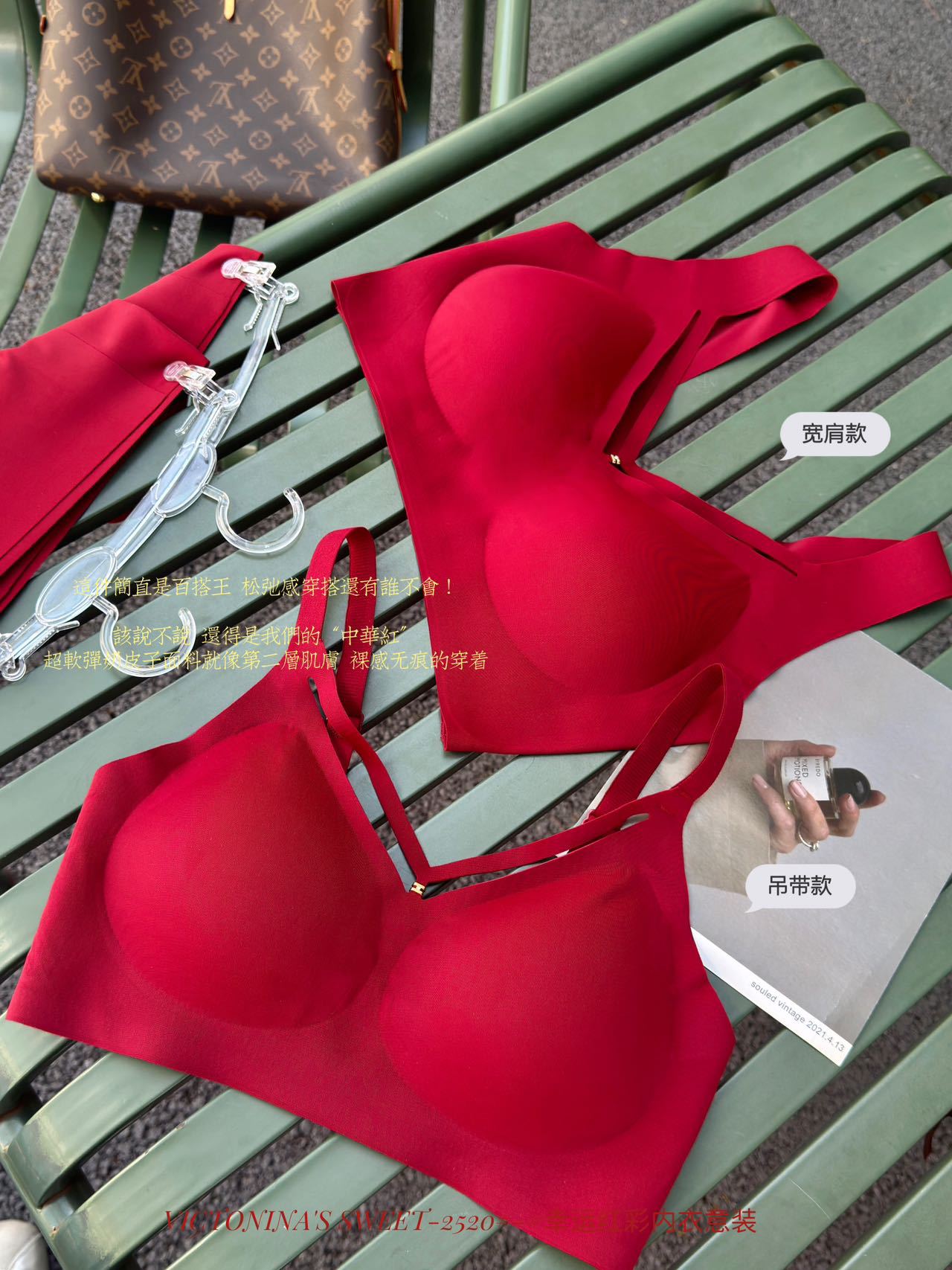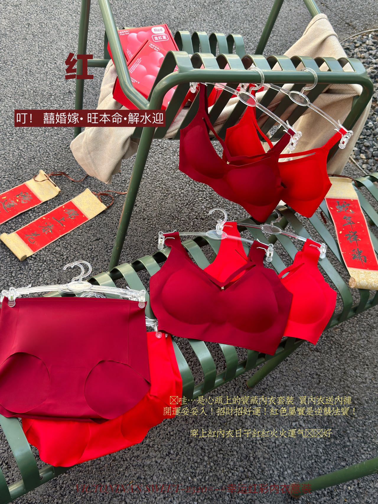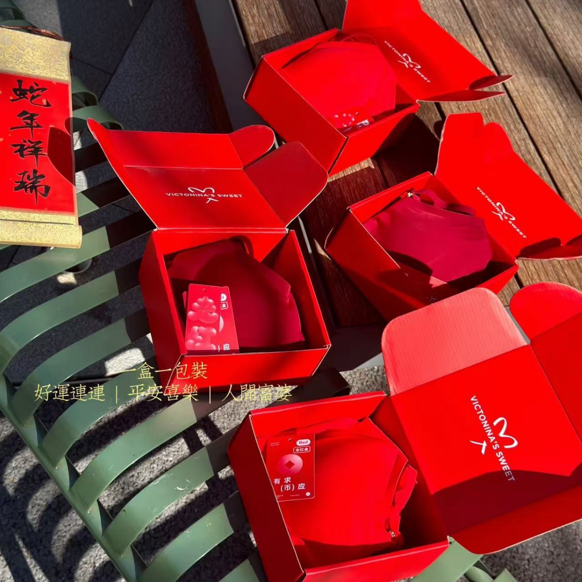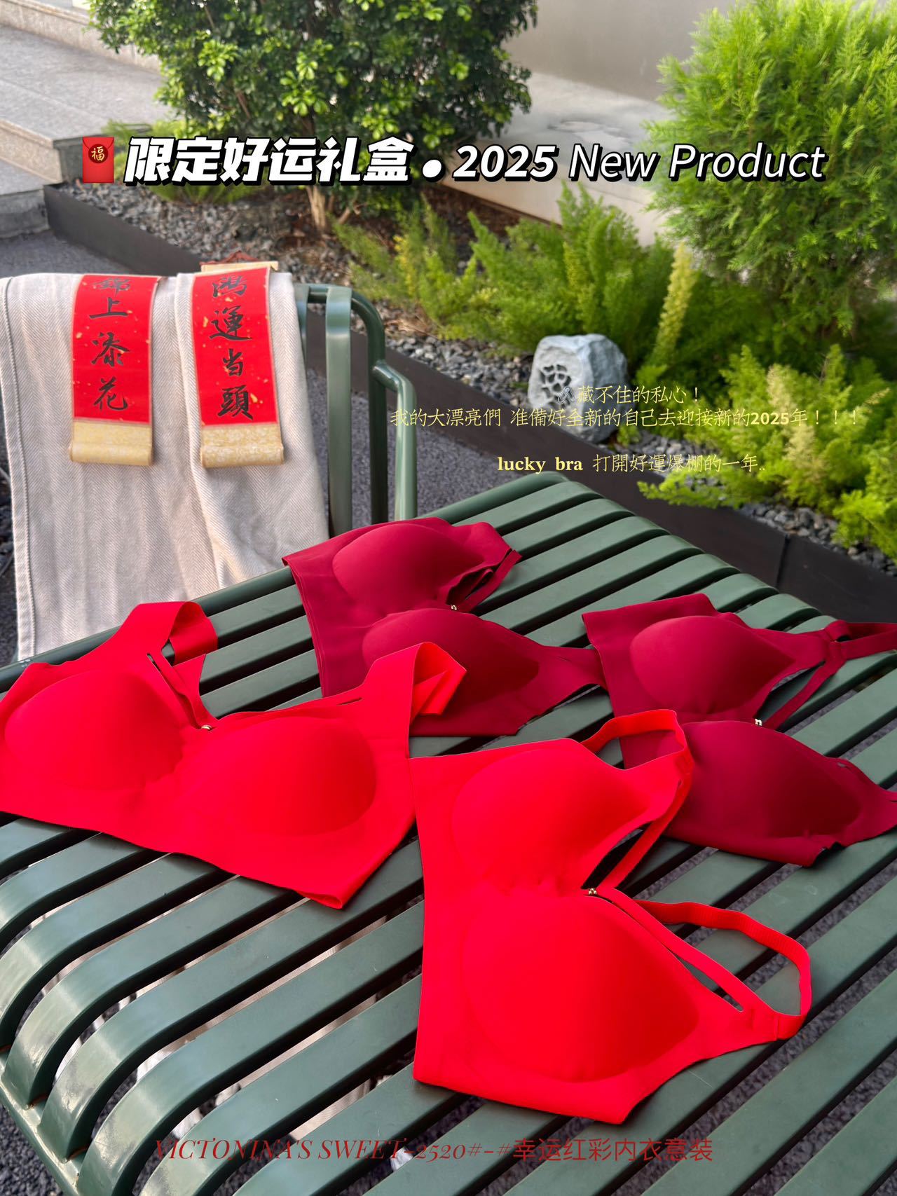 2520 럭키 레드 컬러 속옷 세트 가슴 패드 웨딩 레드 브라 팬티 선물 상자와 함께 새로운 여성의 해