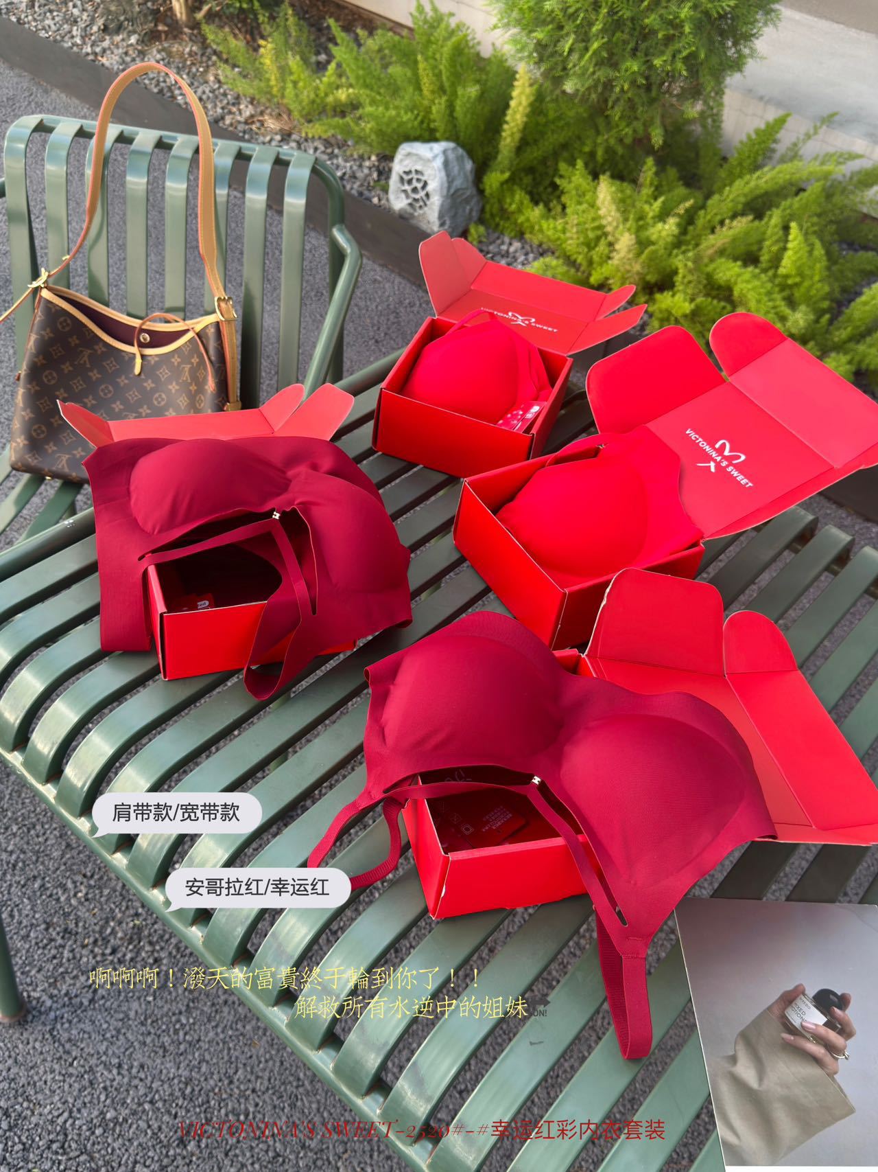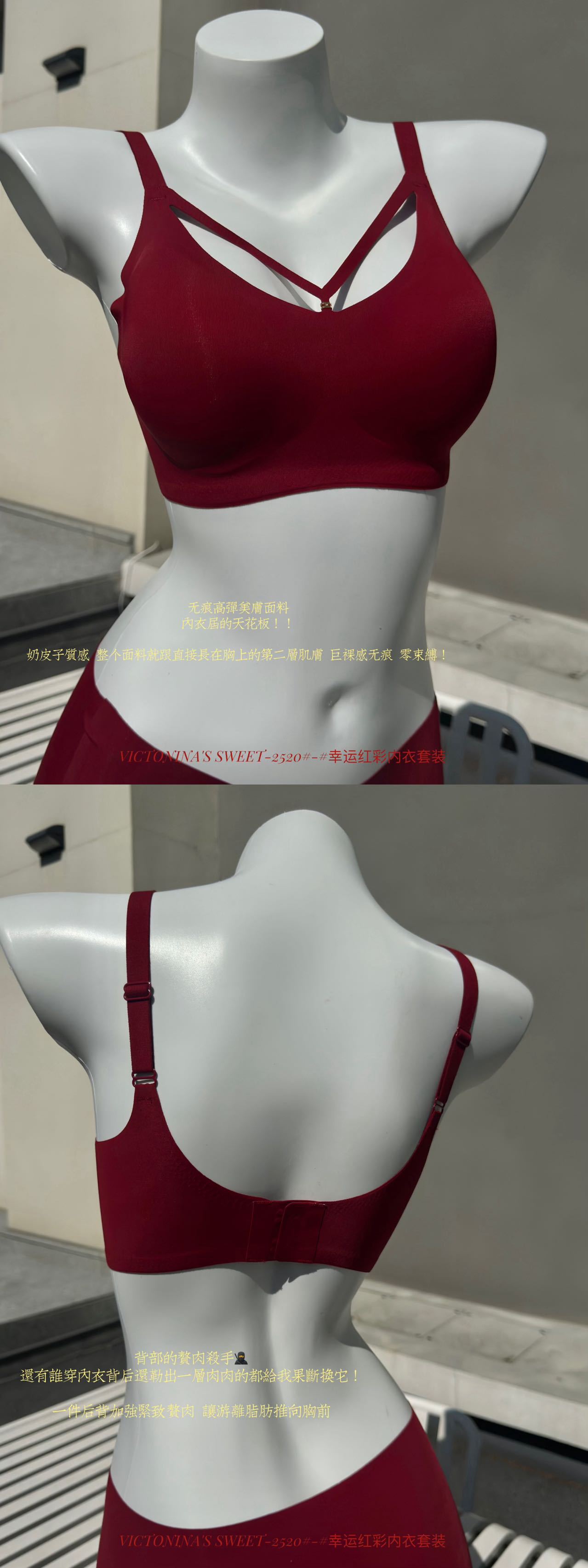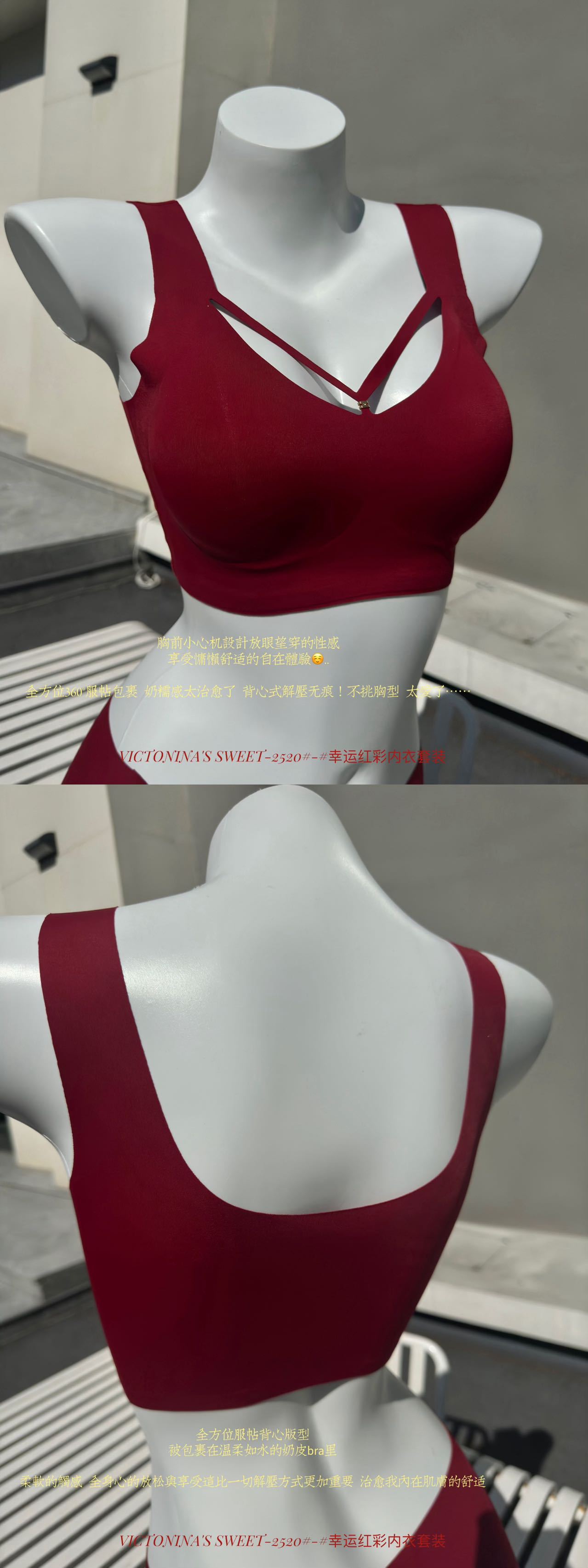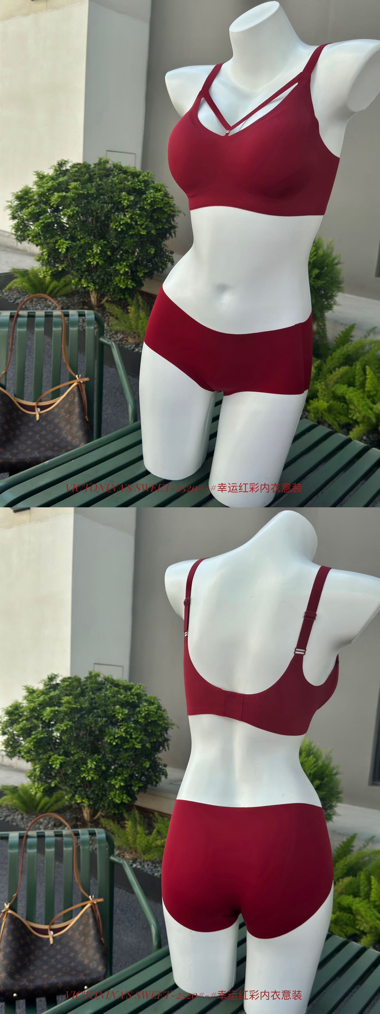 2520 럭키 레드 컬러 속옷 세트 가슴 패드 웨딩 레드 브라 팬티 선물 상자와 함께 새로운 여성의 해