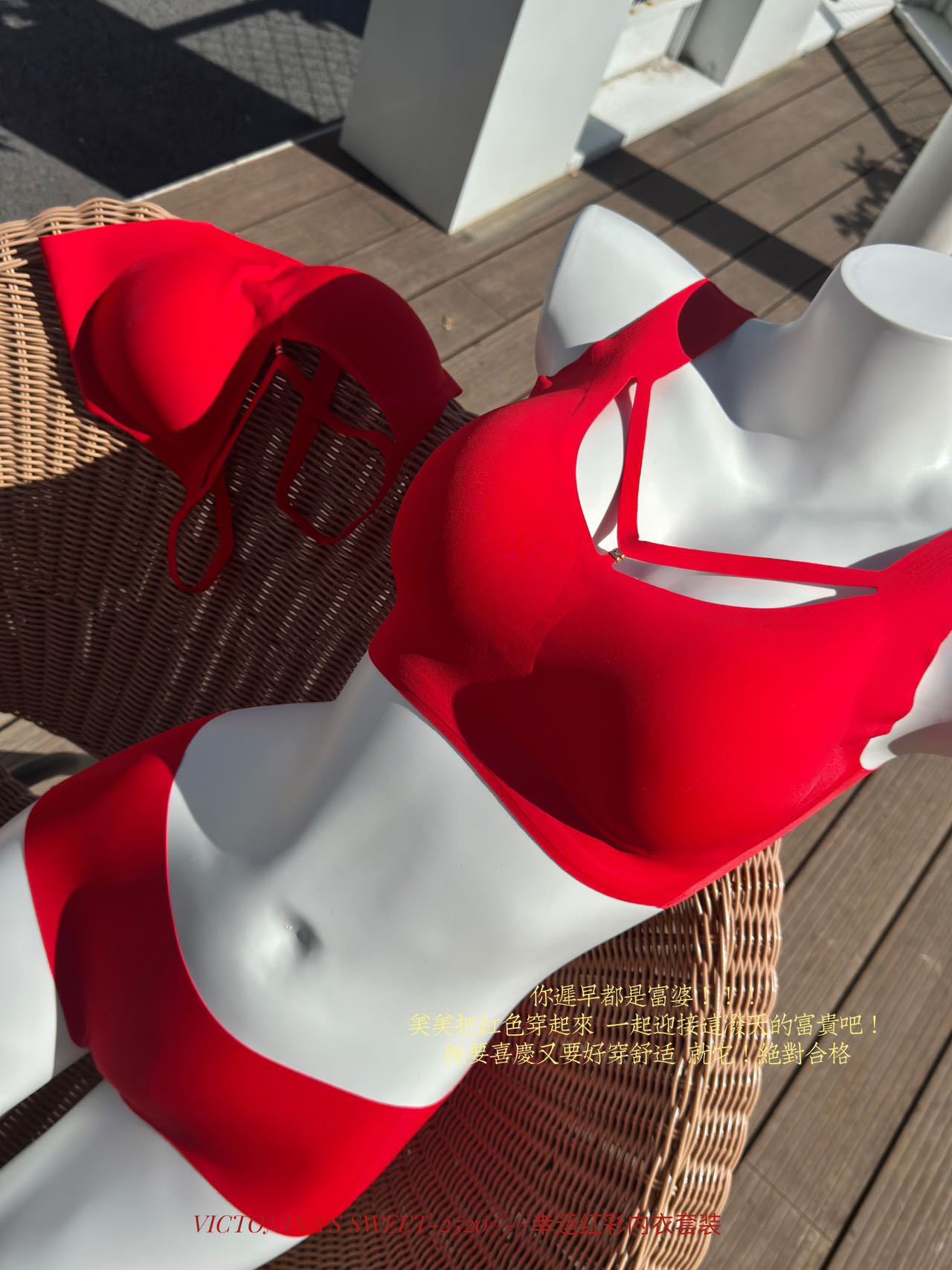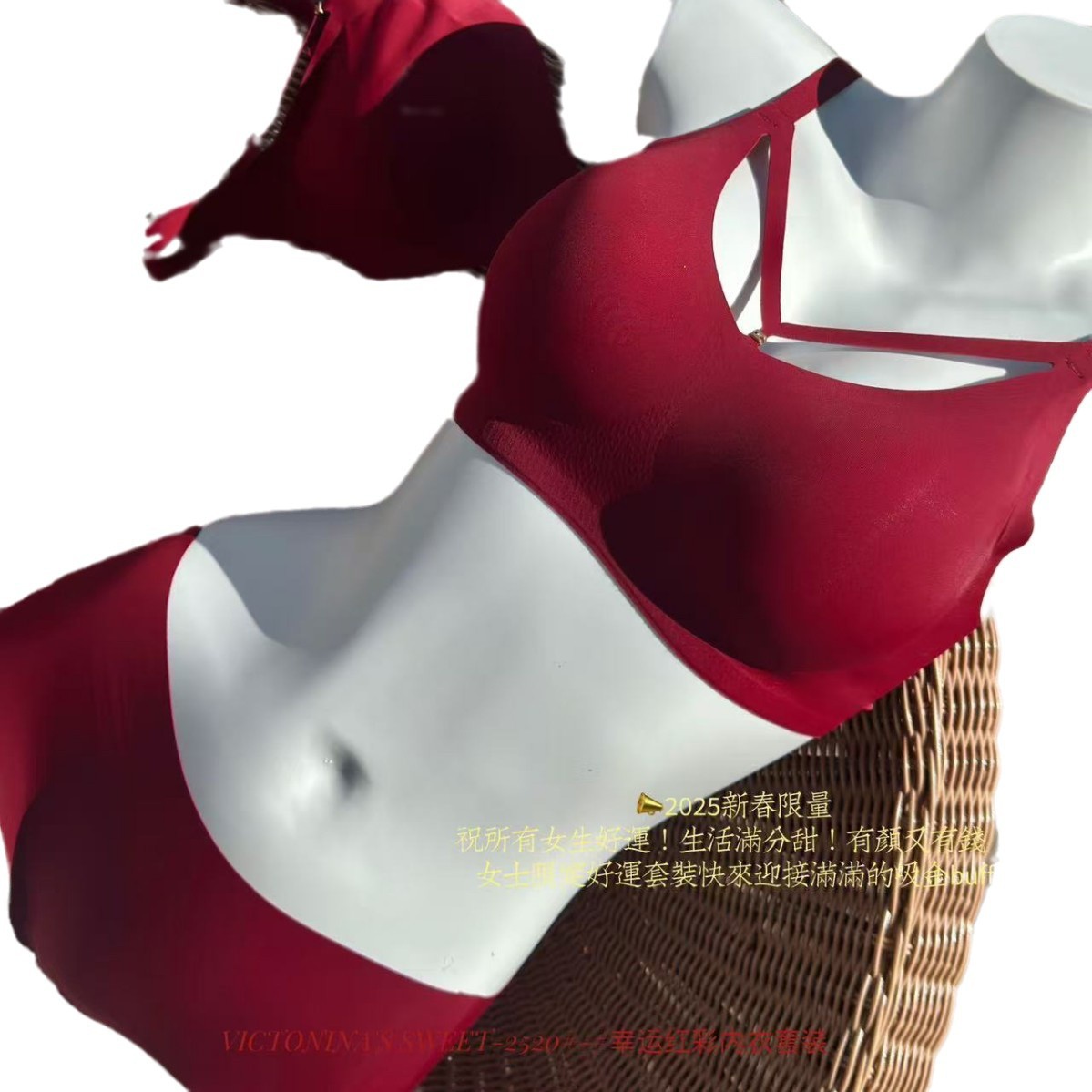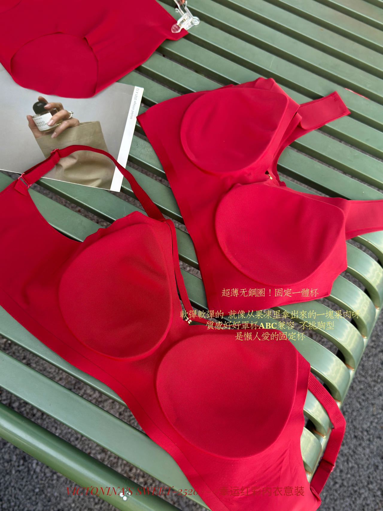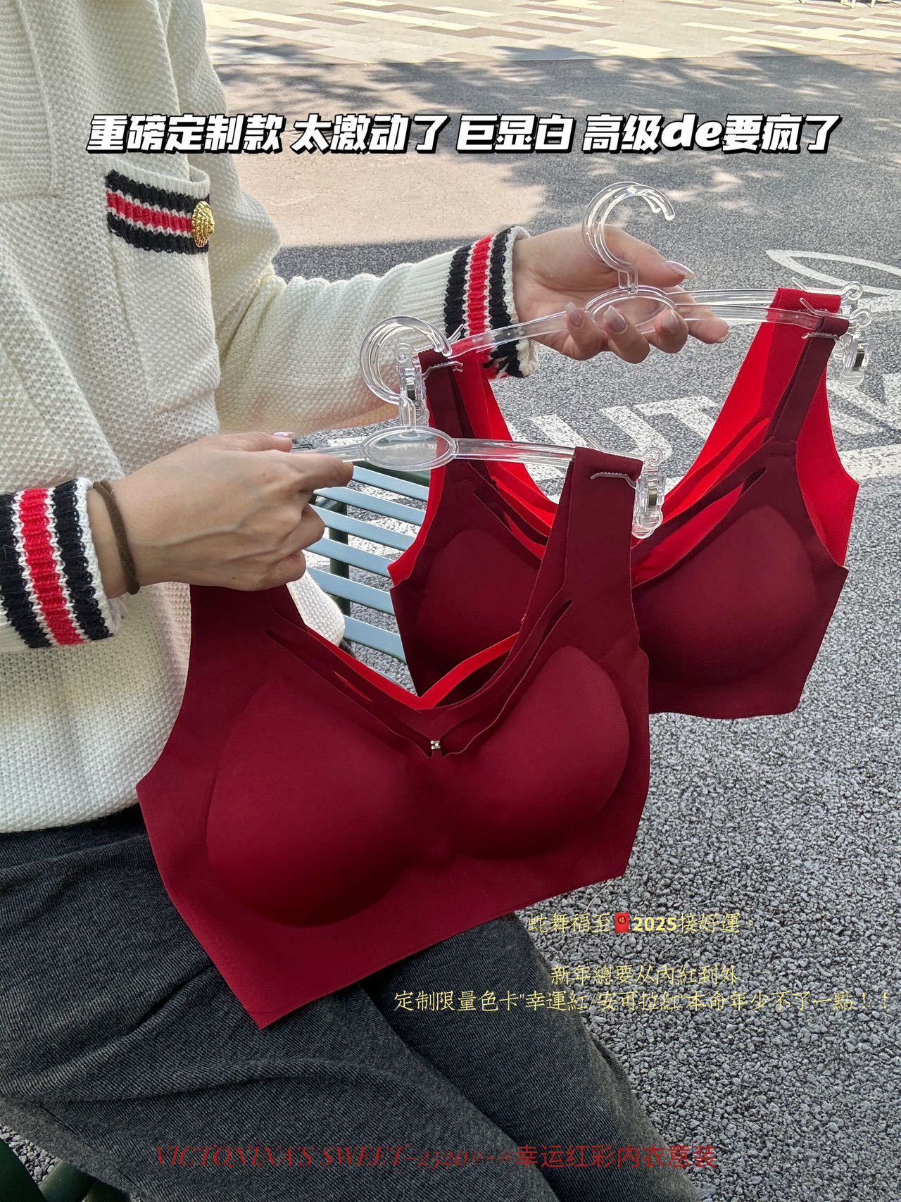 2520 럭키 레드 컬러 속옷 세트 가슴 패드 웨딩 레드 브라 팬티 선물 상자와 함께 새로운 여성의 해