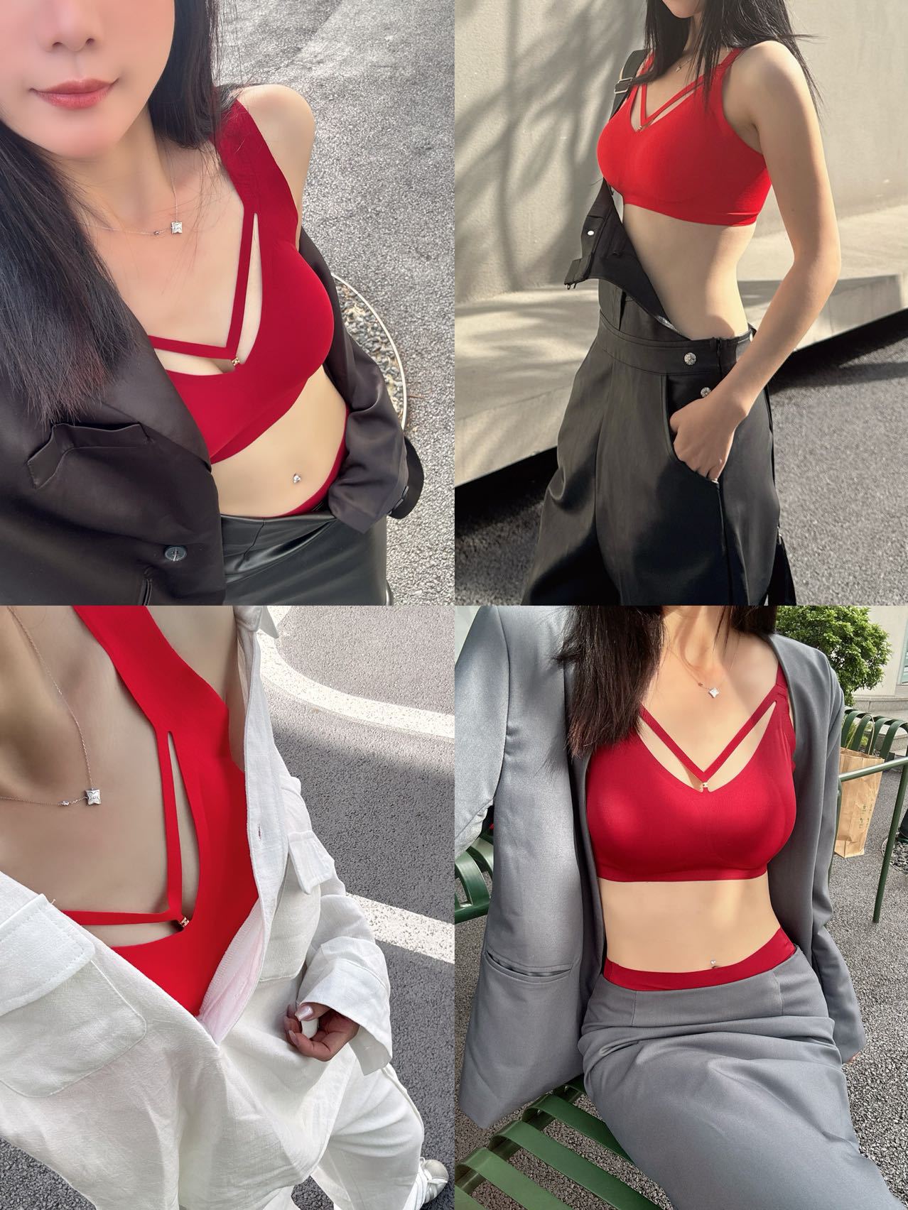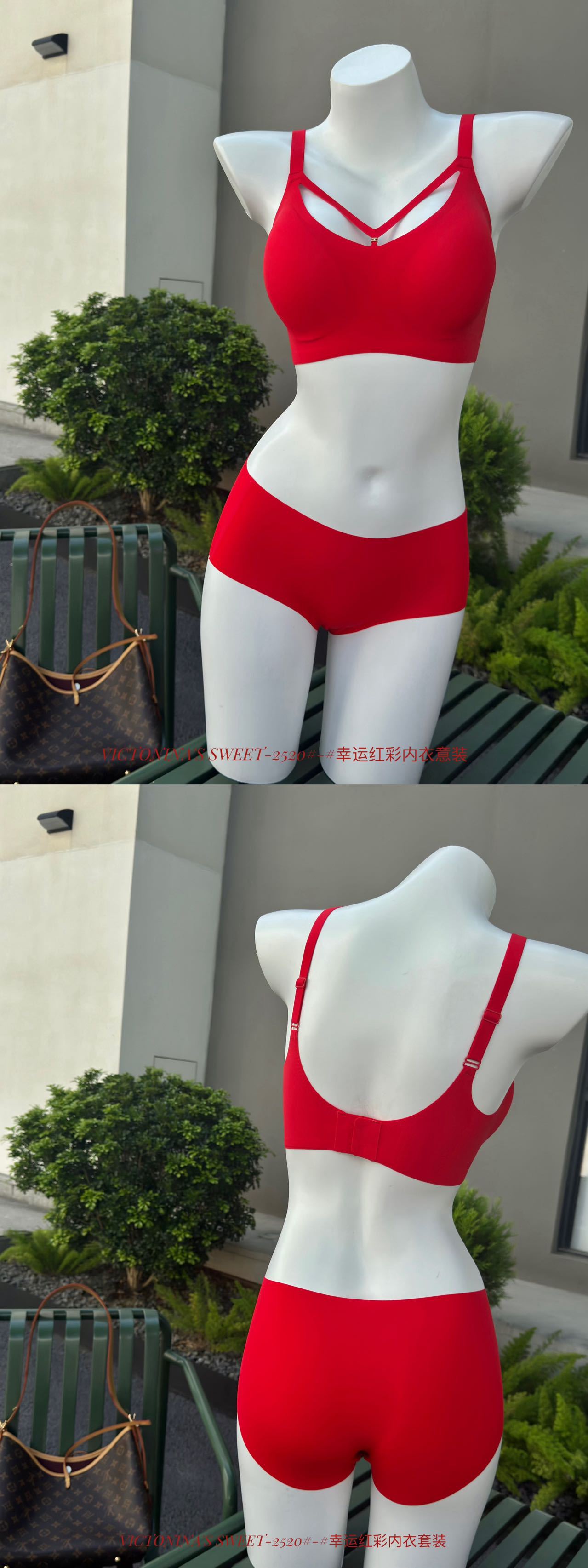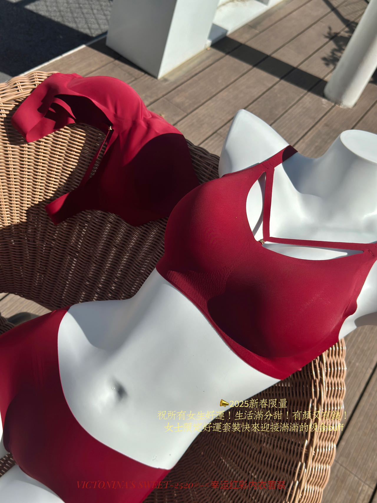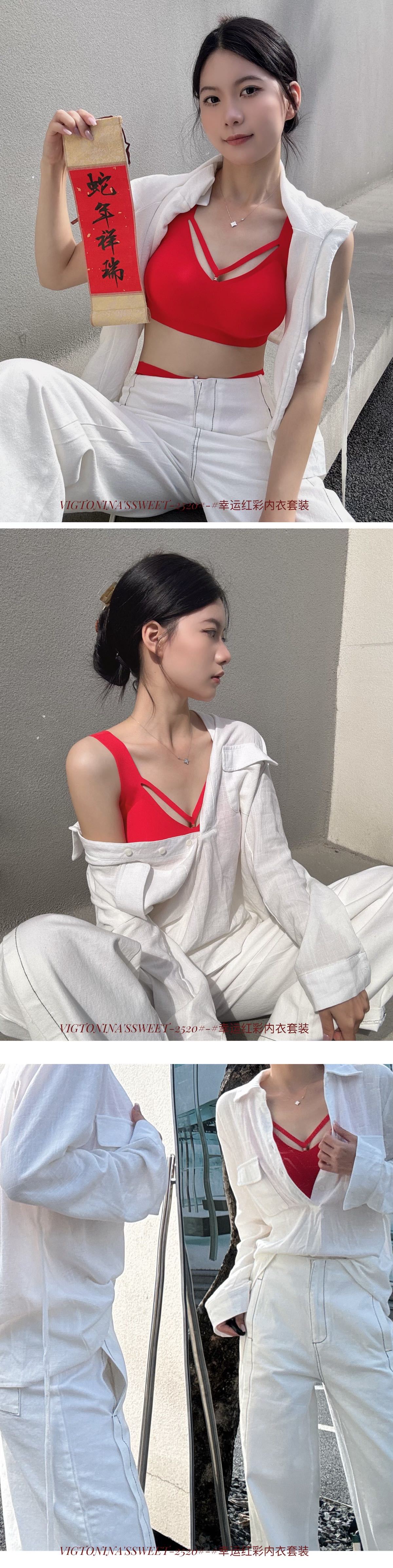 2520 럭키 레드 컬러 속옷 세트 가슴 패드 웨딩 레드 브라 팬티 선물 상자와 함께 새로운 여성의 해