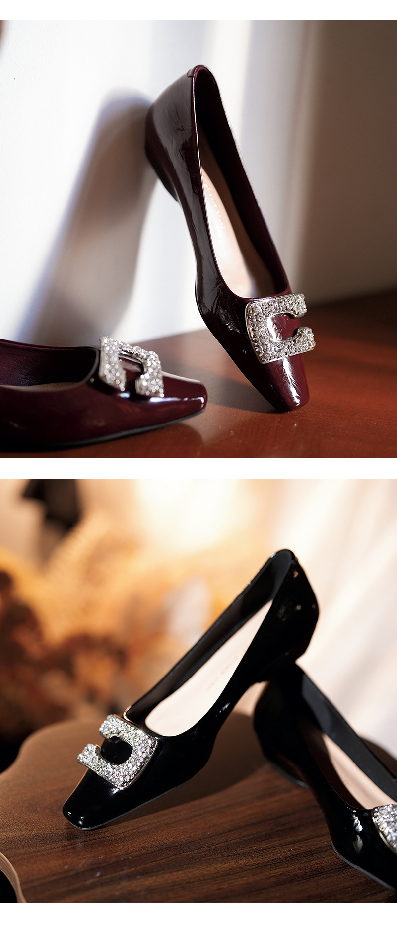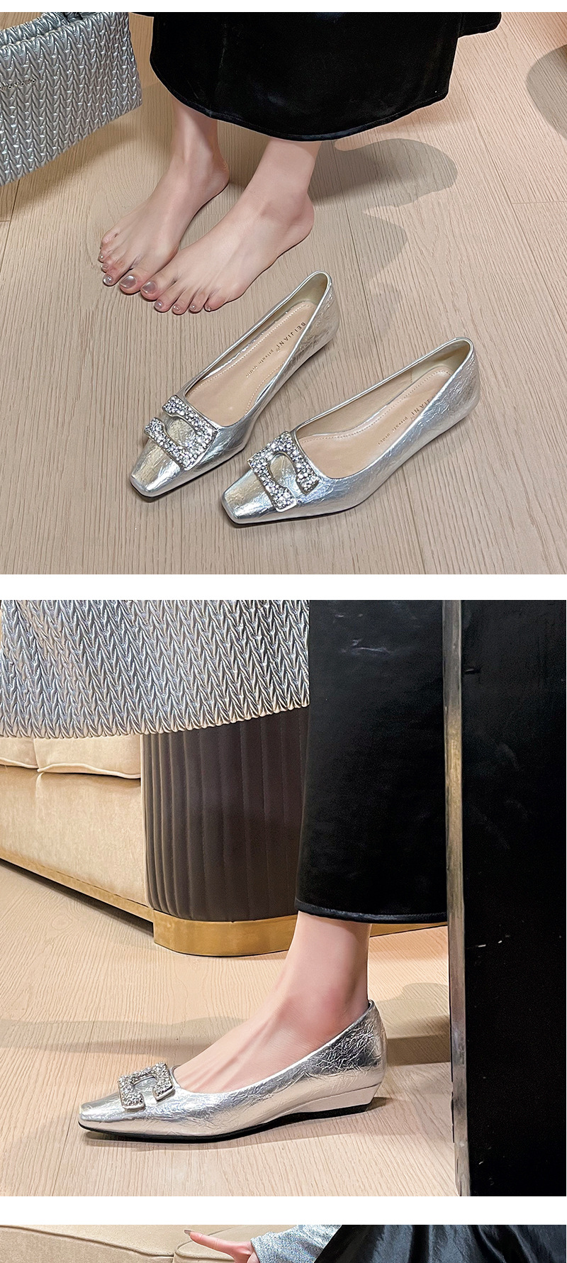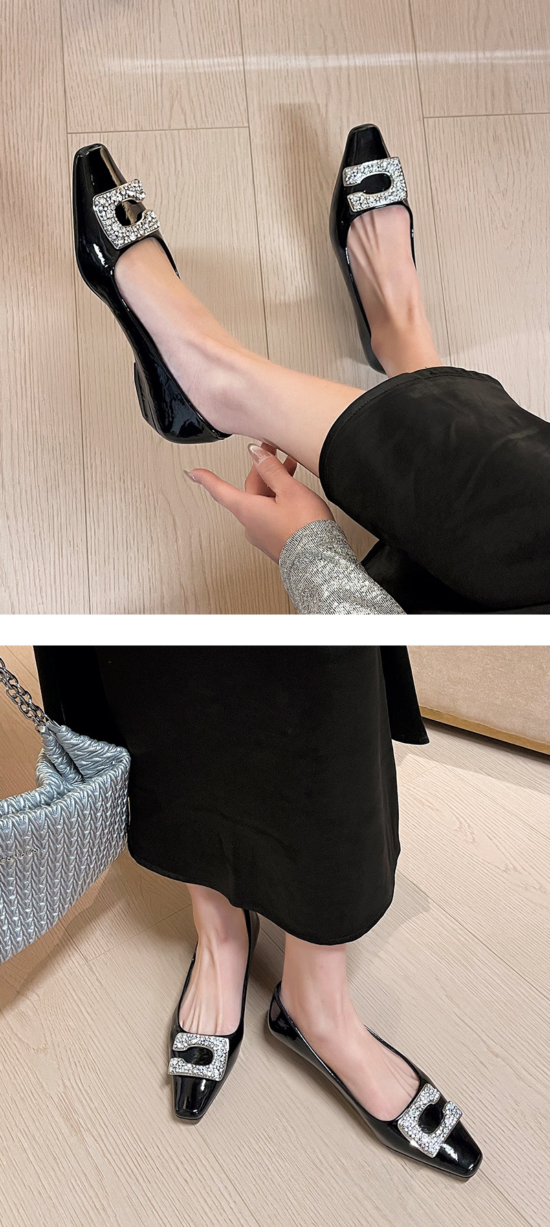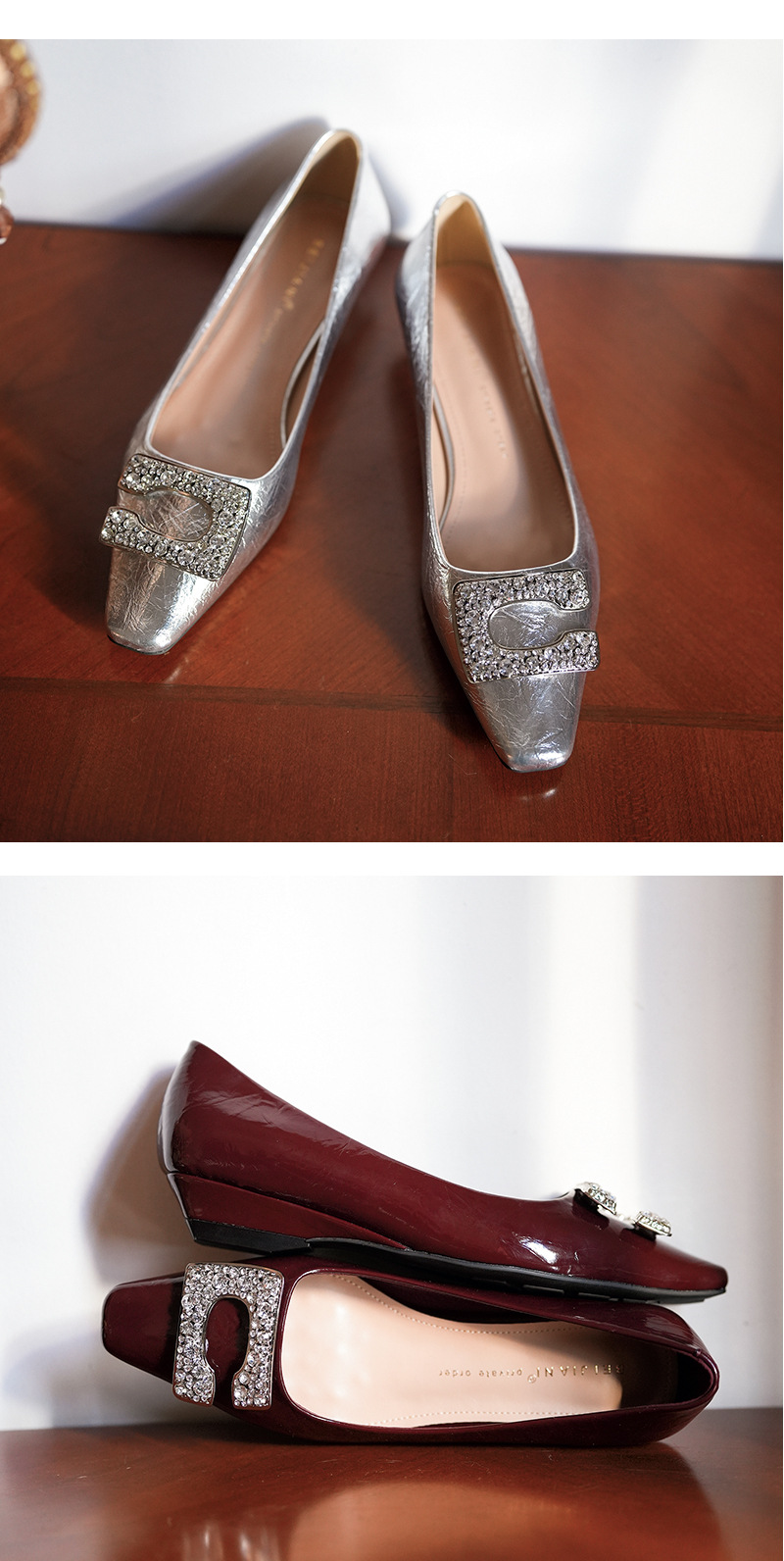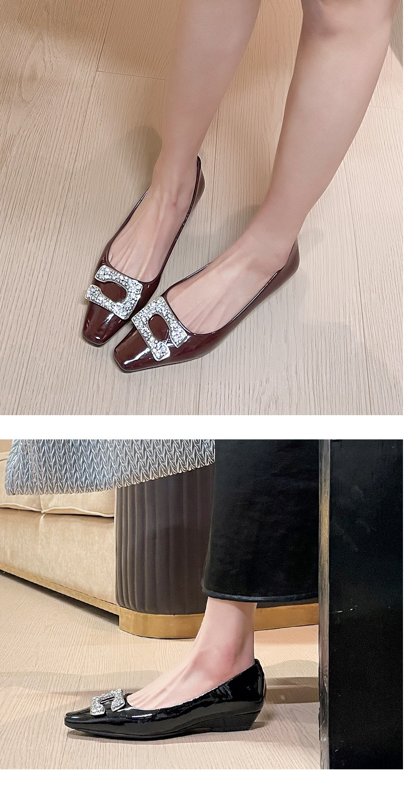 3189-12 오리지널 빅 C 릴 버클 ~ 프랑스 기질 특허 가죽 소프트 플랫 슈즈 여성 웨지 스퀘어 헤드 봄과 여름
