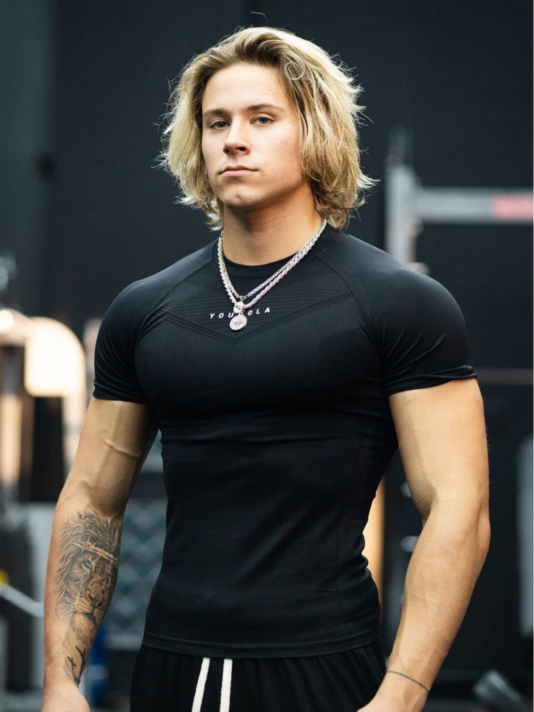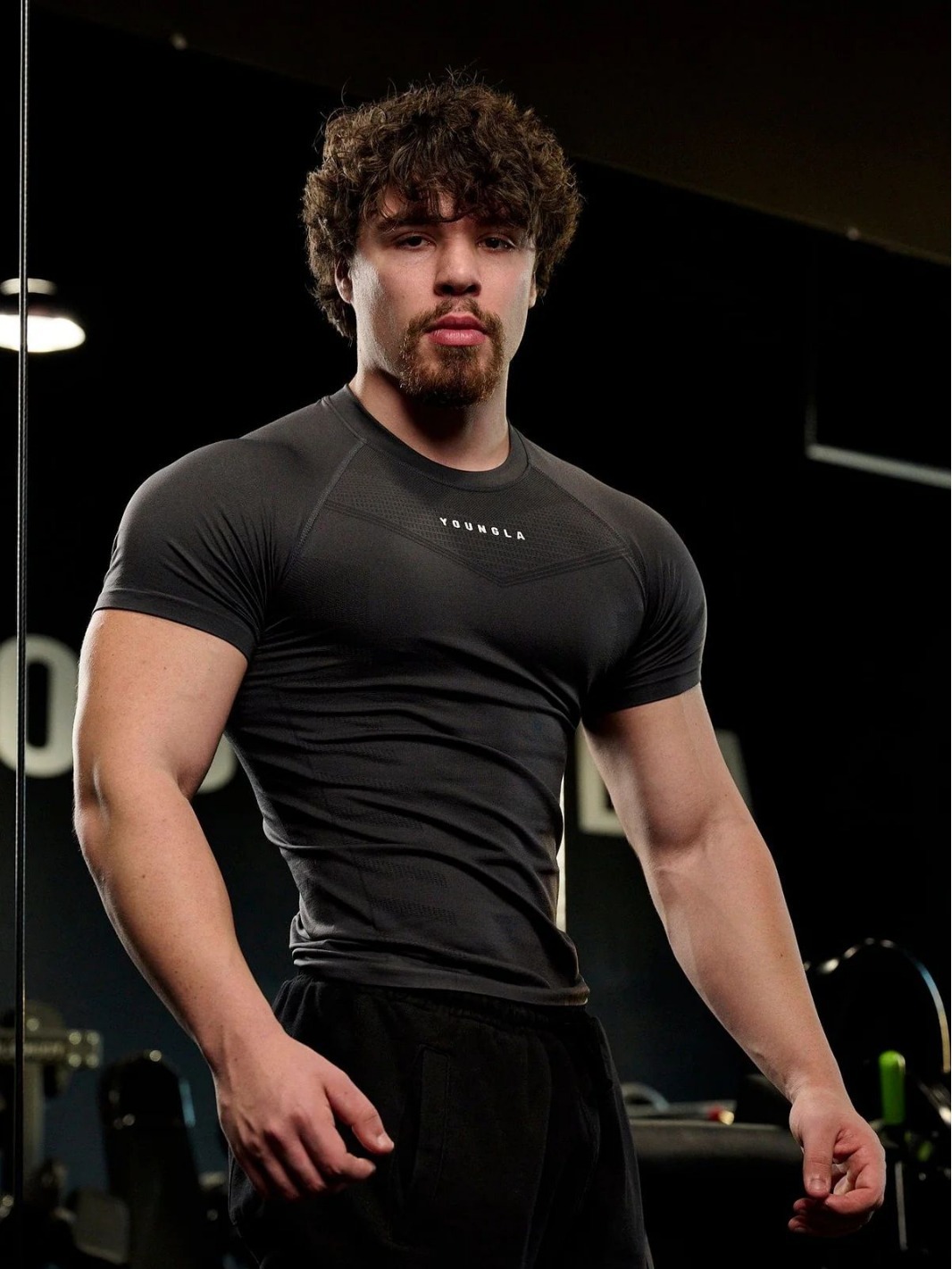 YOUNGLA 남자 티셔츠 스포츠 피트니스 빠른 건조 통기성 스트레치 피트니스 옷 조깅 야외 달리기 농구 세트