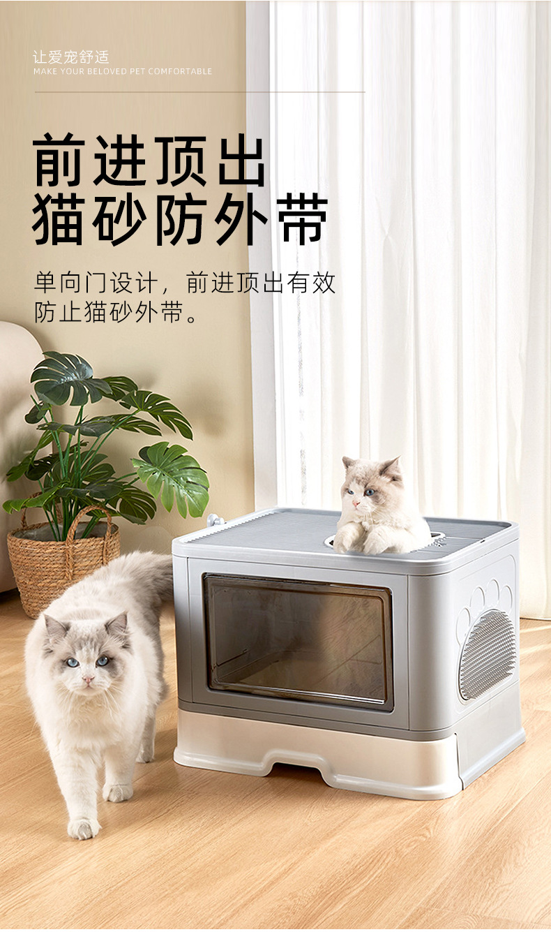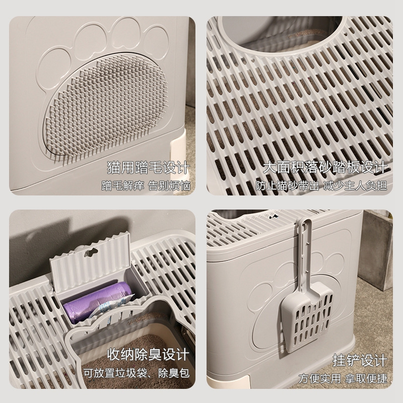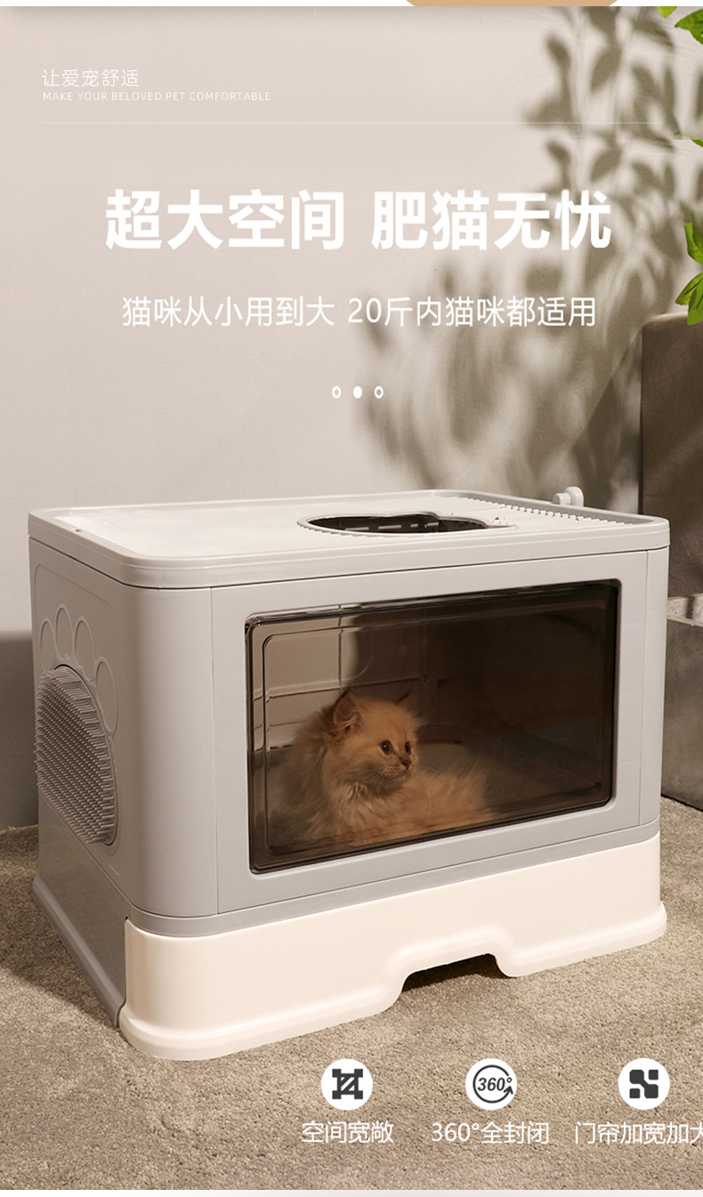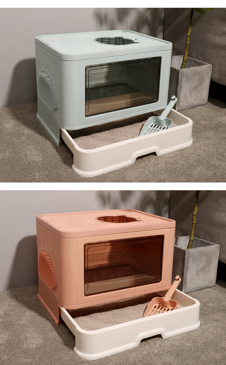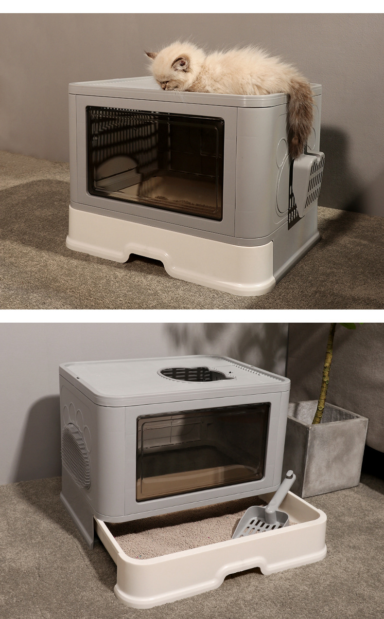 국경 간 대형 고양이 쓰레기 상자 완전히 밀폐 된 서랍 고양이 화장실 헤어 마찰 장치 접이식 고양이 쓰레기 상자 공장 도매