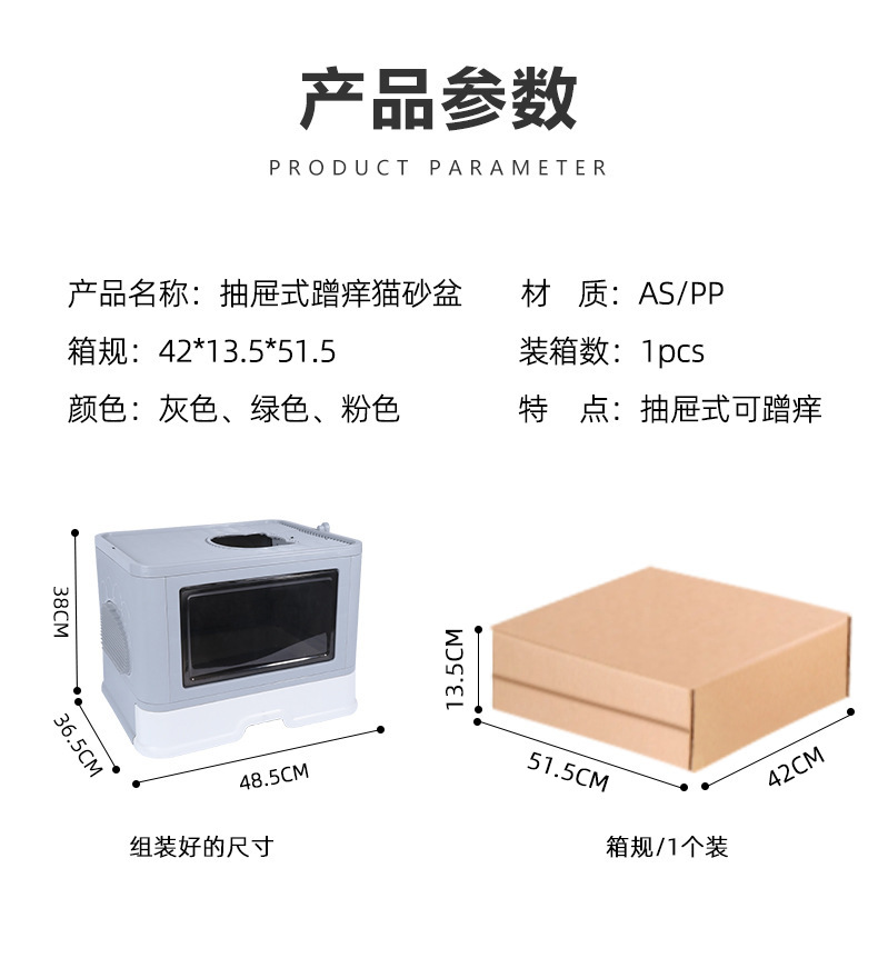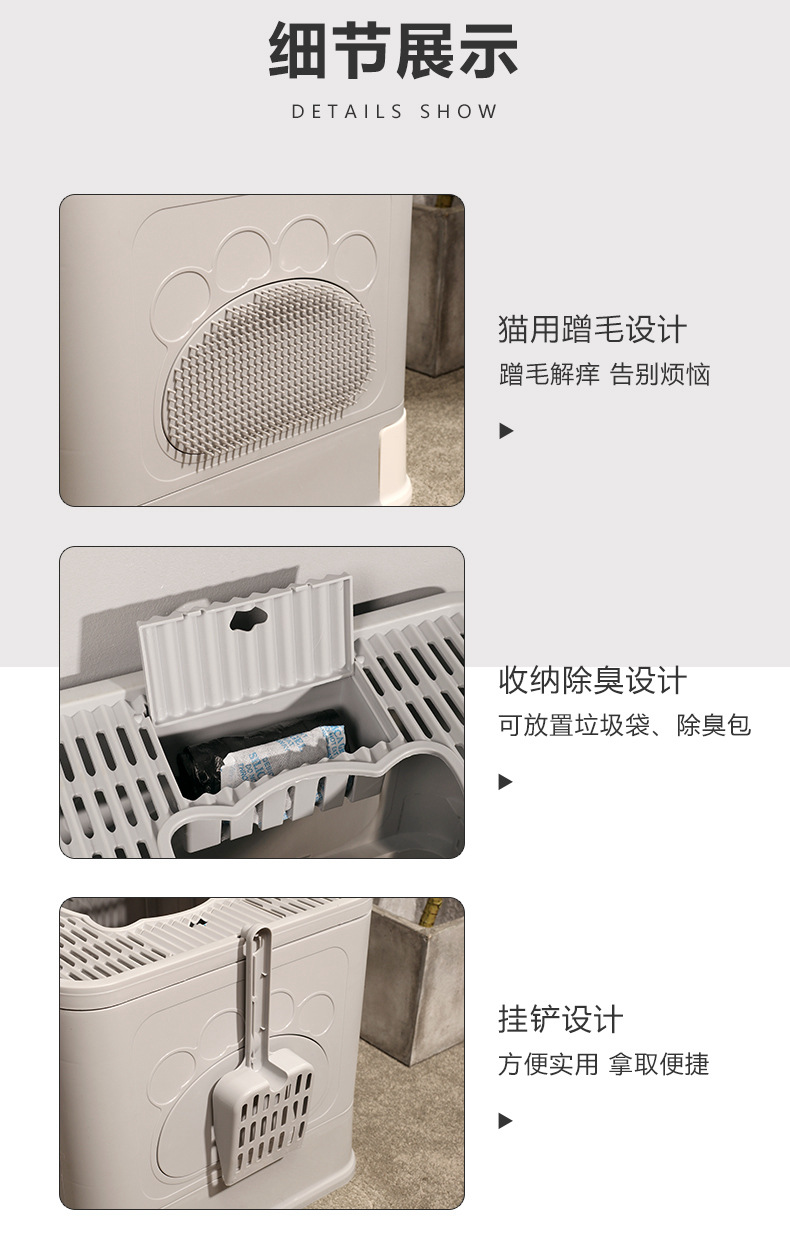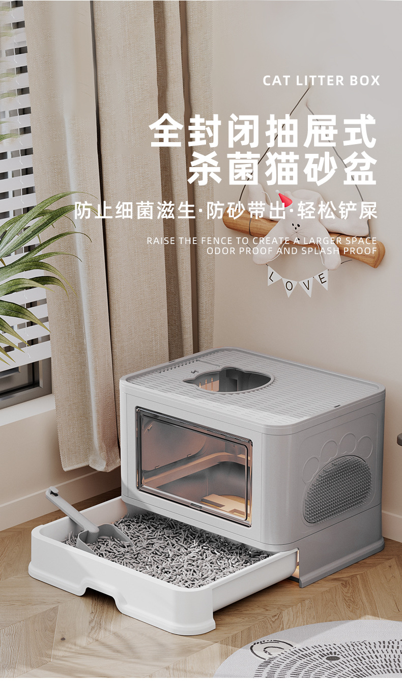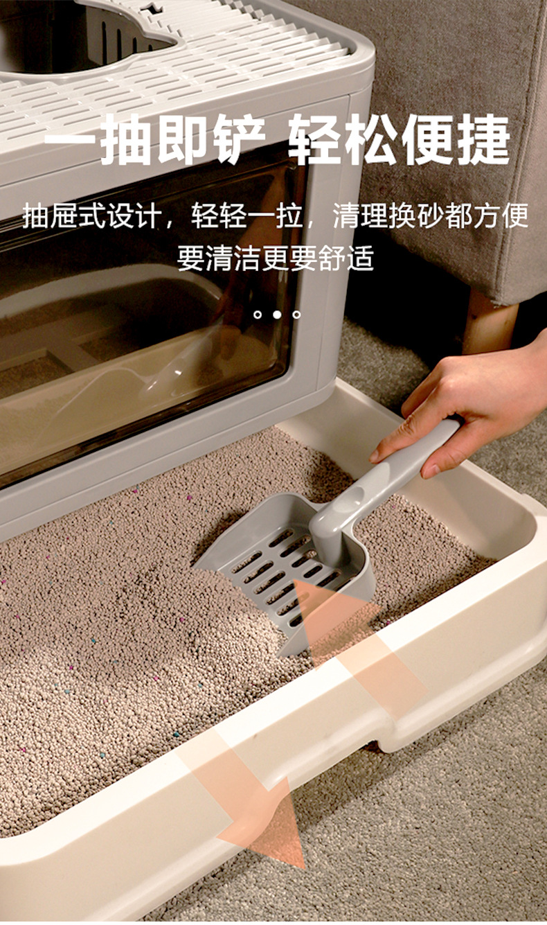 국경 간 대형 고양이 쓰레기 상자 완전히 밀폐 된 서랍 고양이 화장실 헤어 마찰 장치 접이식 고양이 쓰레기 상자 공장 도매